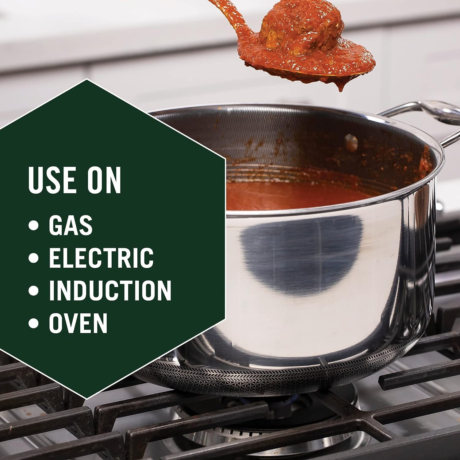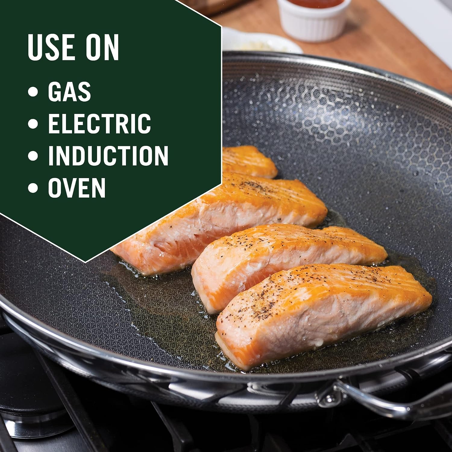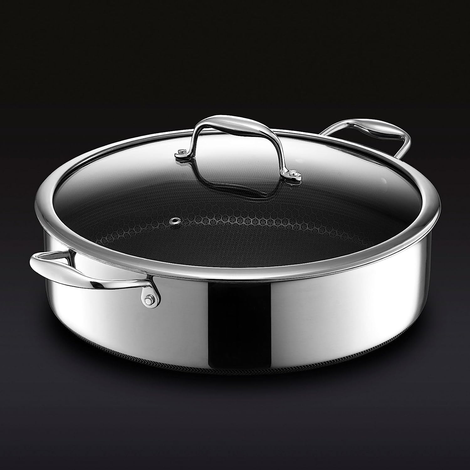 HexClad 14 Inch Hybrid Stainless Steel Frying Pan with Lid. Stay Cool Handles. Dishwasher and Oven Safe. Non-Stick. Works with Induction Cooktop. Gas. Ceramic. and Electric Stove