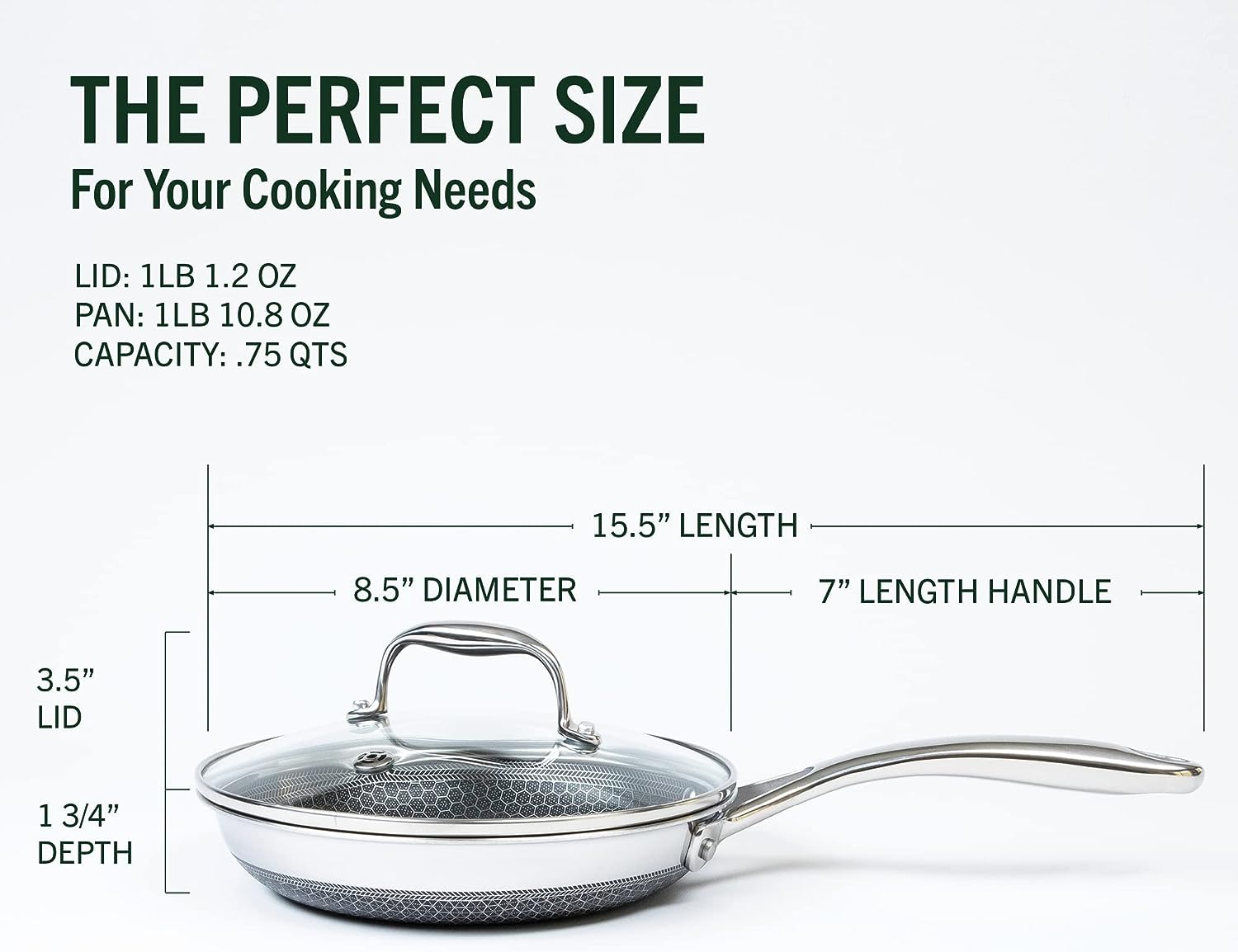 HexClad 8 Inch Hybrid Stainless Steel Cookware. Frying Pan with Cook Lid. Non-Stick. Stay Cool Handle. Dishwasher and Oven Safe. Works with Induction Cooktop. Gas. and Ceramic