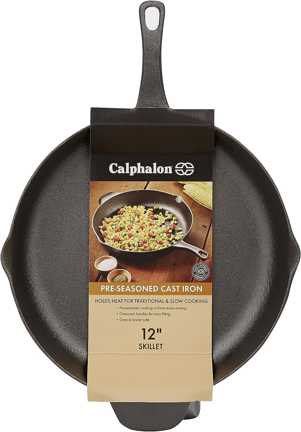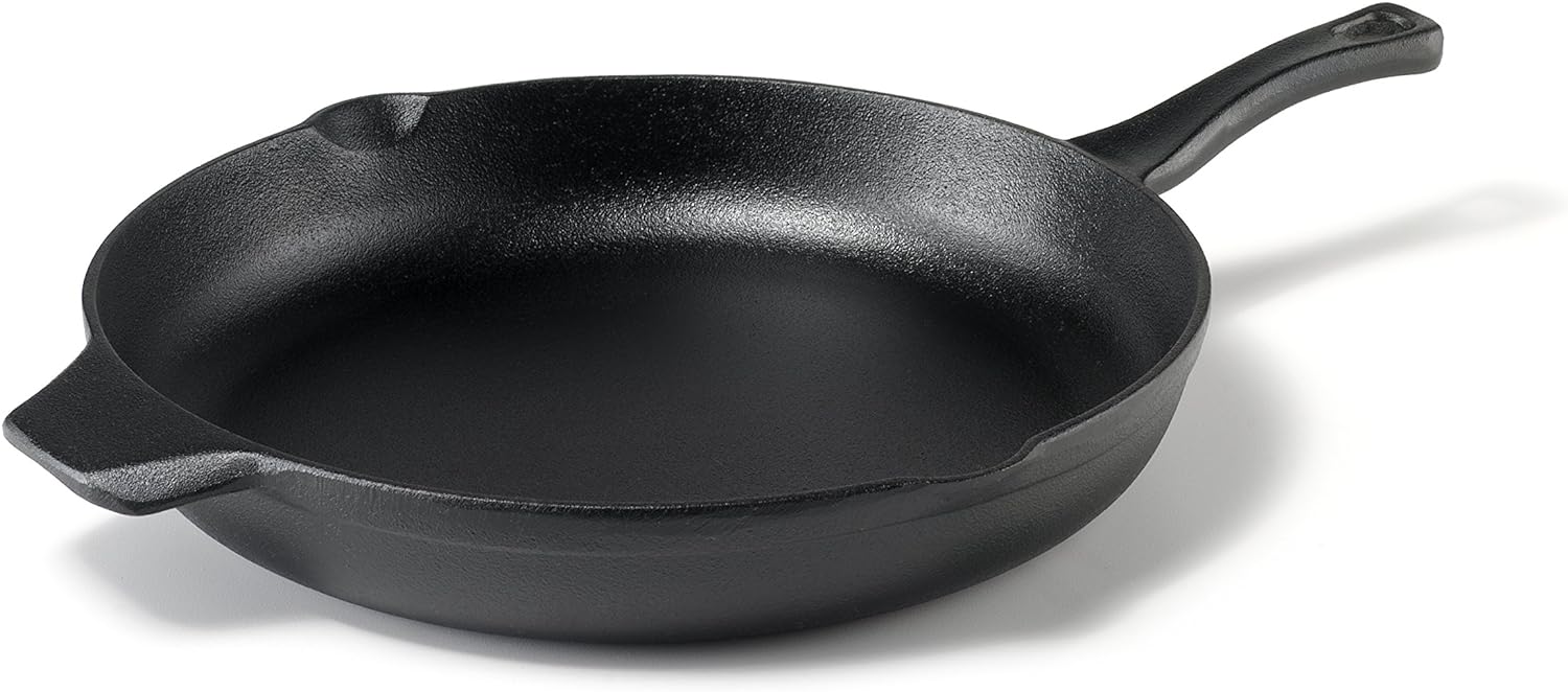 Calphalon Cast Iron Skillet. Pre-Seasoned Cookware with Large Handles and Pour Spouts. 12-Inch. Black