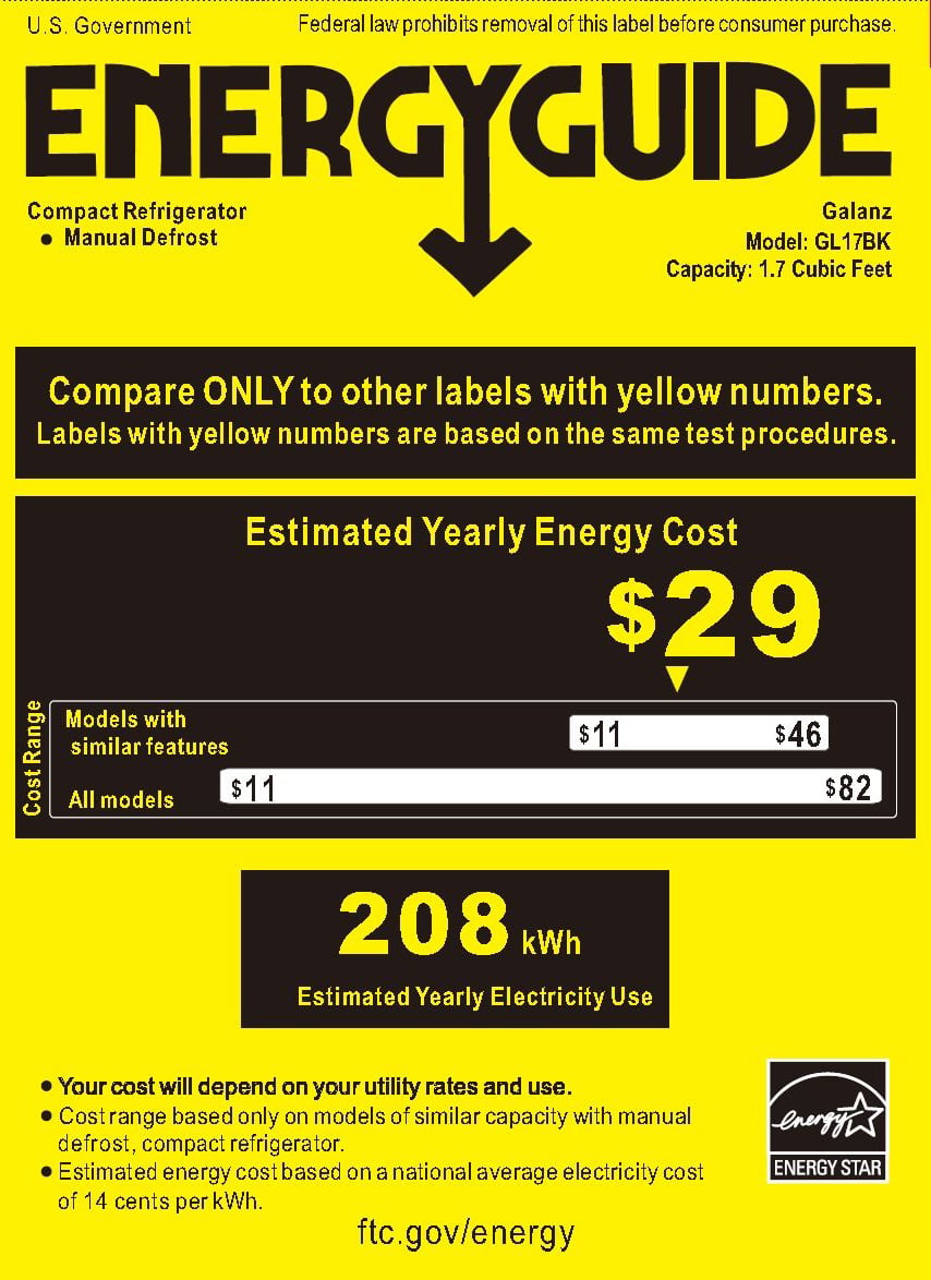 Galanz 1.7 Cu ft Single Door Mini Fridge. Black