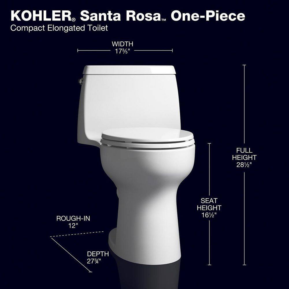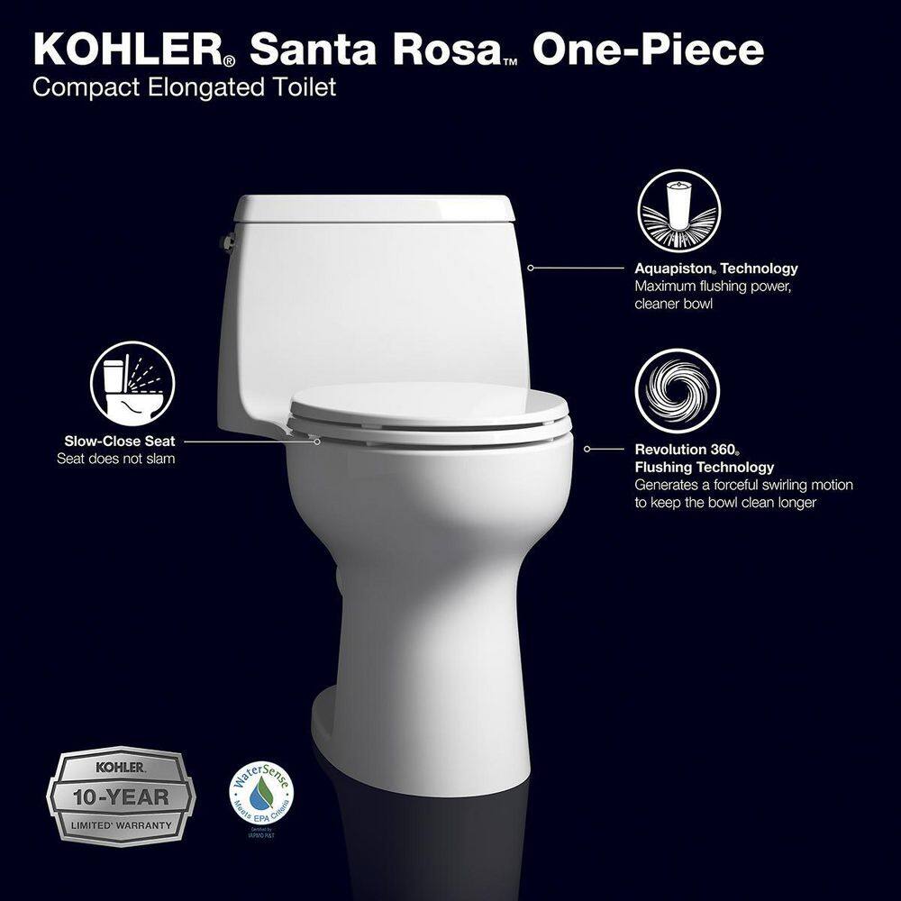 KOHLER 32901-0 Santa Rosa 1-piece 1.28 GPF Single Flush Elongated Toilet in White (Seat Included)