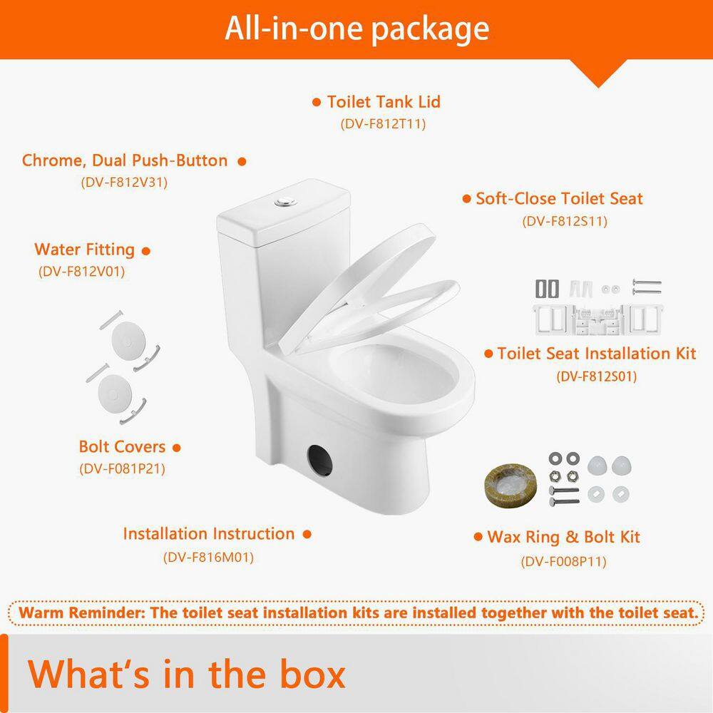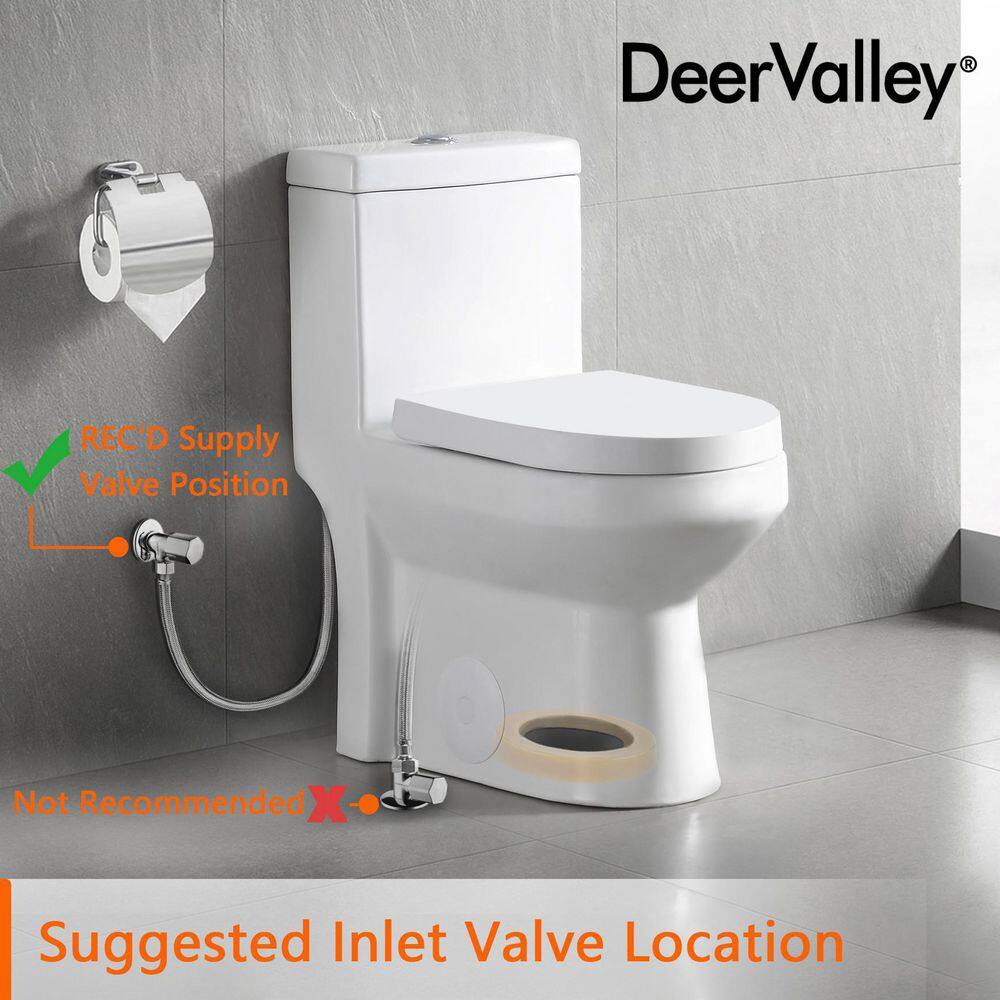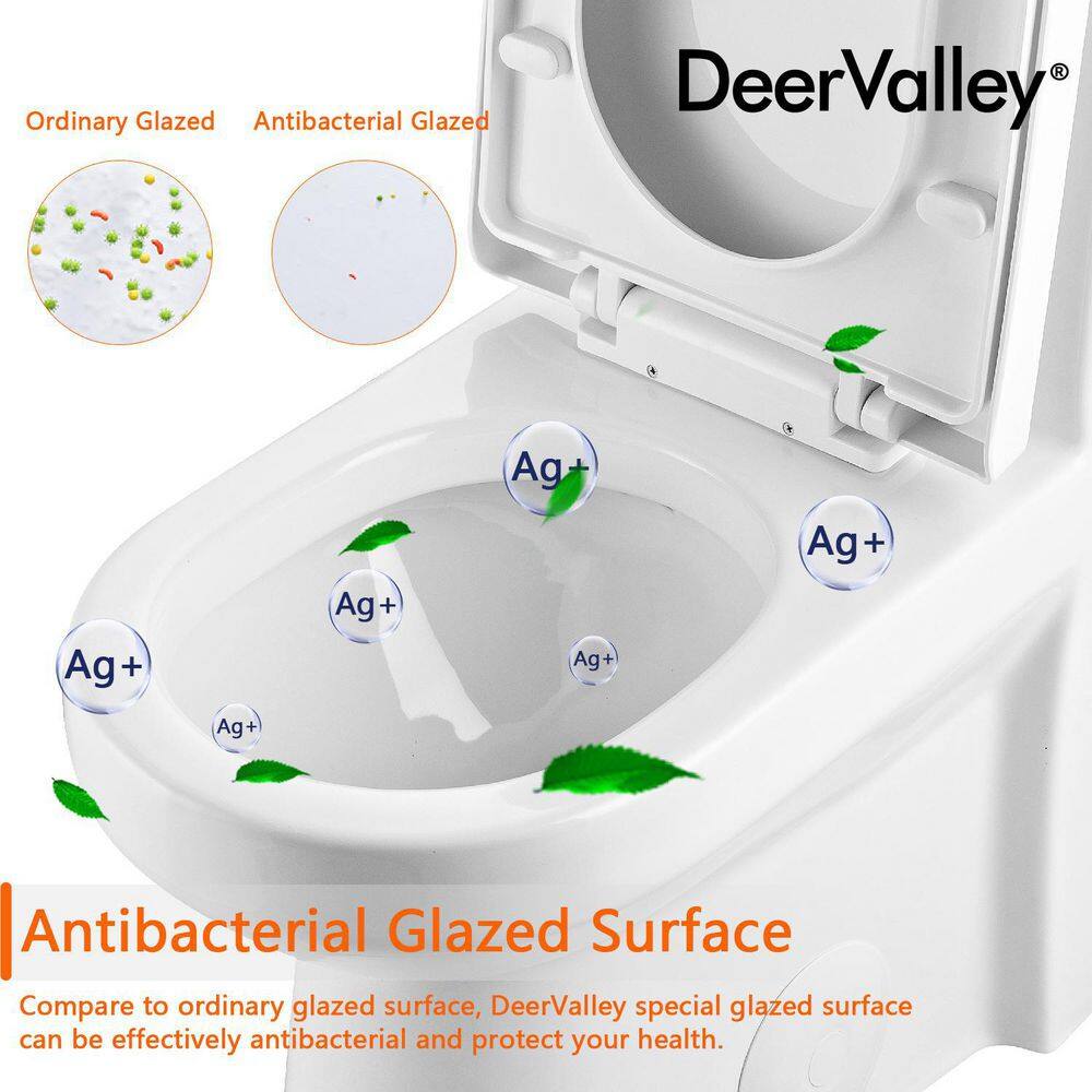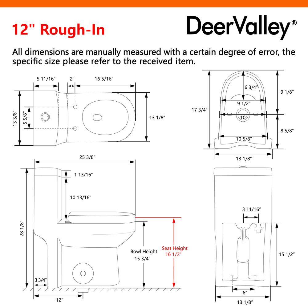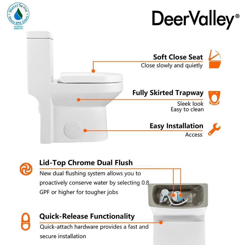 DEERVALLEY DV-1F52812 Liberty 12 in. Rough in Size 1-Piece 0.8/1.28 GPF Dual Flush Elongated Toilet in White Seat Included