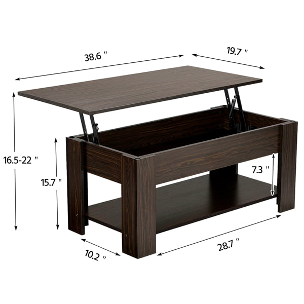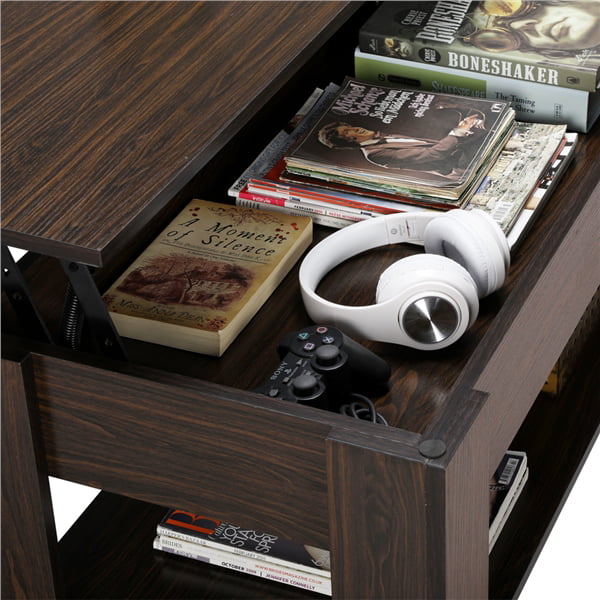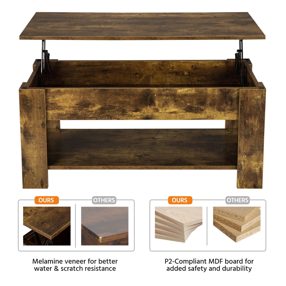 Easyfashion Modern 38.6″ Wood Lift Top Coffee Table with Lower Shelf. Rustic Brown