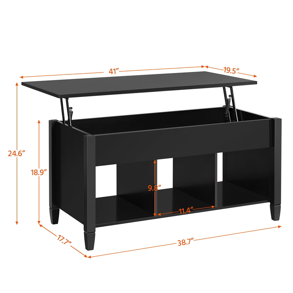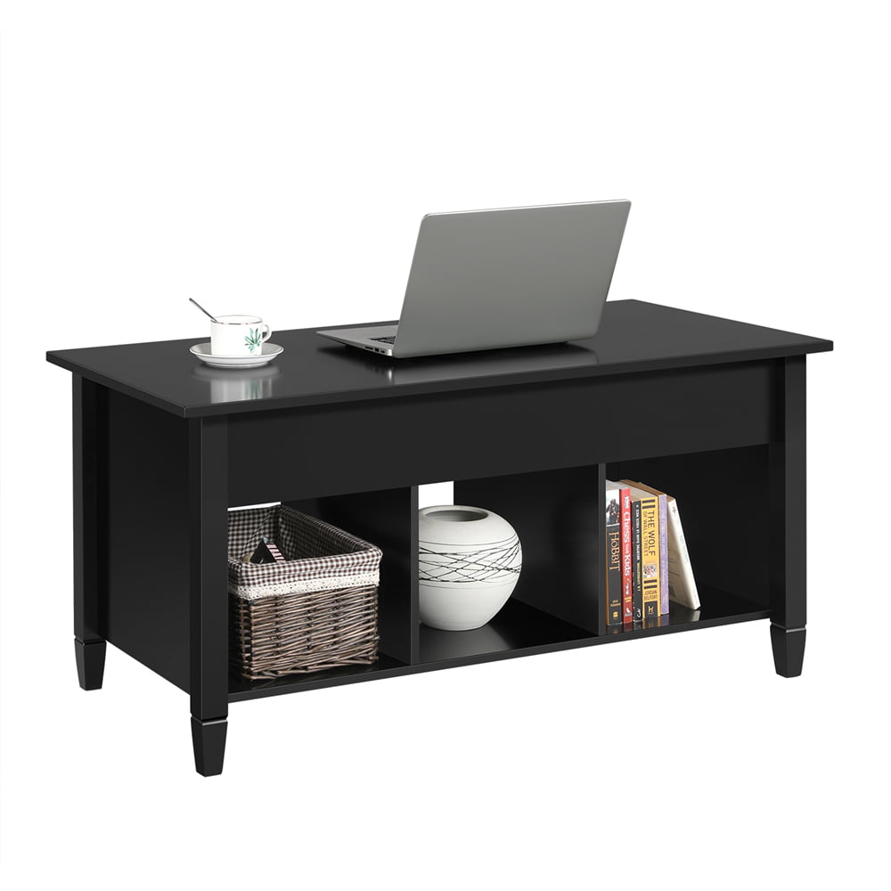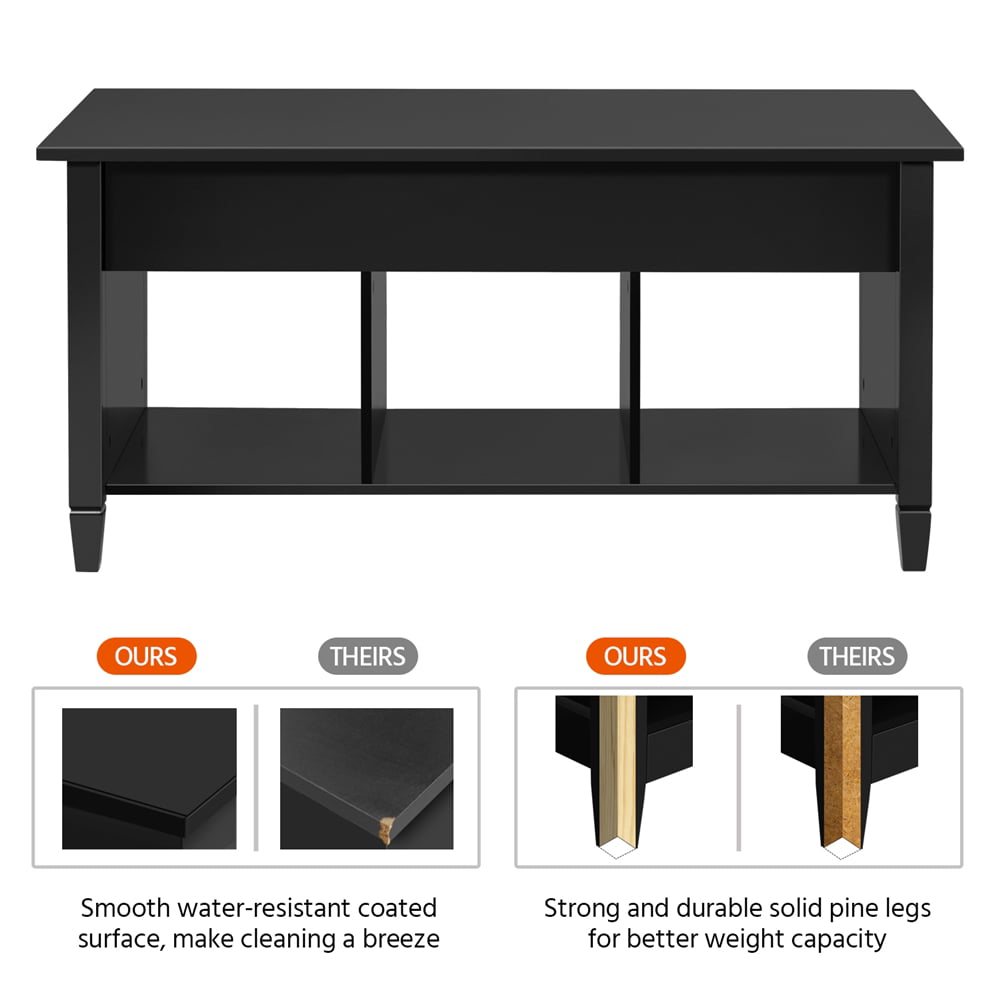 Alden Design 41″ Lift Top Coffee Table with 3 Storage Compartments. Black