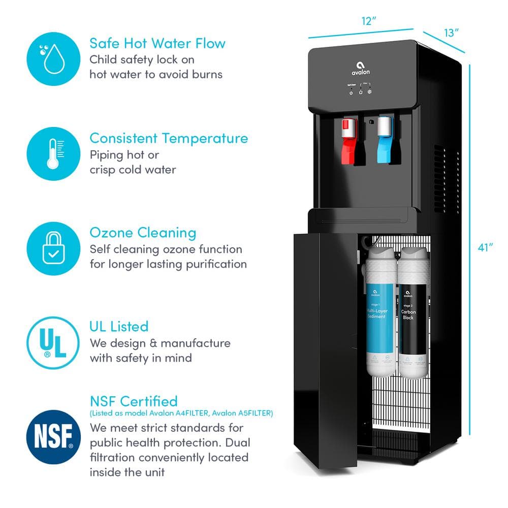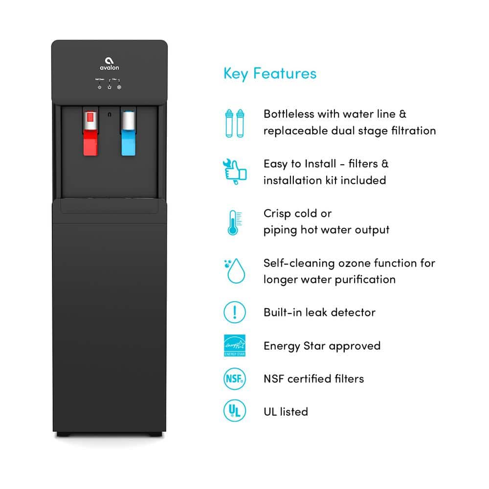 Avalon A7BOTTLELESSBLK Self-Cleaning Touchless Bottle-Less Water Cooler Dispenser with Hot/Cold Water. Child Lock. NSF/UL/ENERGY STAR. Black