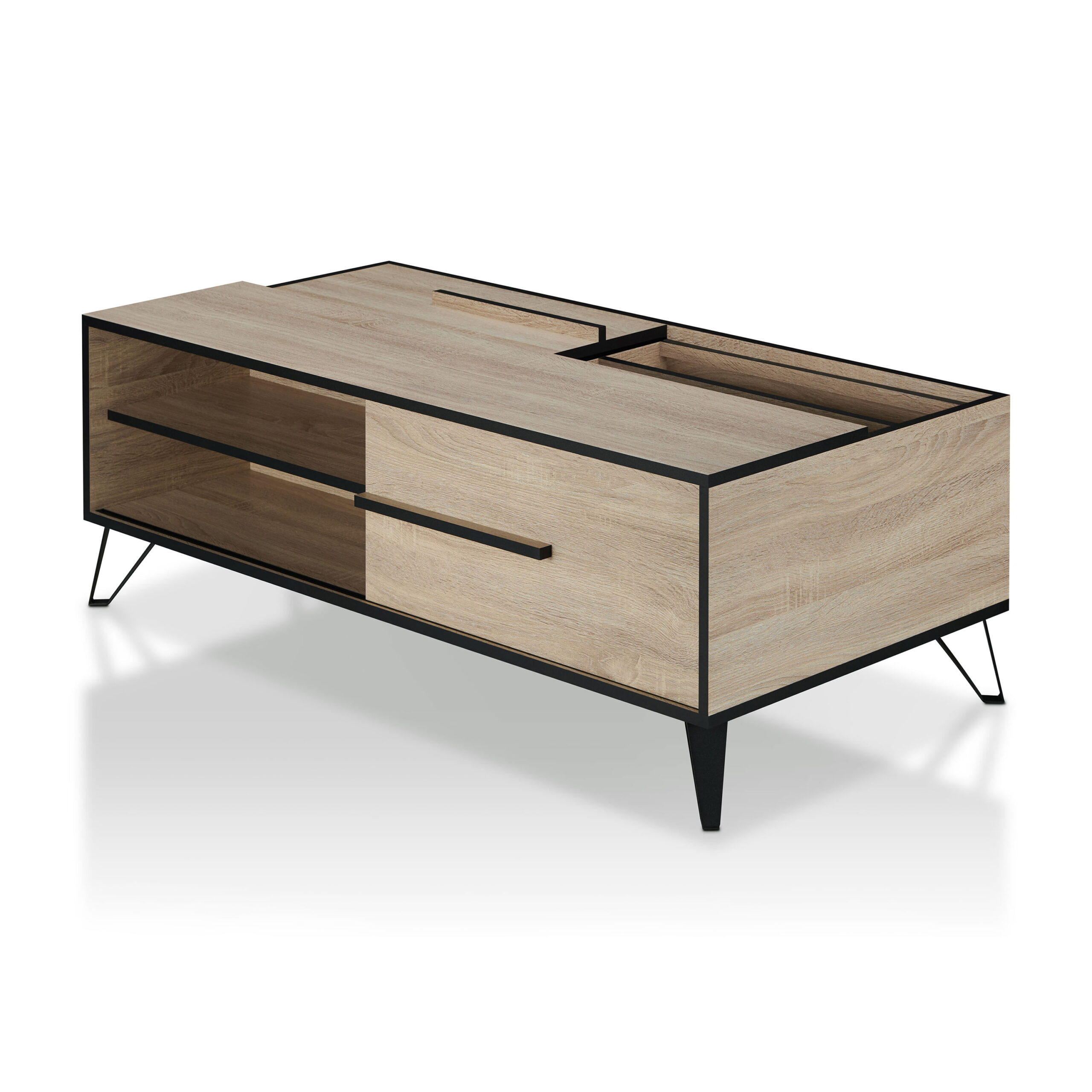 Furniture of America Saran Modern Wooden Multi-Storage Coffee Table. Natural Oak