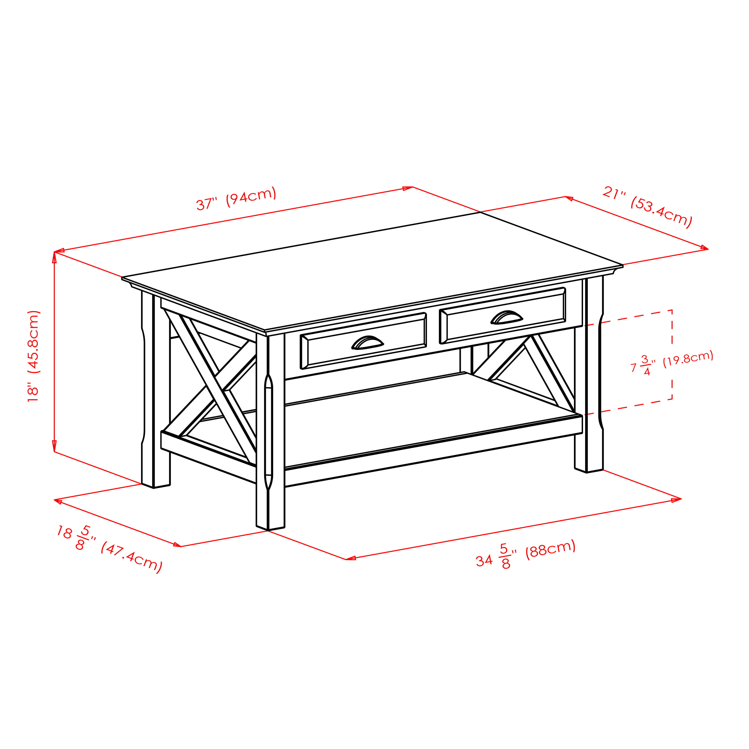 Winsome Wood Xola X Panel Coffee Table with Drawers. Cappuccino
