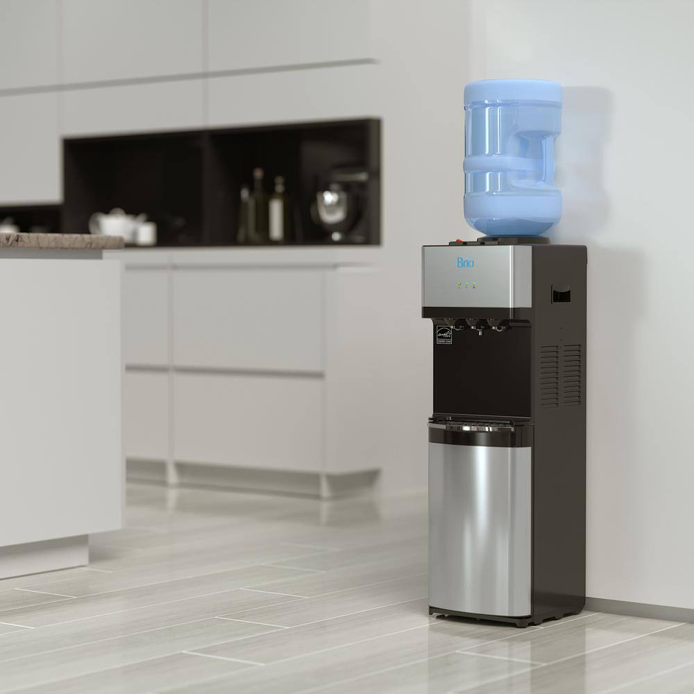 Brio CLTL520 Hot Cold and Room Temp Water Dispenser Cooler Top Load. Tri Temp. Black and Stainless Steel. Essential Series