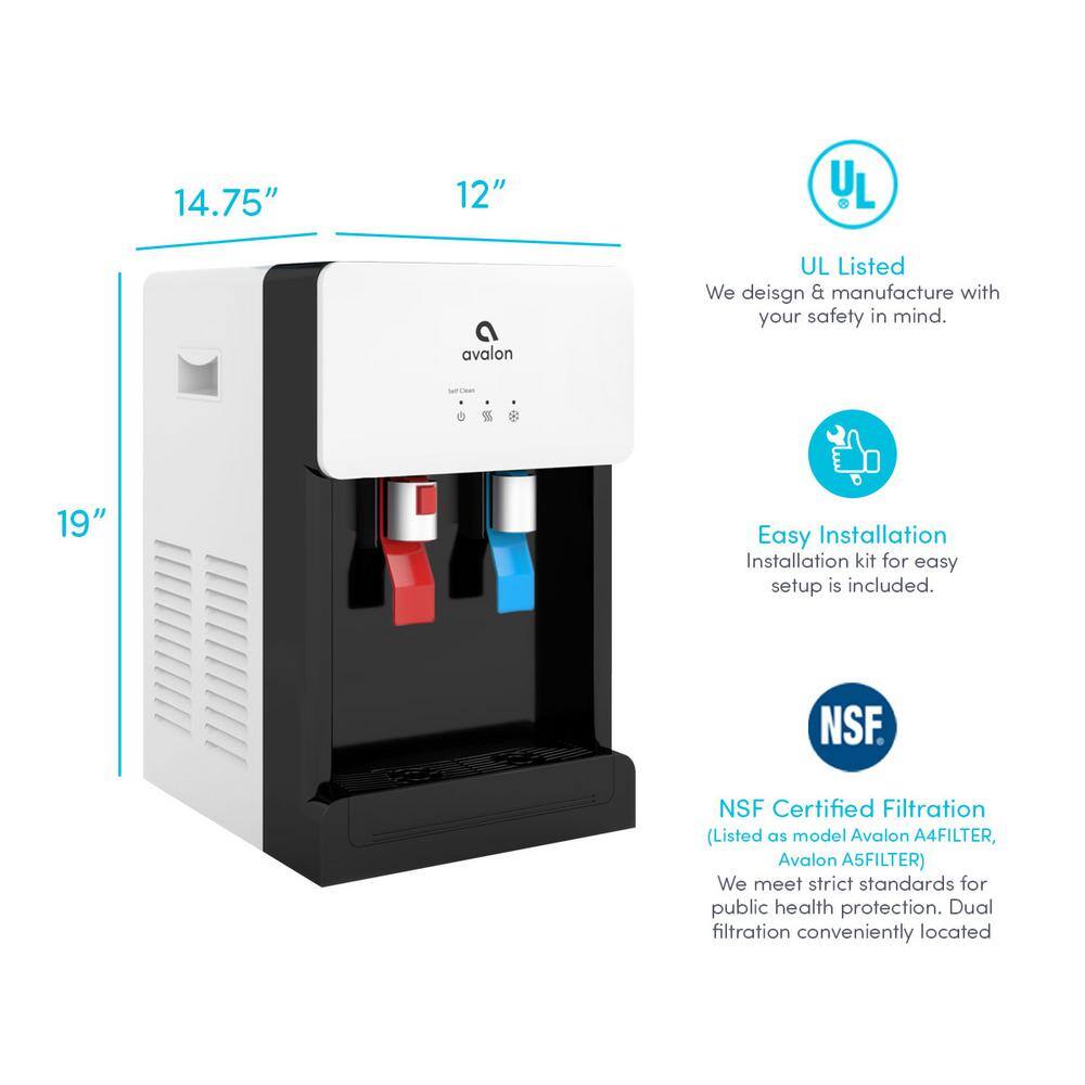 Avalon A8CTWHT Countertop Self Cleaning Touchless Bottle less Water Cooler Dispenser. Hot/Cold Water. NSF/UL/Energy Star. White