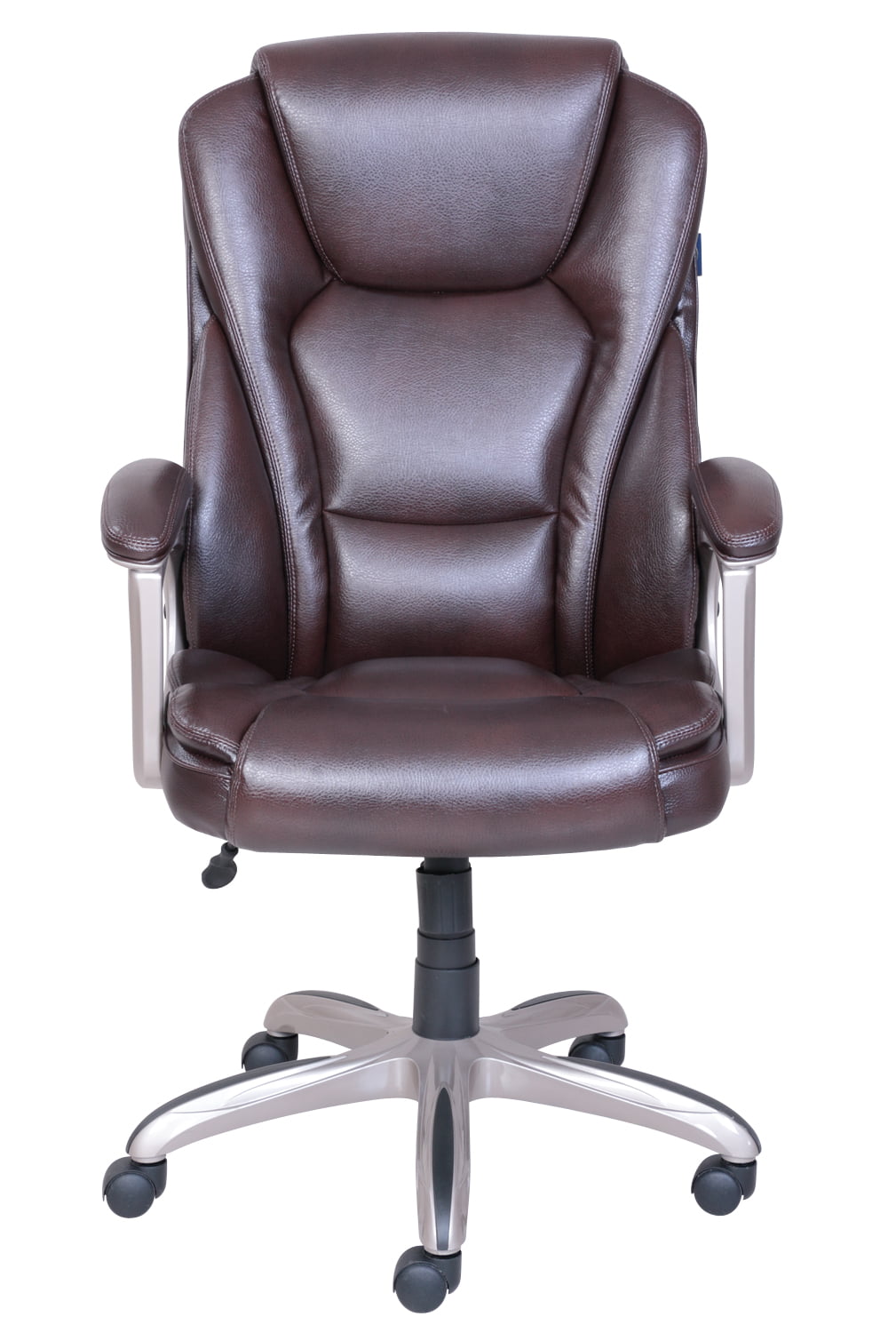 Serta Heavy-Duty Bonded Leather Commercial Office Chair with Memory Foam. 350 lb capacity. Brown