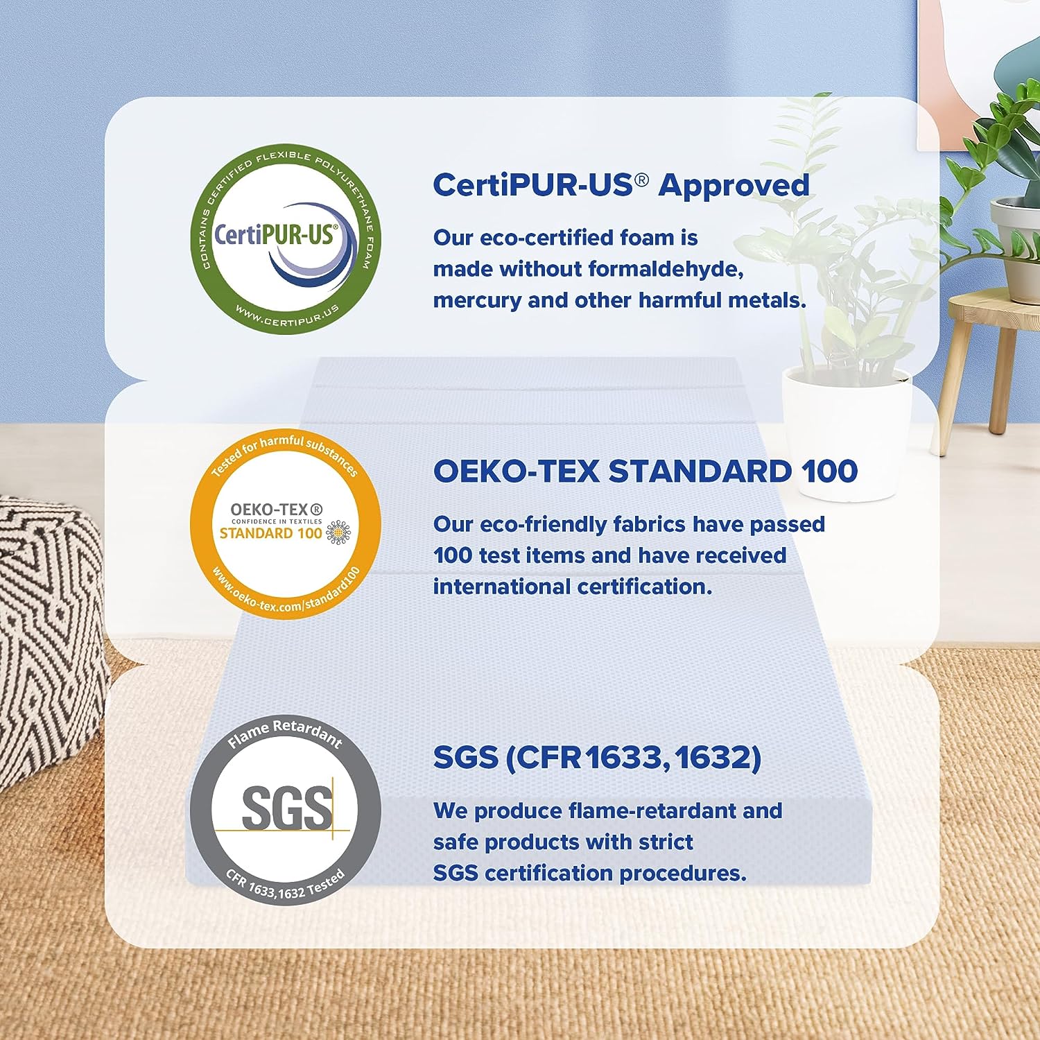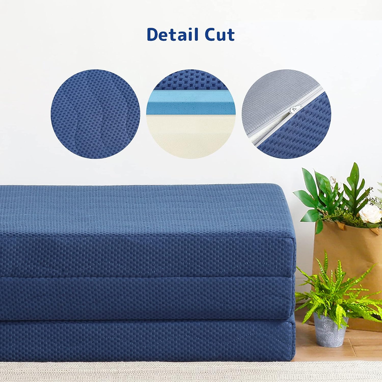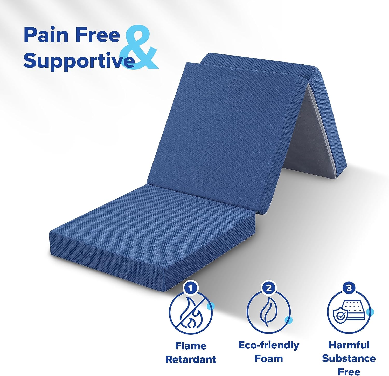 Olee Sleep Tri-Folding Memory Foam Topper. 4 inch. Blue