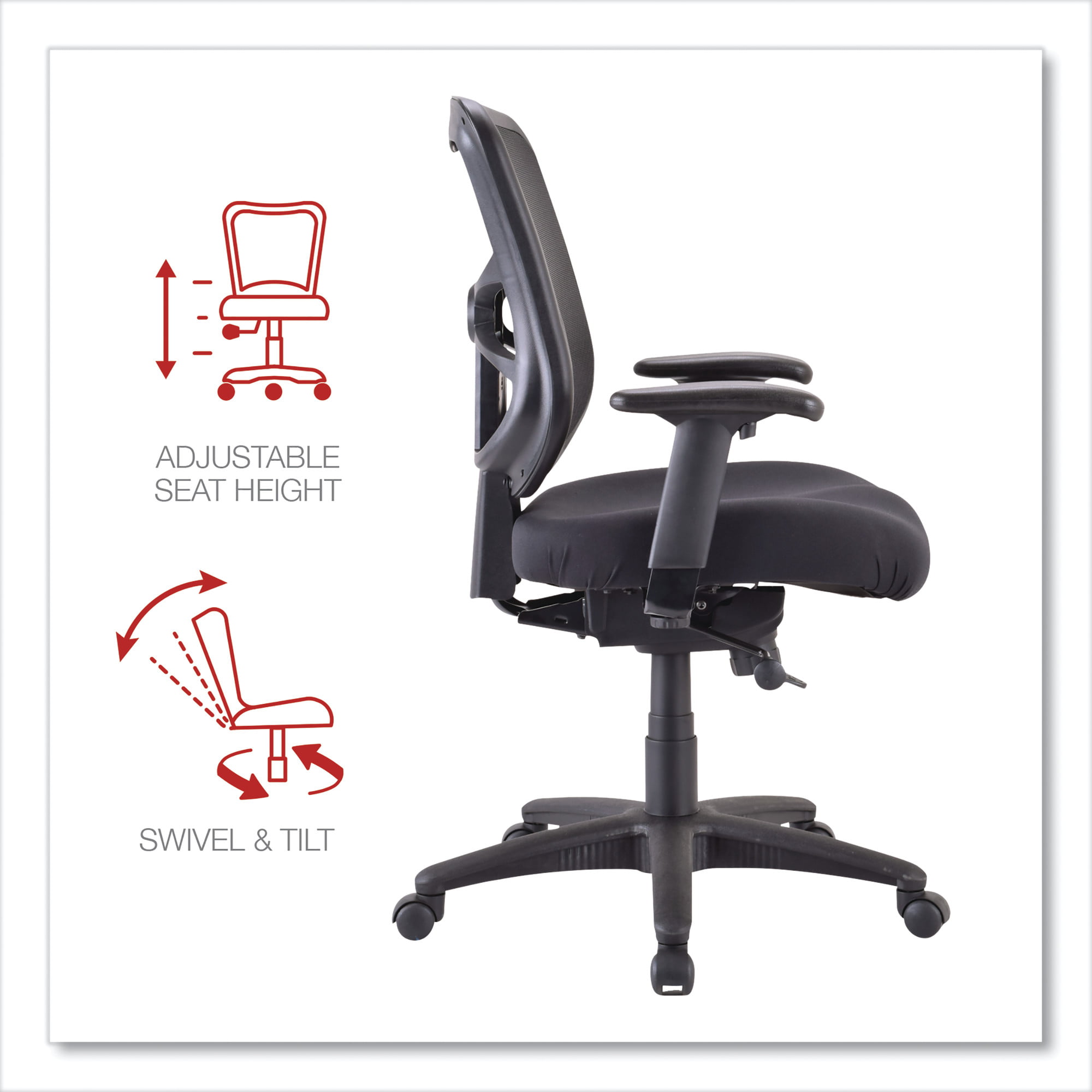 Alera Elusion Series 275 lb. Mid-Back Mesh Task Office Chair - Black