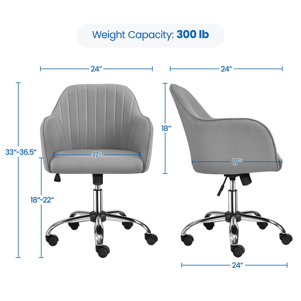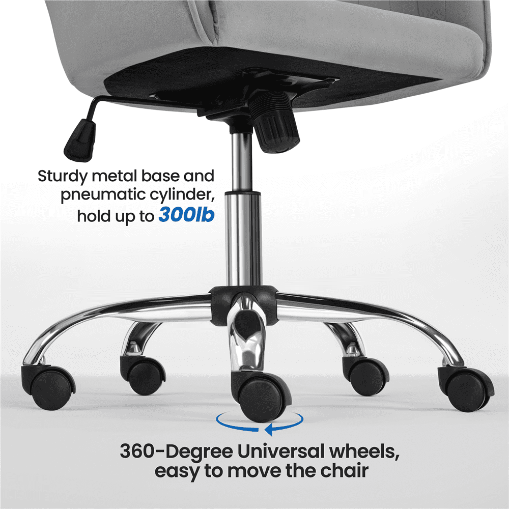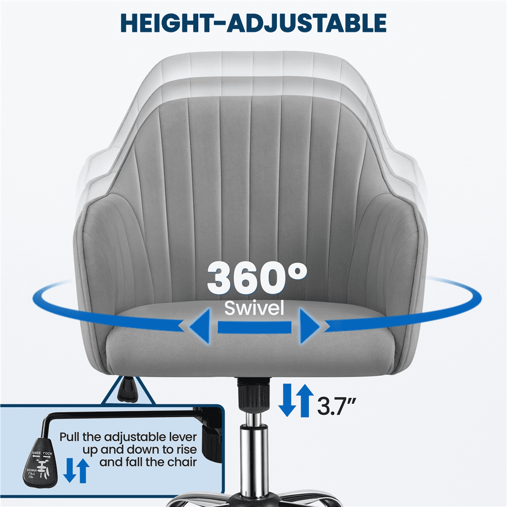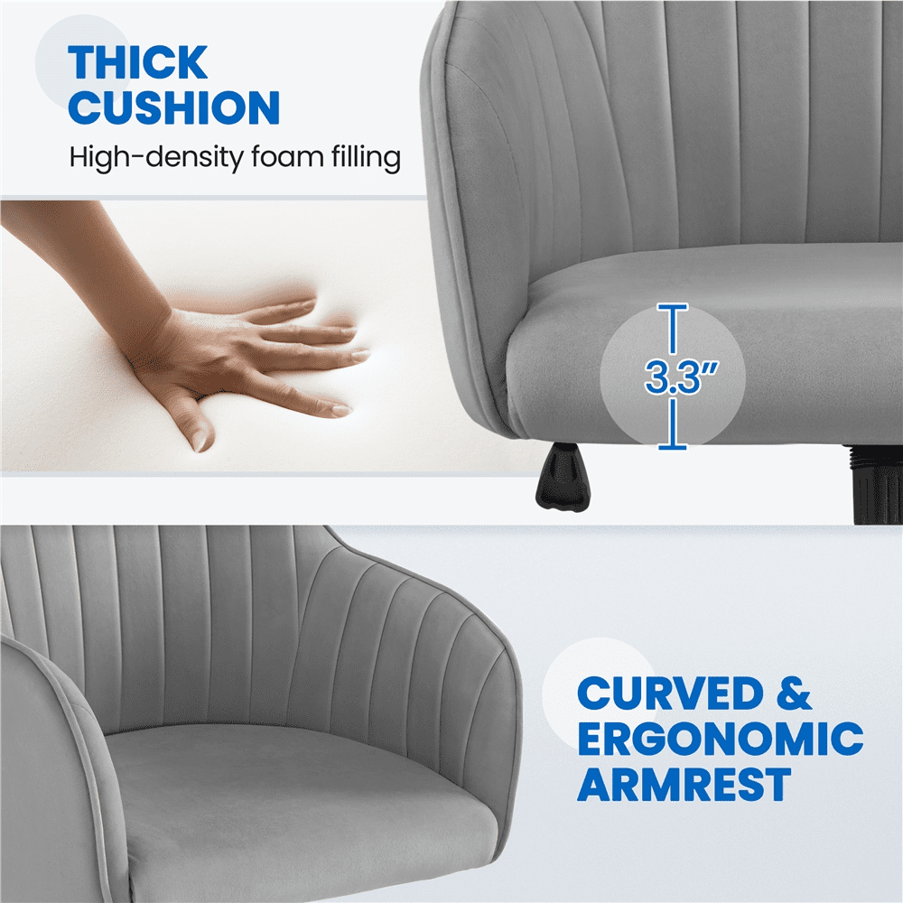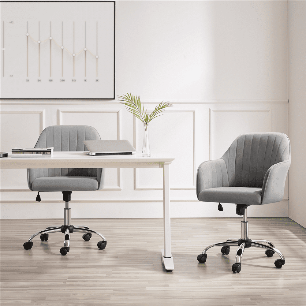 Alden Designs Velvet Mid-Back Task Chair with Armrests. Light Gray