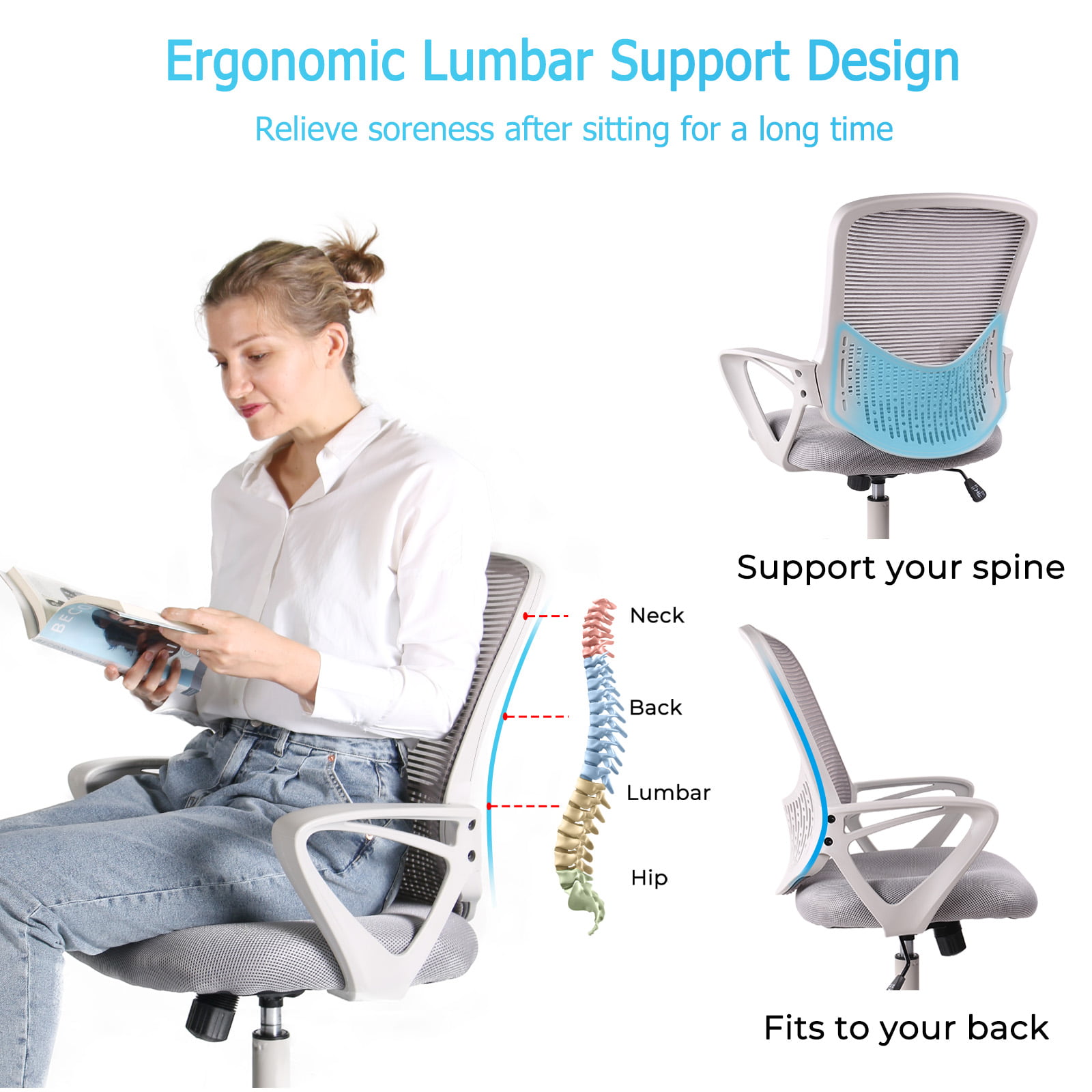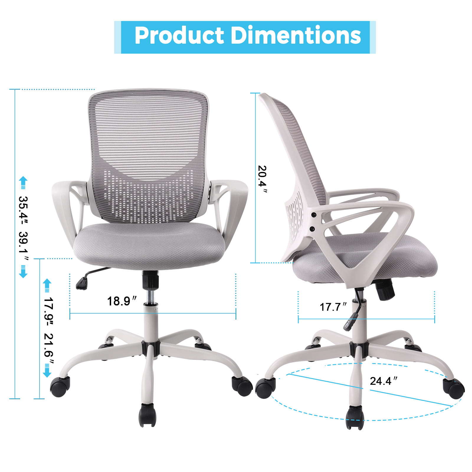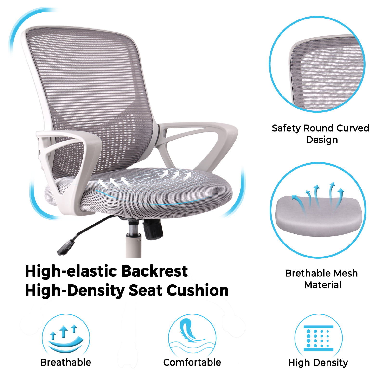 Yangming Office Chair. Mid Back Mesh Computer Chair Adjustable Swivel Desk Chair with Lumbar Support. Gray