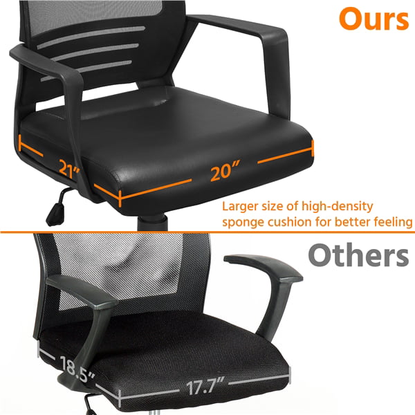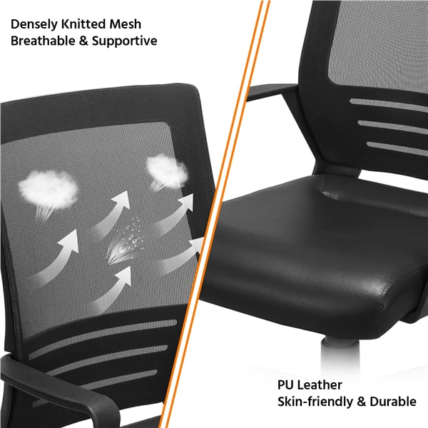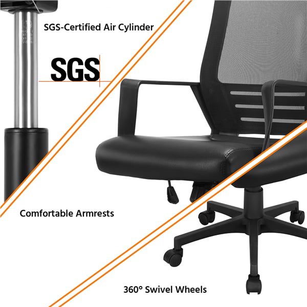 Smile Mart Adjustable Midback Ergonomic Mesh Office Chair with Lumbar Support. Black Seat