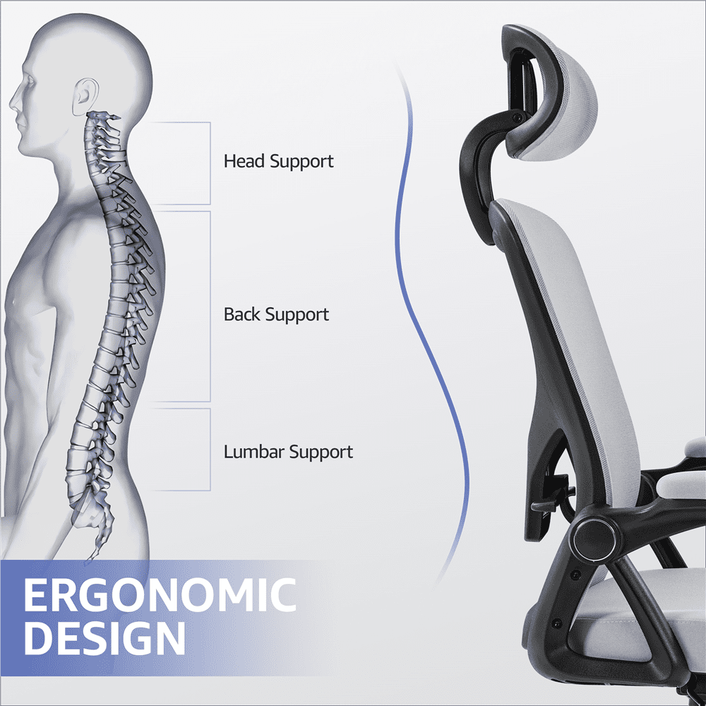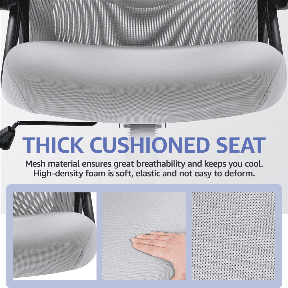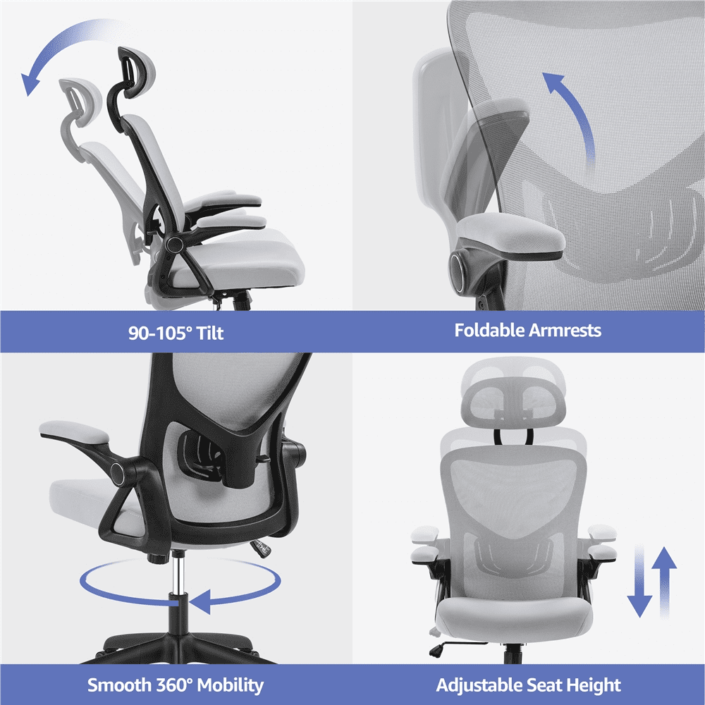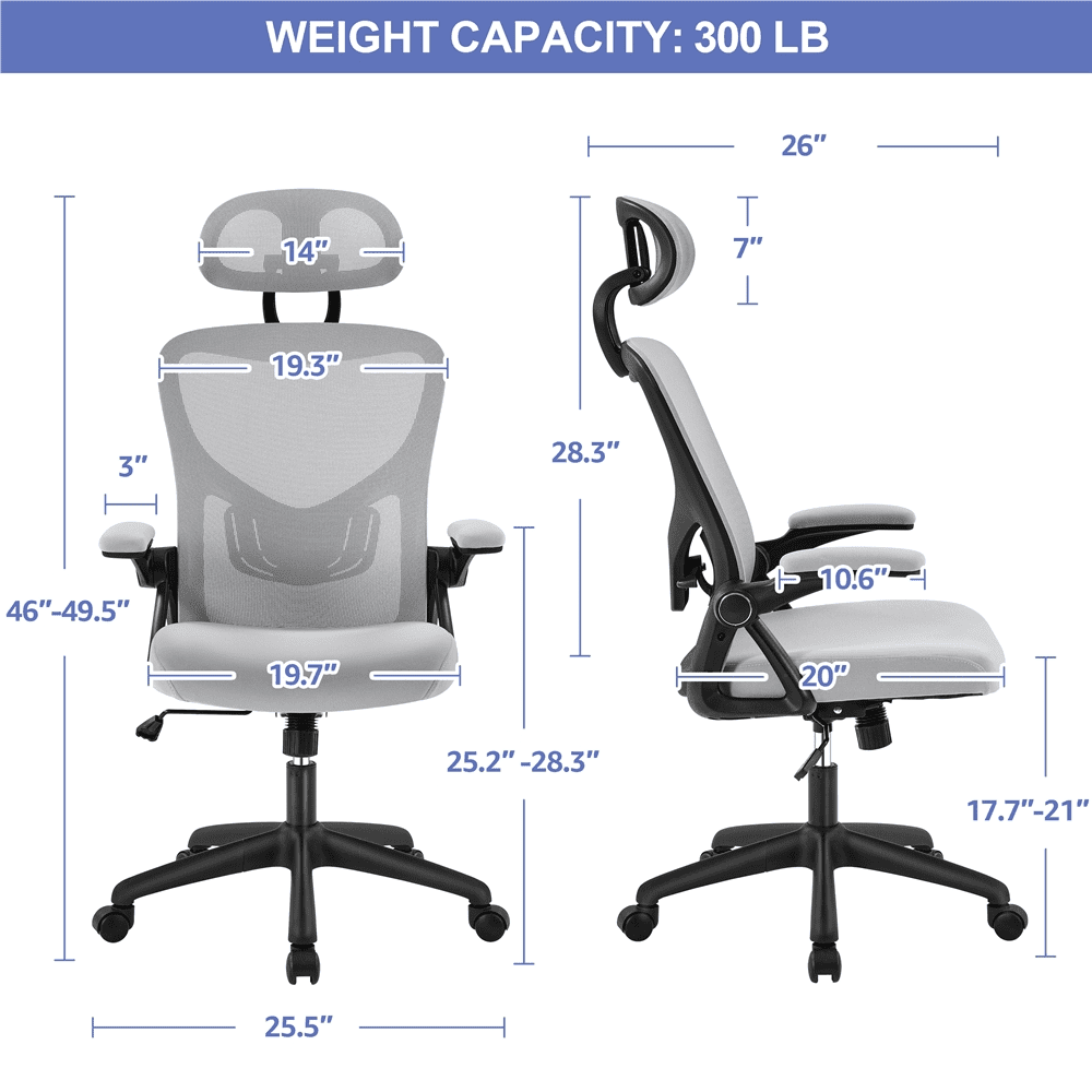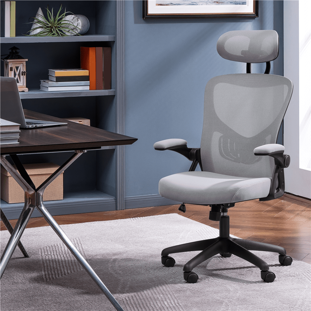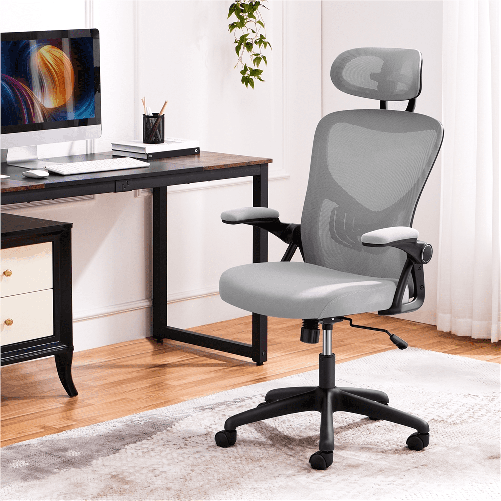 Smile Mart High Back Ergonomic Mesh Office Chair with Folding Padded Armrests. Light Gray