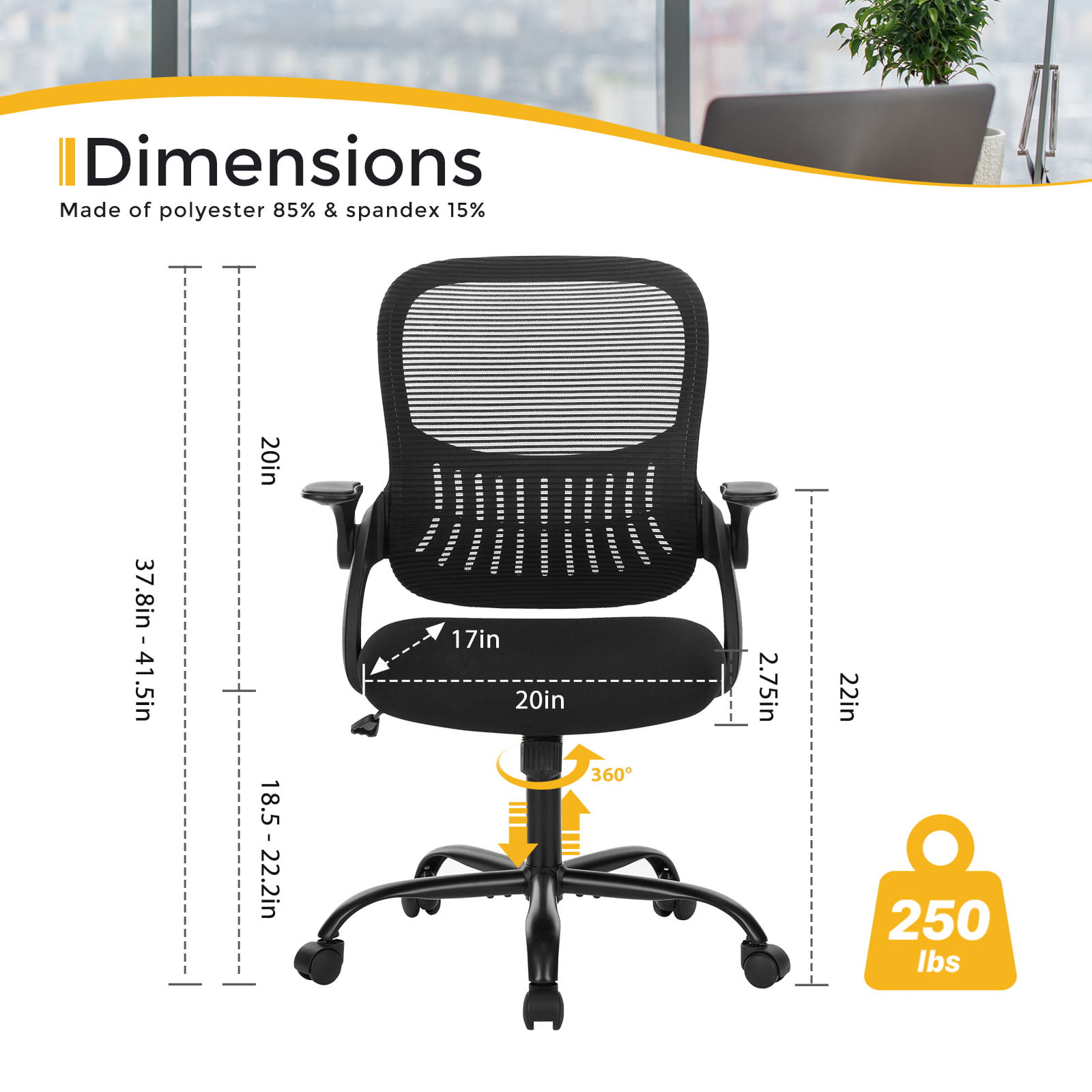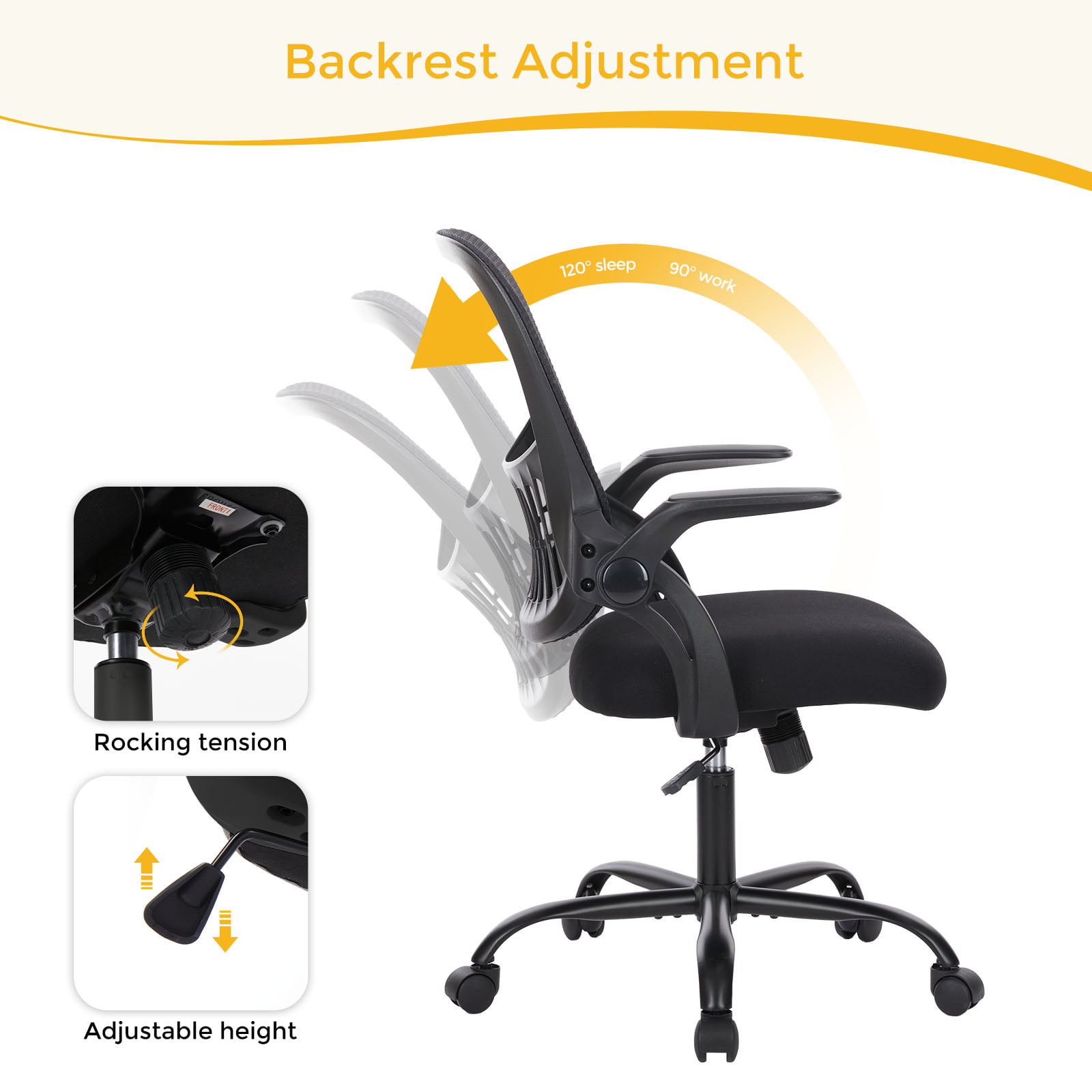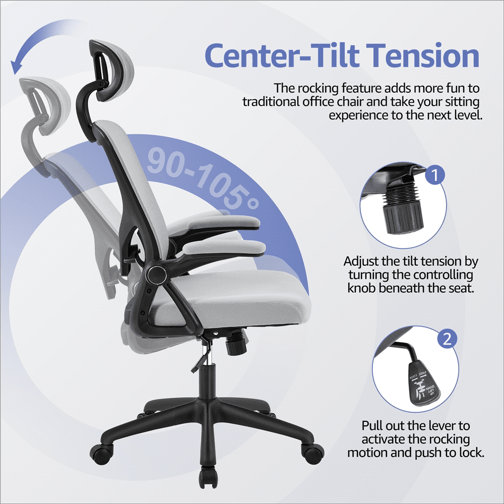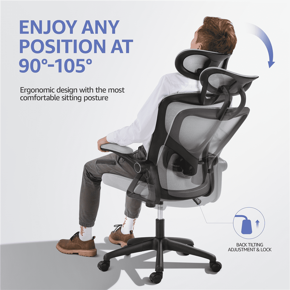 Ergonomic Office Chair. Mesh Computer Chair Home Office Desk Chairs with Flip-Up Arms. Height Adjustable. Rolling Swivel Chair with Lumbar Support . Tilt and Lock. Black