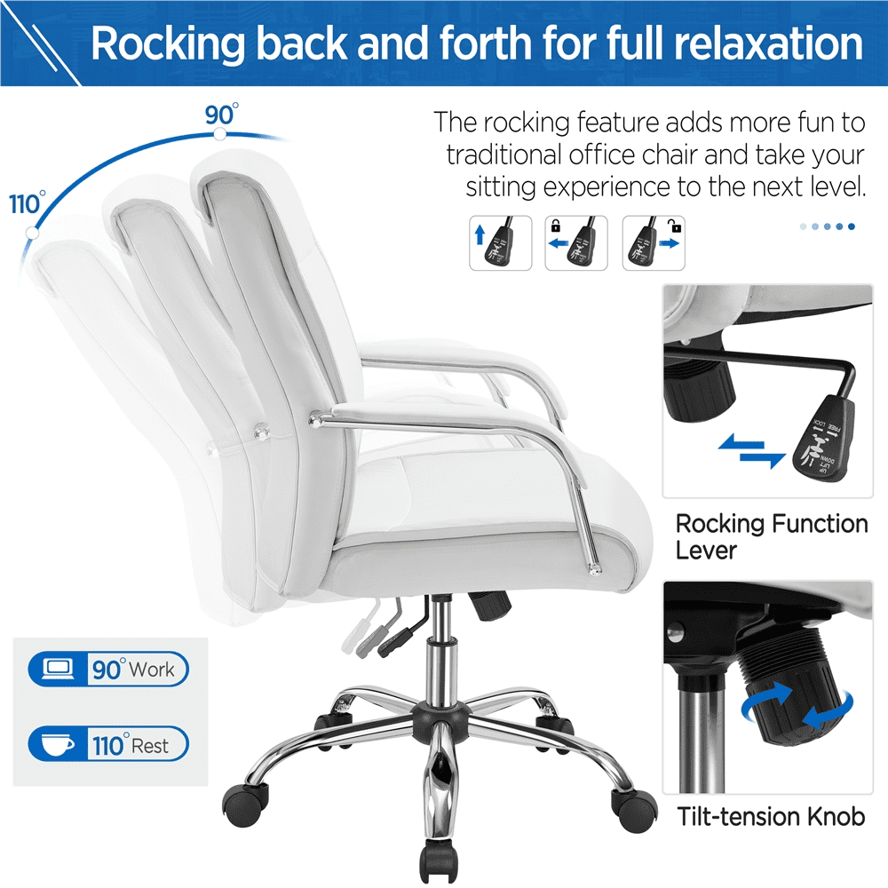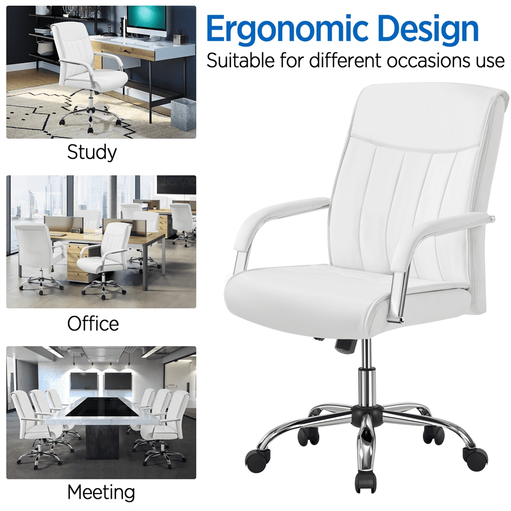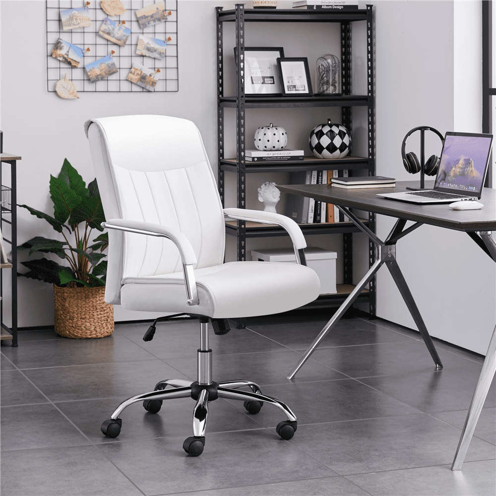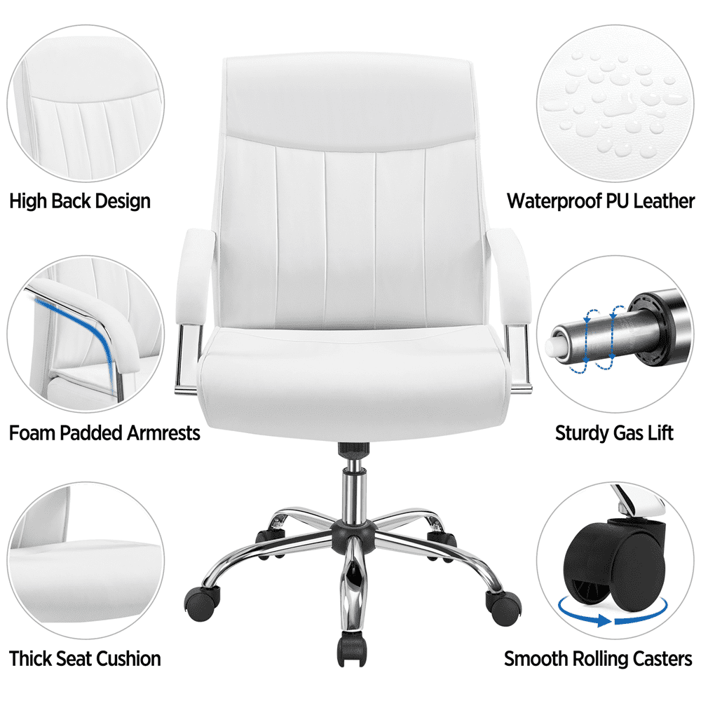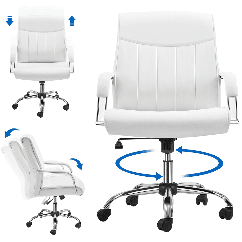SMILE MART Steady 22.5 in Executive Chair. 300 lbs. Capacity. White