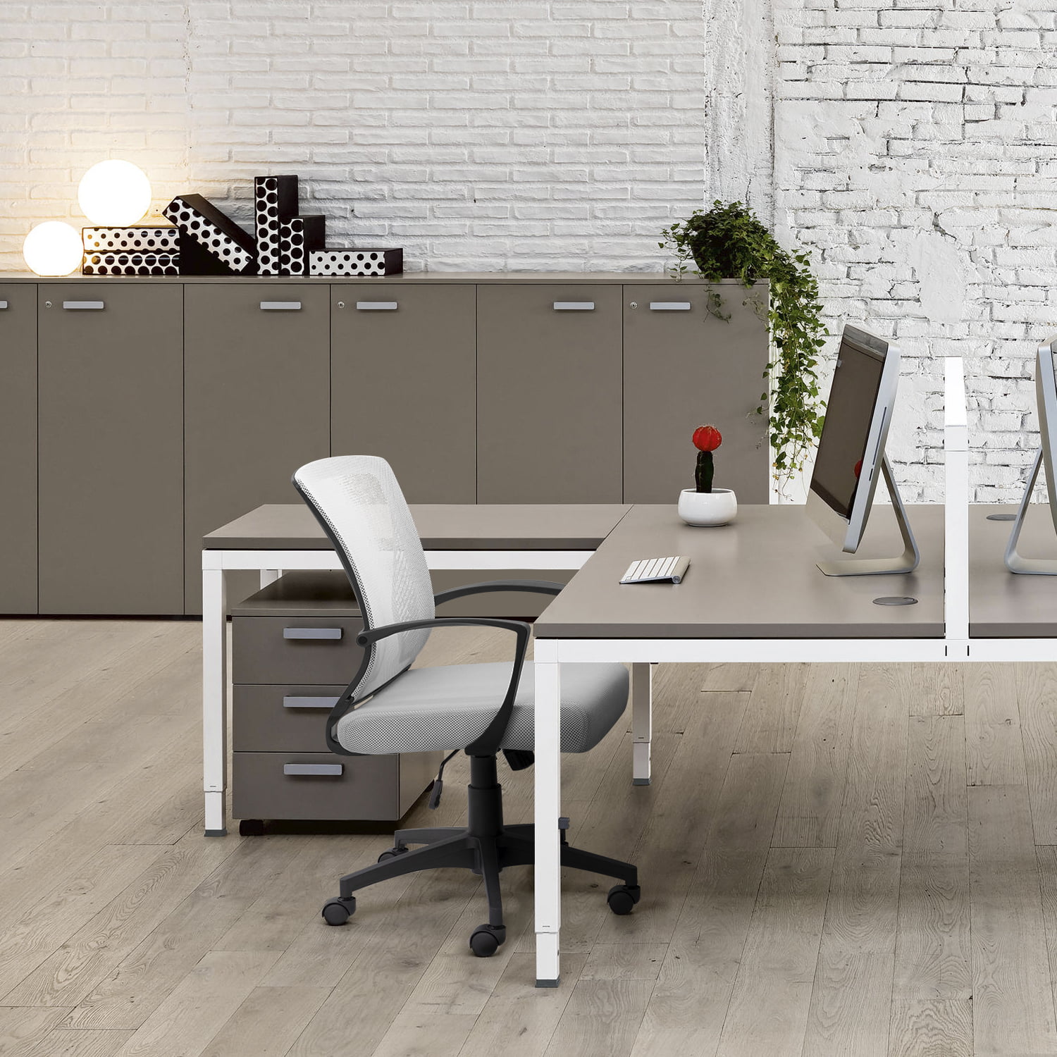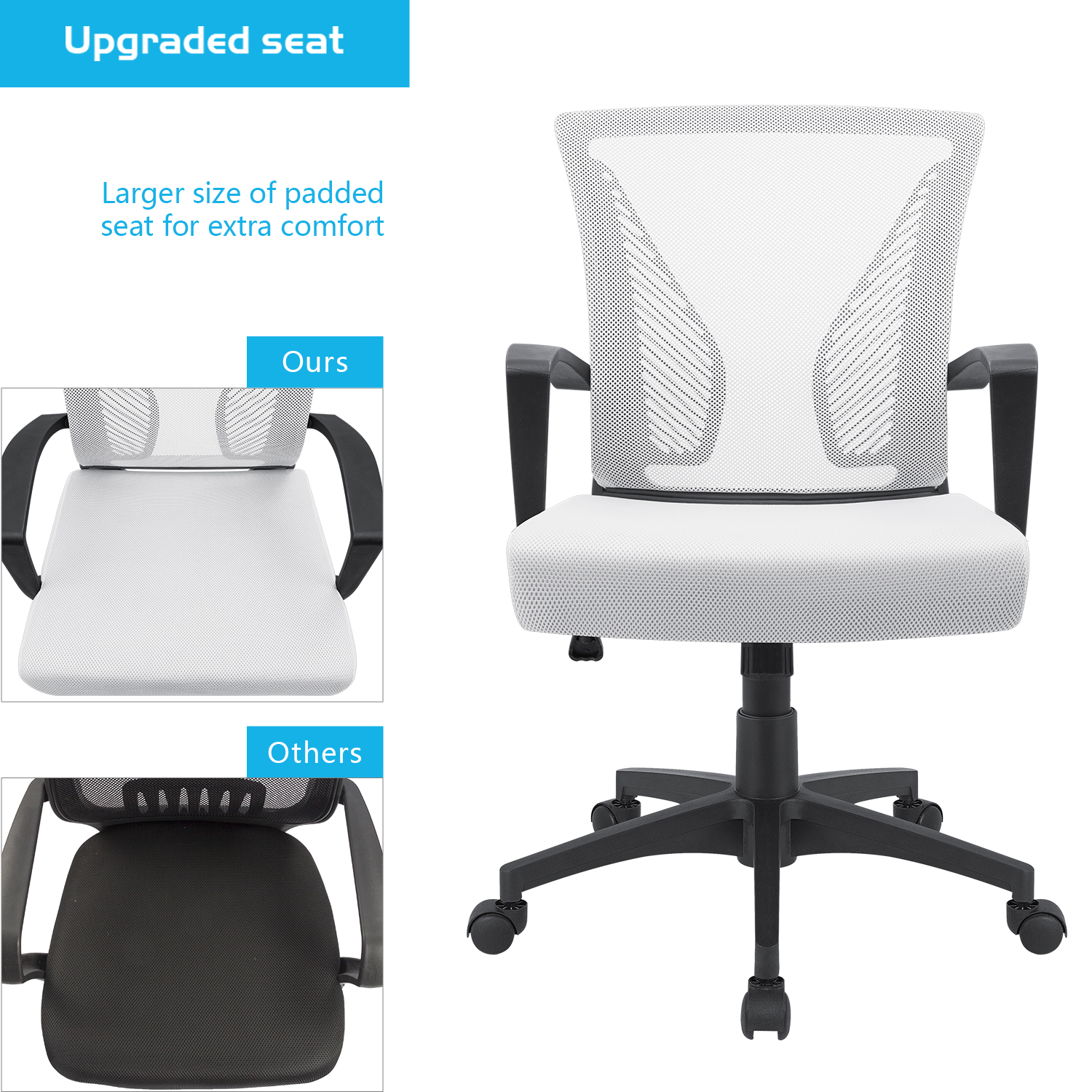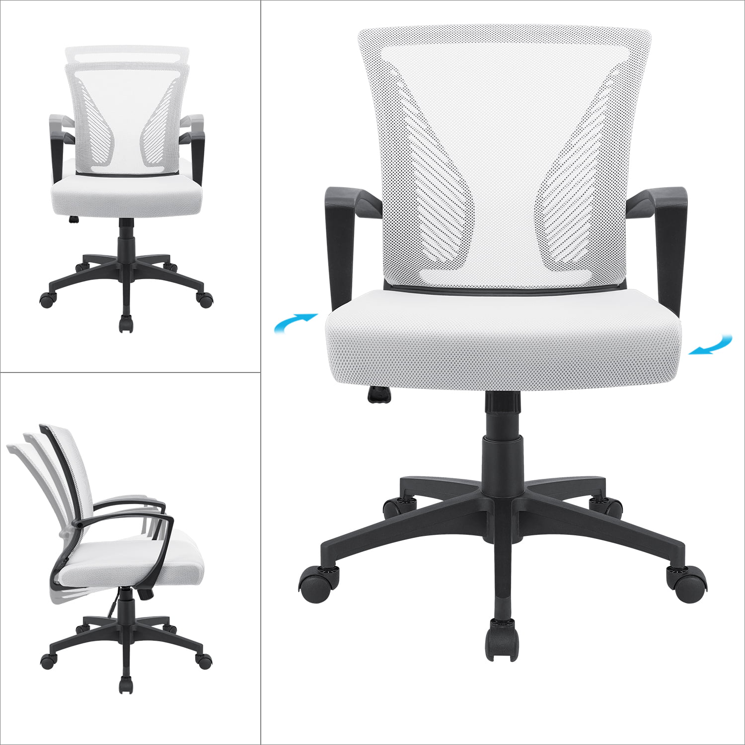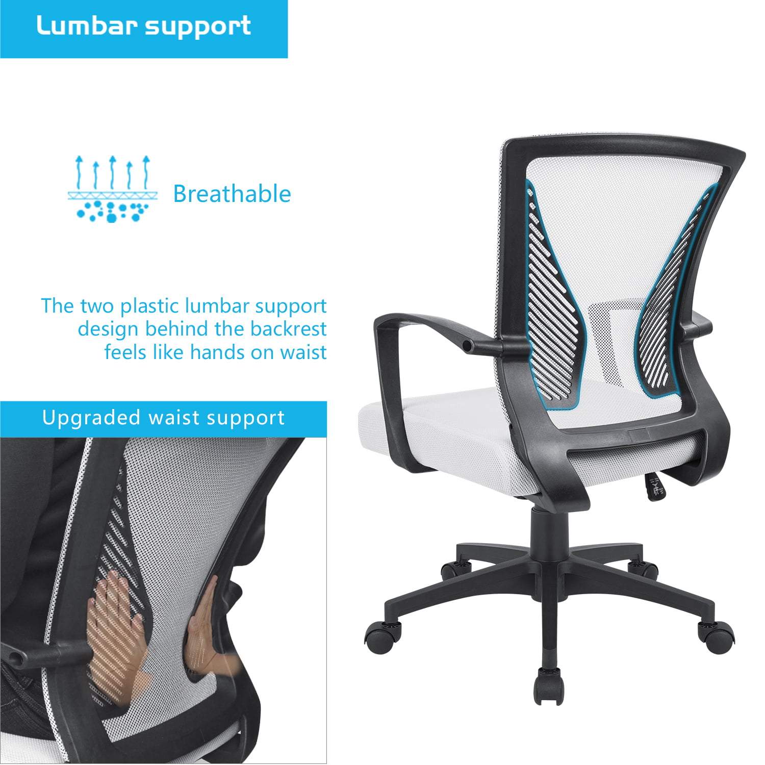 Lacoo Mid-Back Office Desk Chair Ergonomic Mesh Task Chair with Lumbar Support. White