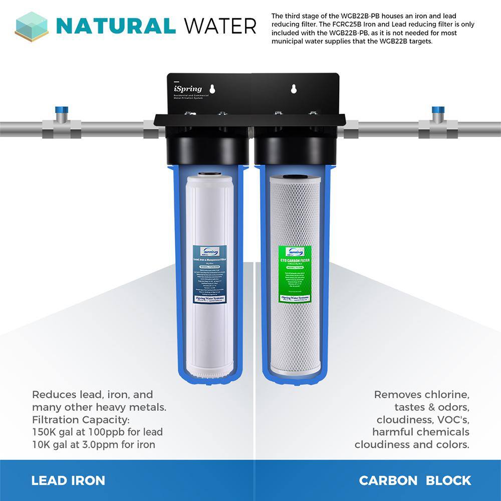 ISPRING WGB22B-PB Whole House Water Filter System w/ Carbon Block Filter and Lead Reducing Filter. 2-Stage. Up to 100k Gal. Capacity