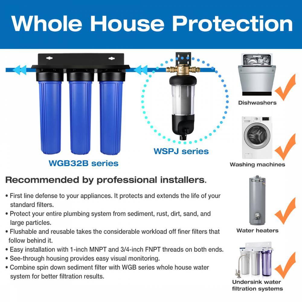 ISPRING WSP500J WSP500J Reusable Whole House Spin-Down Sediment Water Filter. Jumbo Size. Large Capacity. Flushable Prefilter Filtration