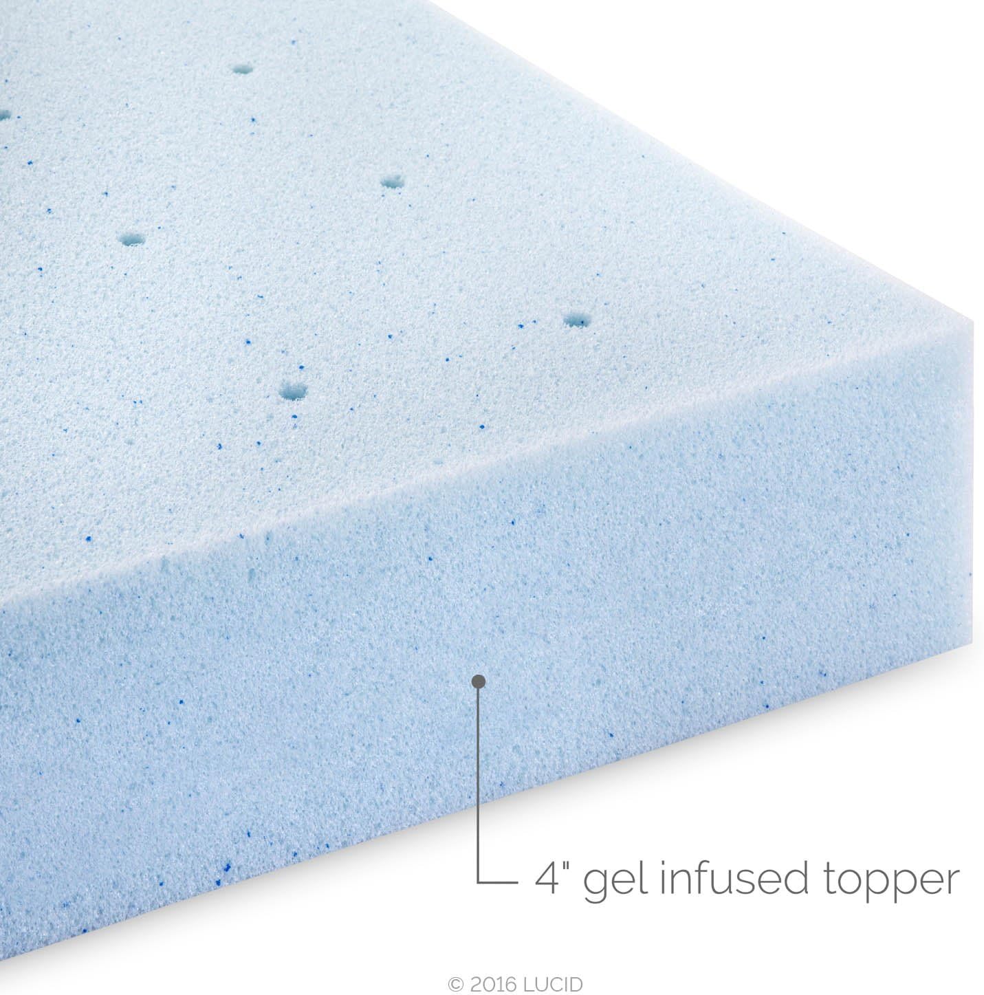 LUCID 4 Inch Gel Memory Foam Mattress Topper. Ventilated Design. Ultra Plush. CertiPUR-US Certified. King. Blue