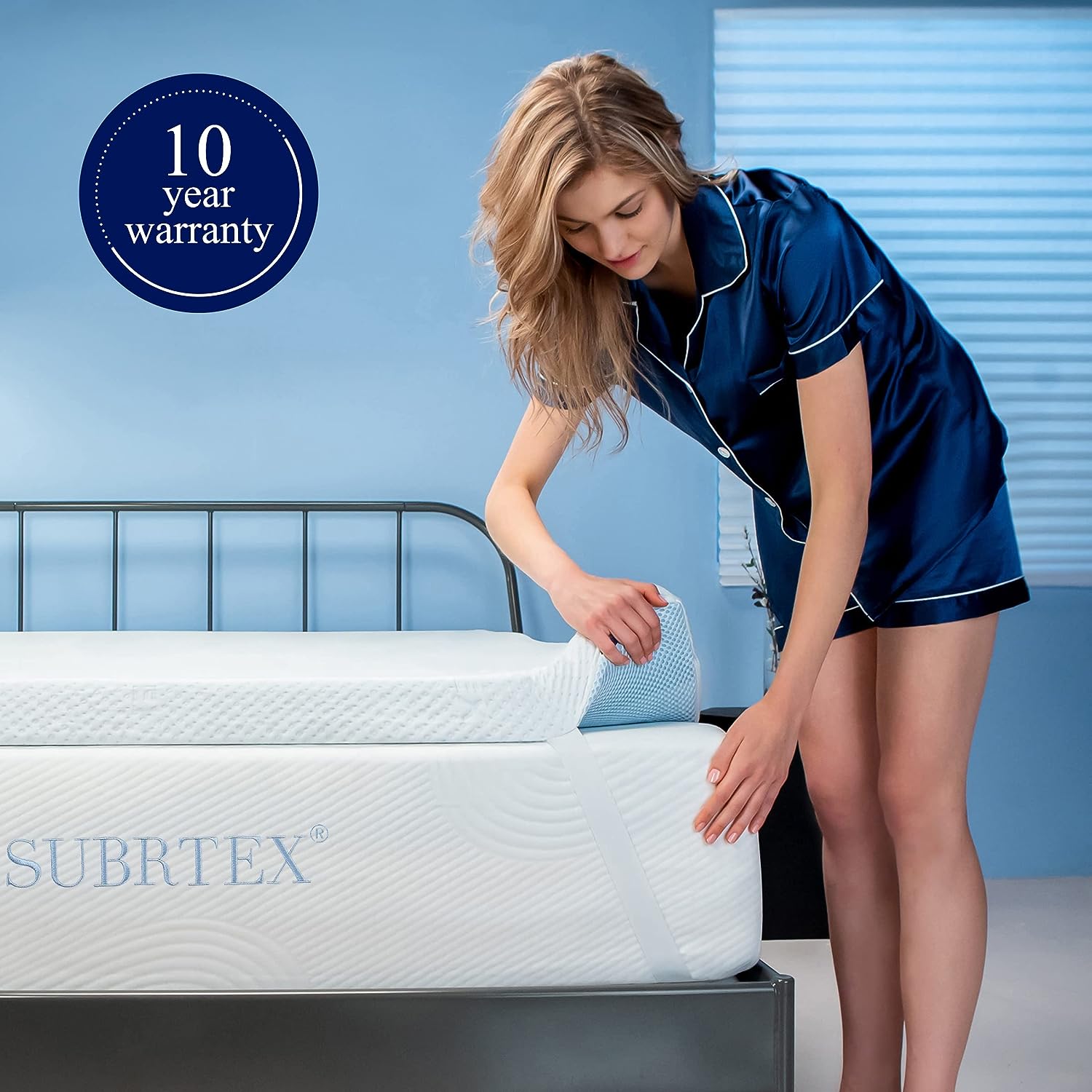 subrtex 2 Inch Gel-Infused Memory Foam Bed Mattress Topper High Density Cooling Pad Removable Fitted Bamboo Cover Ventilated Design-10 Years Warranty (Queen)