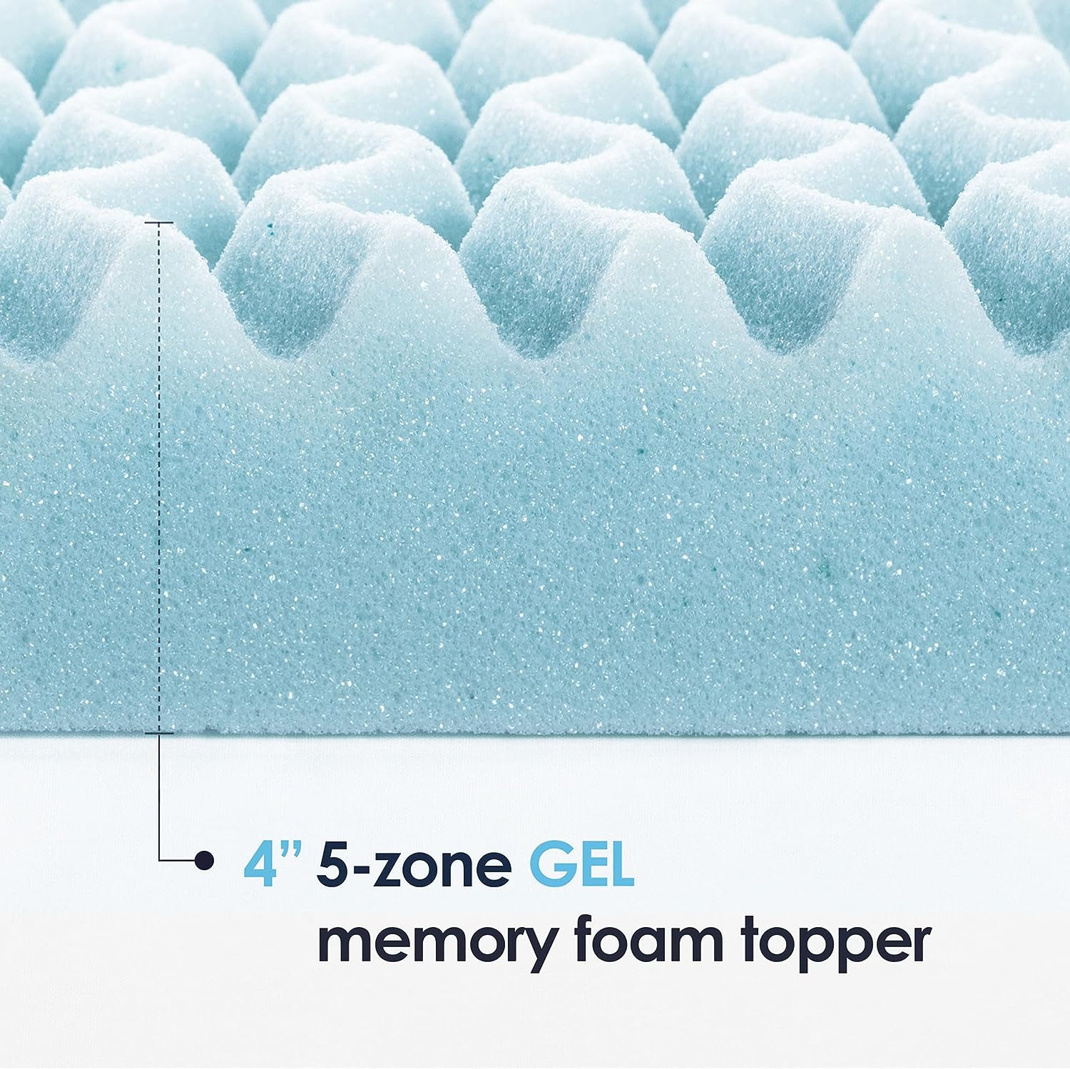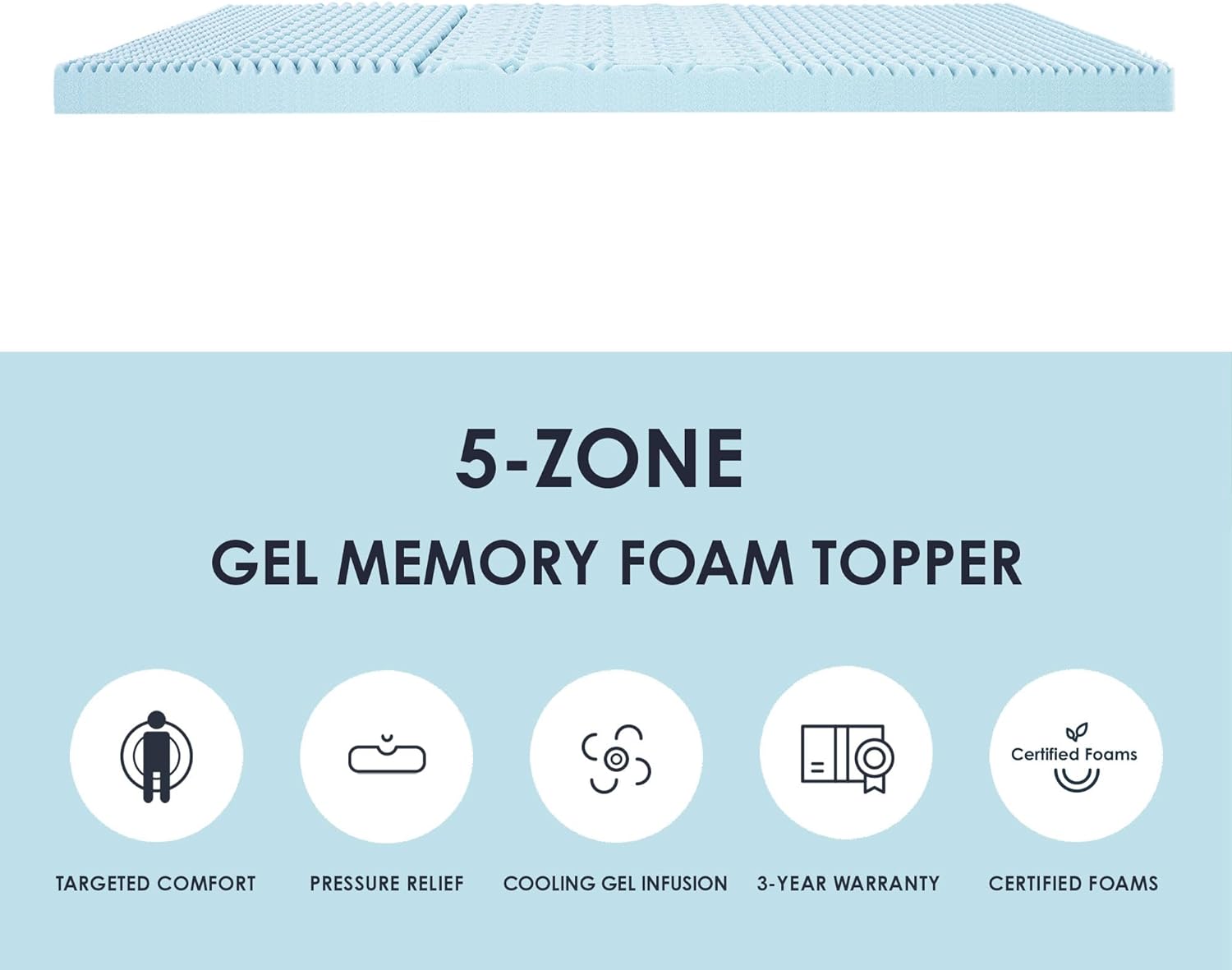 Mellow 4 Inch 5-Zone Memory Foam Mattress Topper. Cooling Gel Infusion. Full