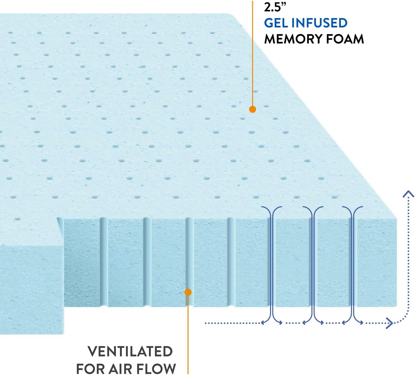 Best Price Mattress 2.5 Inch Ventilated Memory Foam Mattress Topper. Cooling Gel Infusion. CertiPUR-US Certified. Full. Blue
