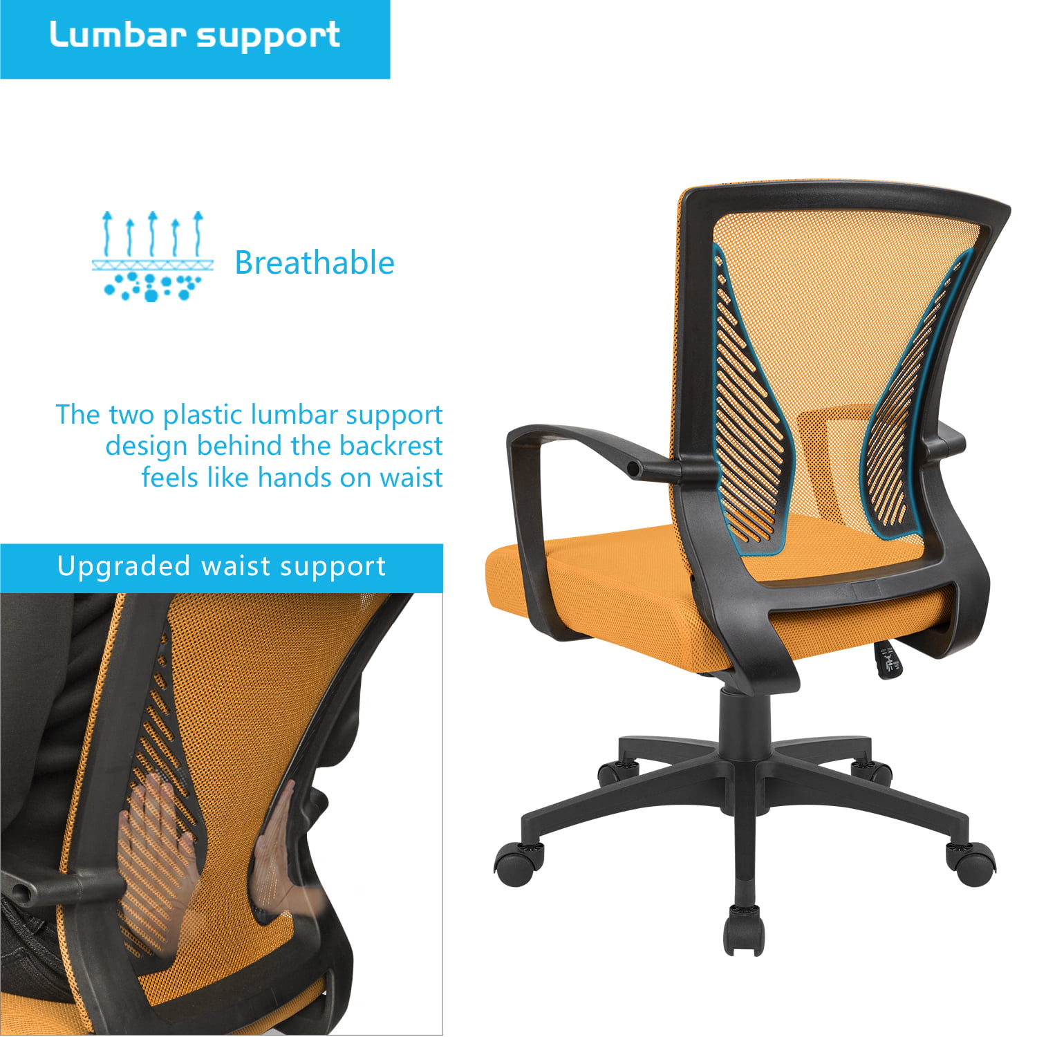 Lacoo Mid-Back Office Desk Chair Ergonomic Mesh Task Chair with Lumbar Support. Orange