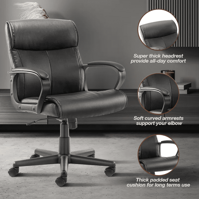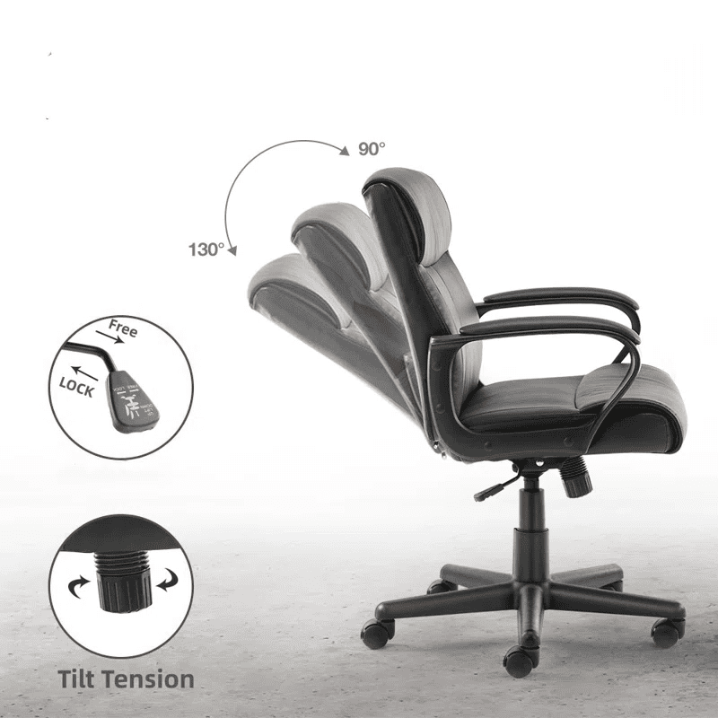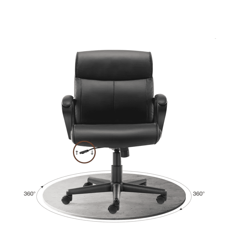Adjustable Height PU Leather surface Mid-back Office Chair. Black