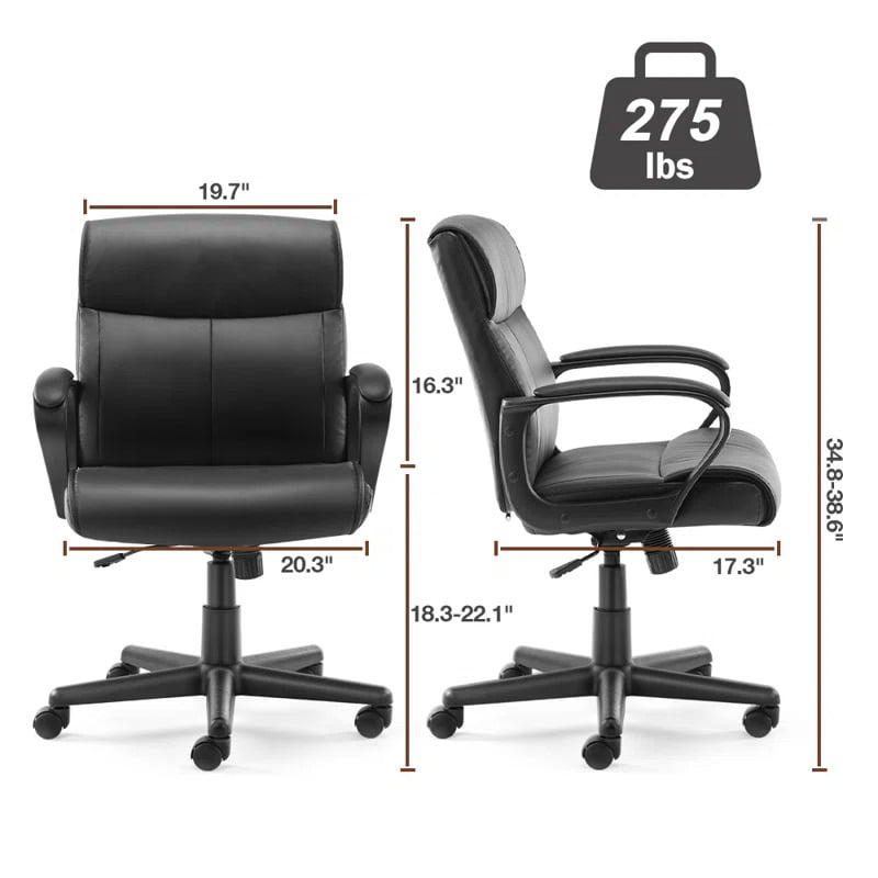 Better Homes and Gardens Executive. Mid-Back Manager-s Office Chair with Arms. Black Bonded Leather. Black
