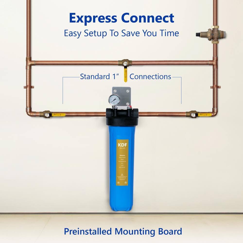 Express Water WH100SK Whole House 1-Stage Water Filtration System - Heavy Metal KDF Filter - Pressure Gauge. Easy Release. 1 in. Connections