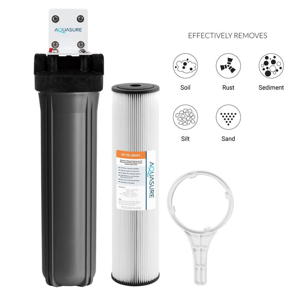 AQUASURE AS-FL-30PS Fortitude V2 Series High-Flow Whole House Water Filtration System Pleated Sediment Water Filter 30 Micron Large Size