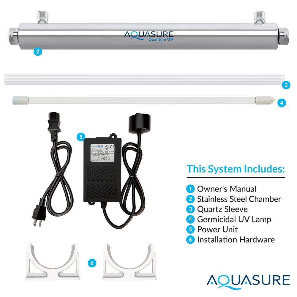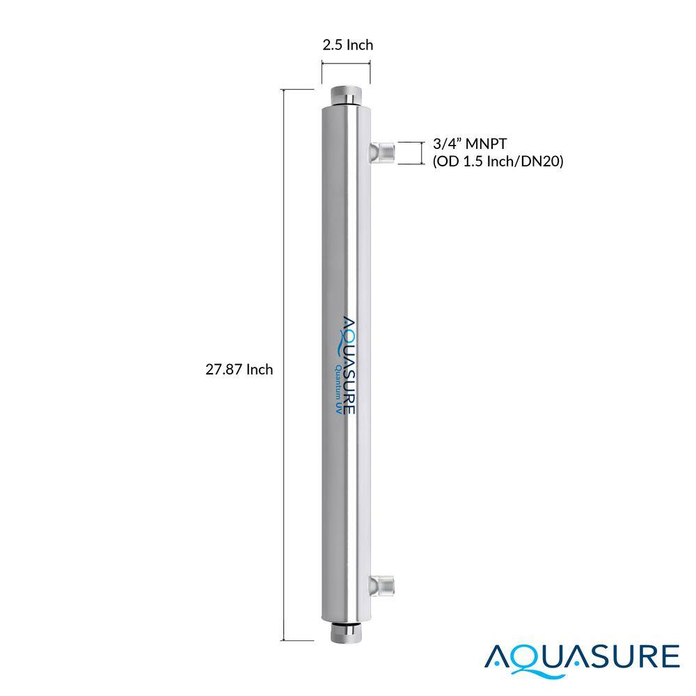 AQUASURE AS-UV8S Quantum Series 8 GPM Ultraviolet UV Light Water Filter System for Whole House Water Sterilization Disinfection