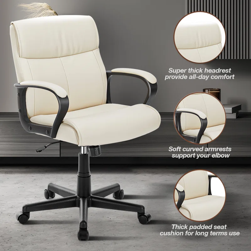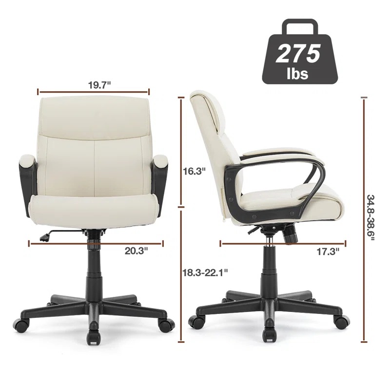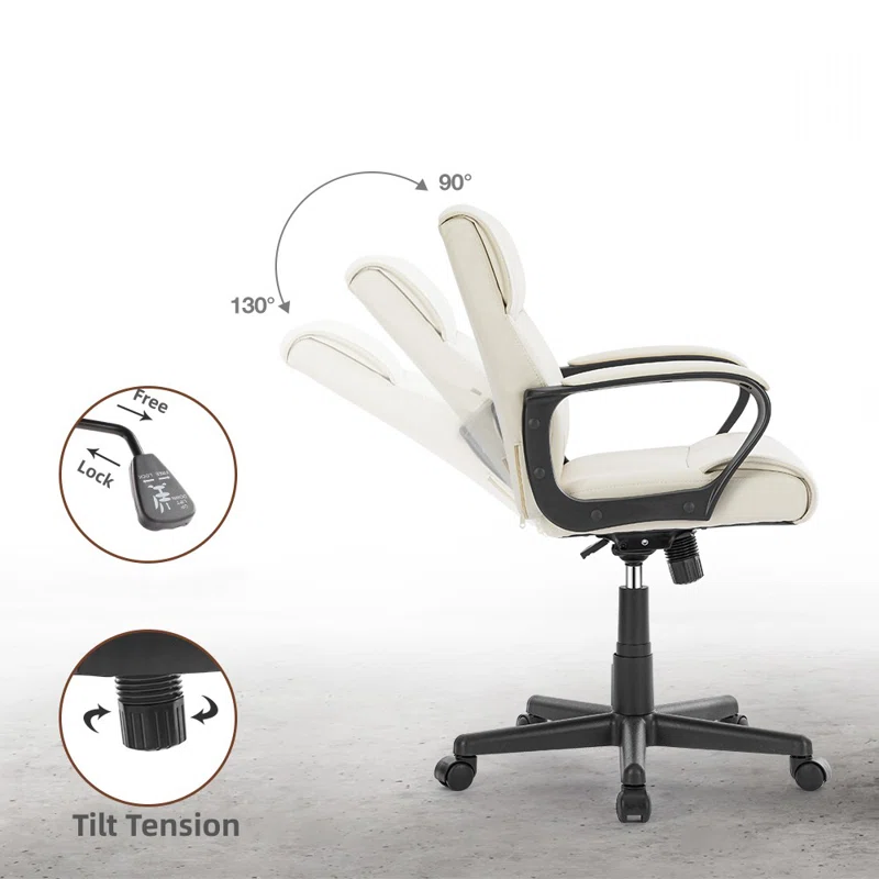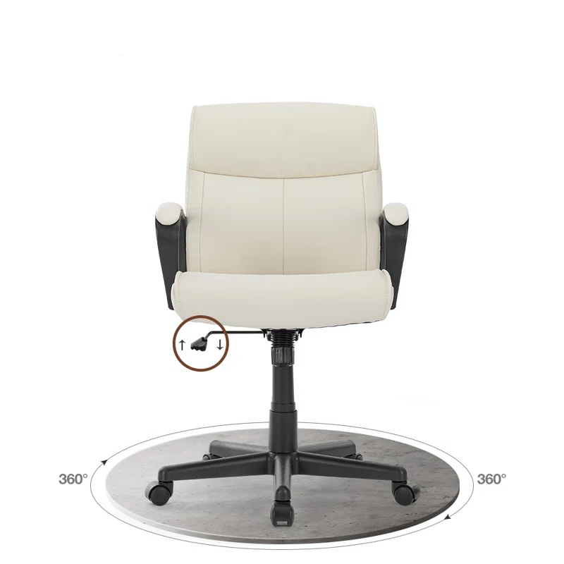 Adjustable Height PU Leather surface Mid-back Office Chair. White