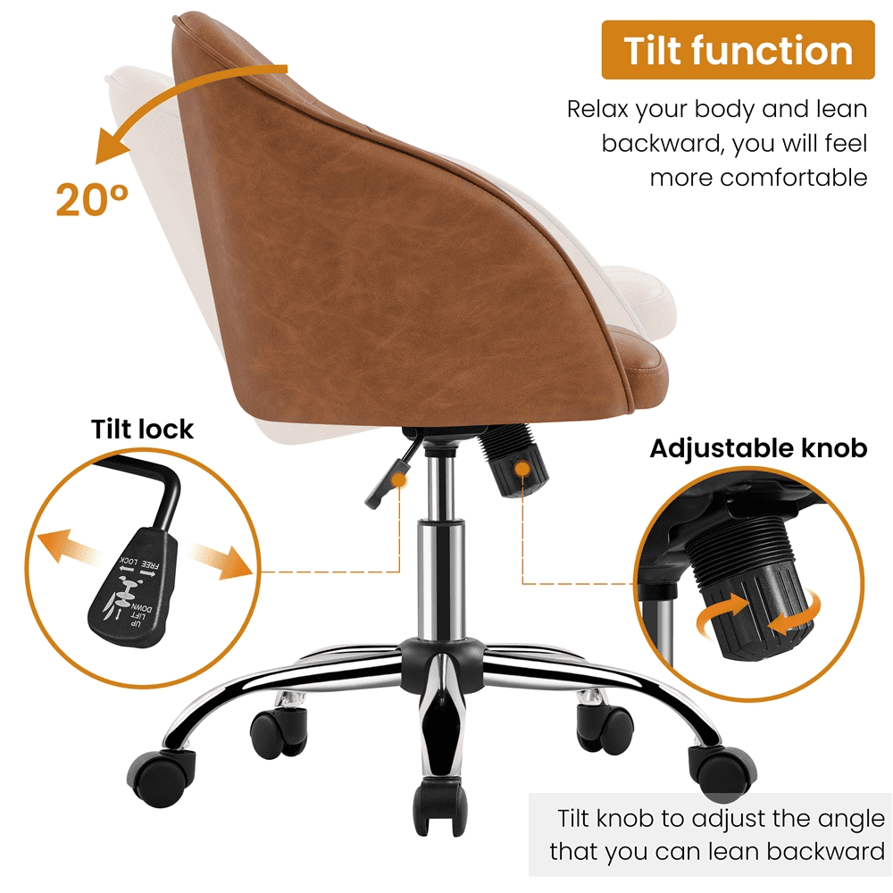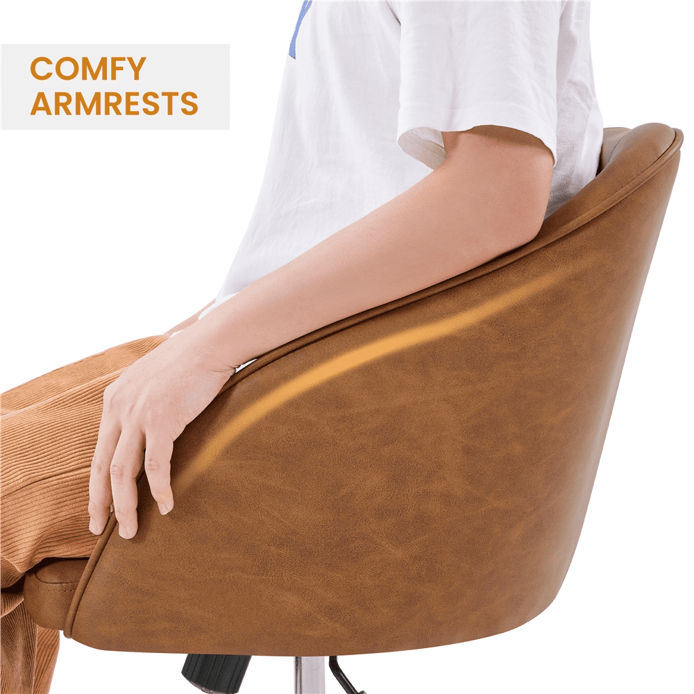 Smile Mart Adjustable Swivel Velvet Desk Chair for Home Office. Retro Brown