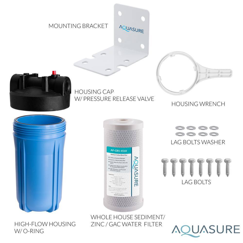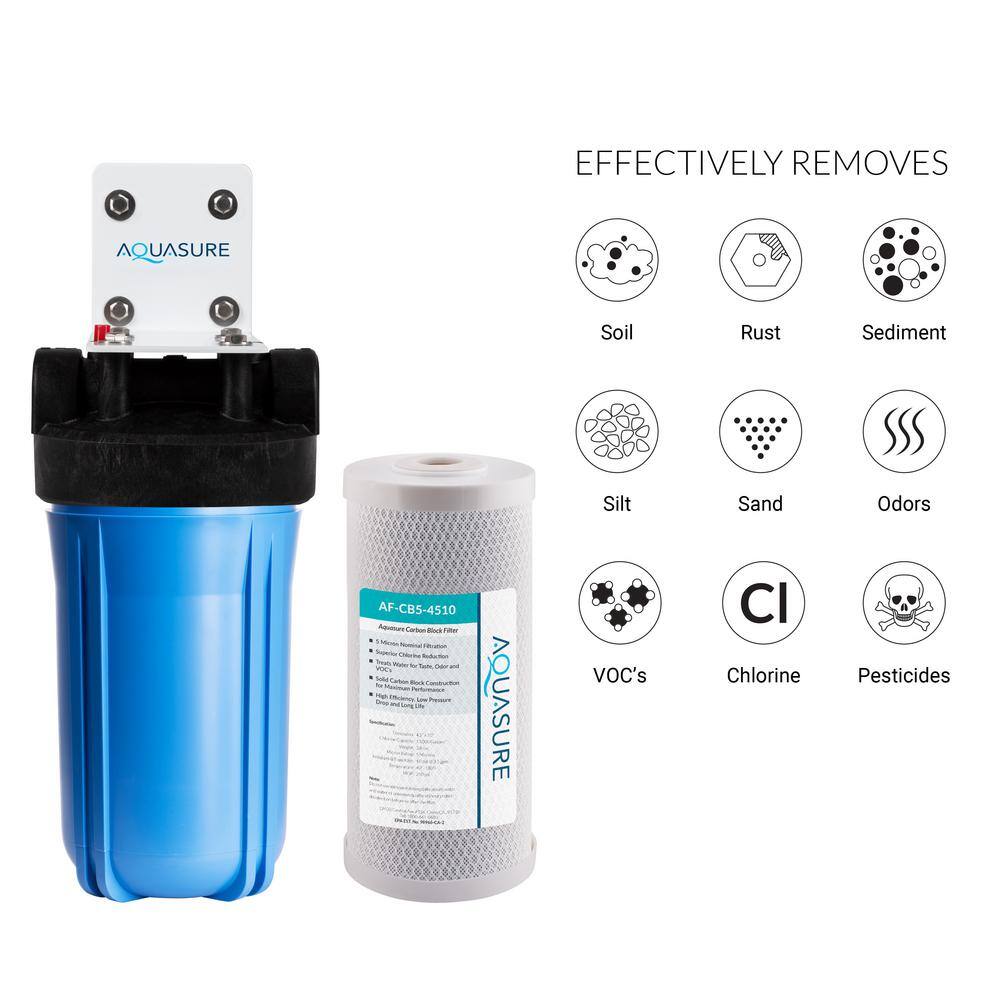 AQUASURE AS-F110CB5 Fortitude High Flow Whole House Water Filter with 5-Micron Carbon Block Water Filter 10 in. x 4.5 in.