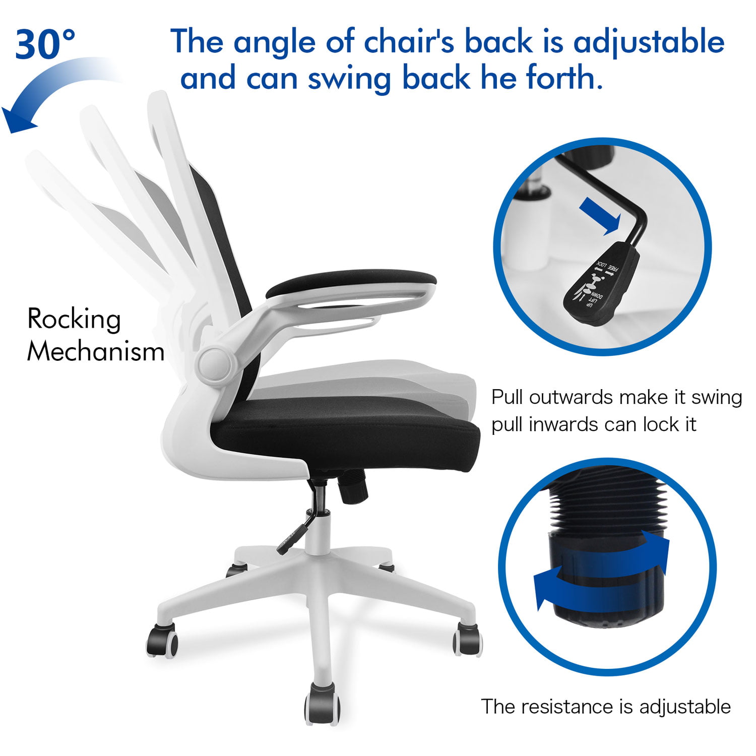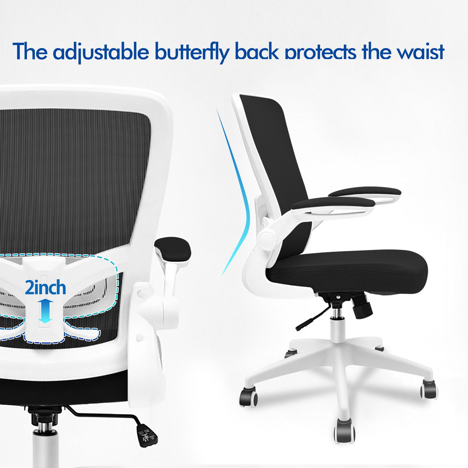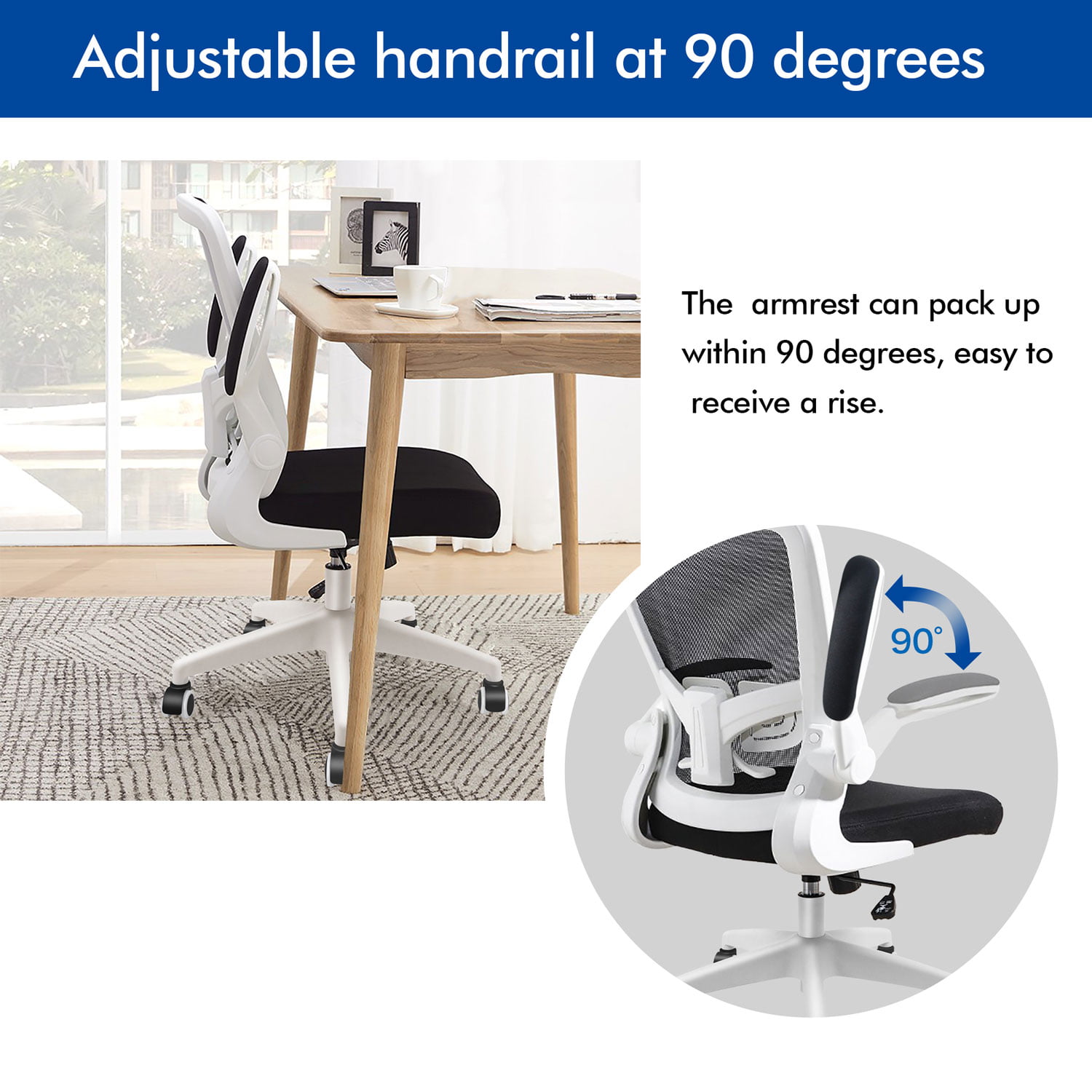 KERDOM Office Chair. Ergonomic Desk Chair with Adjustable Lumbar Support and Flip up Arms. White