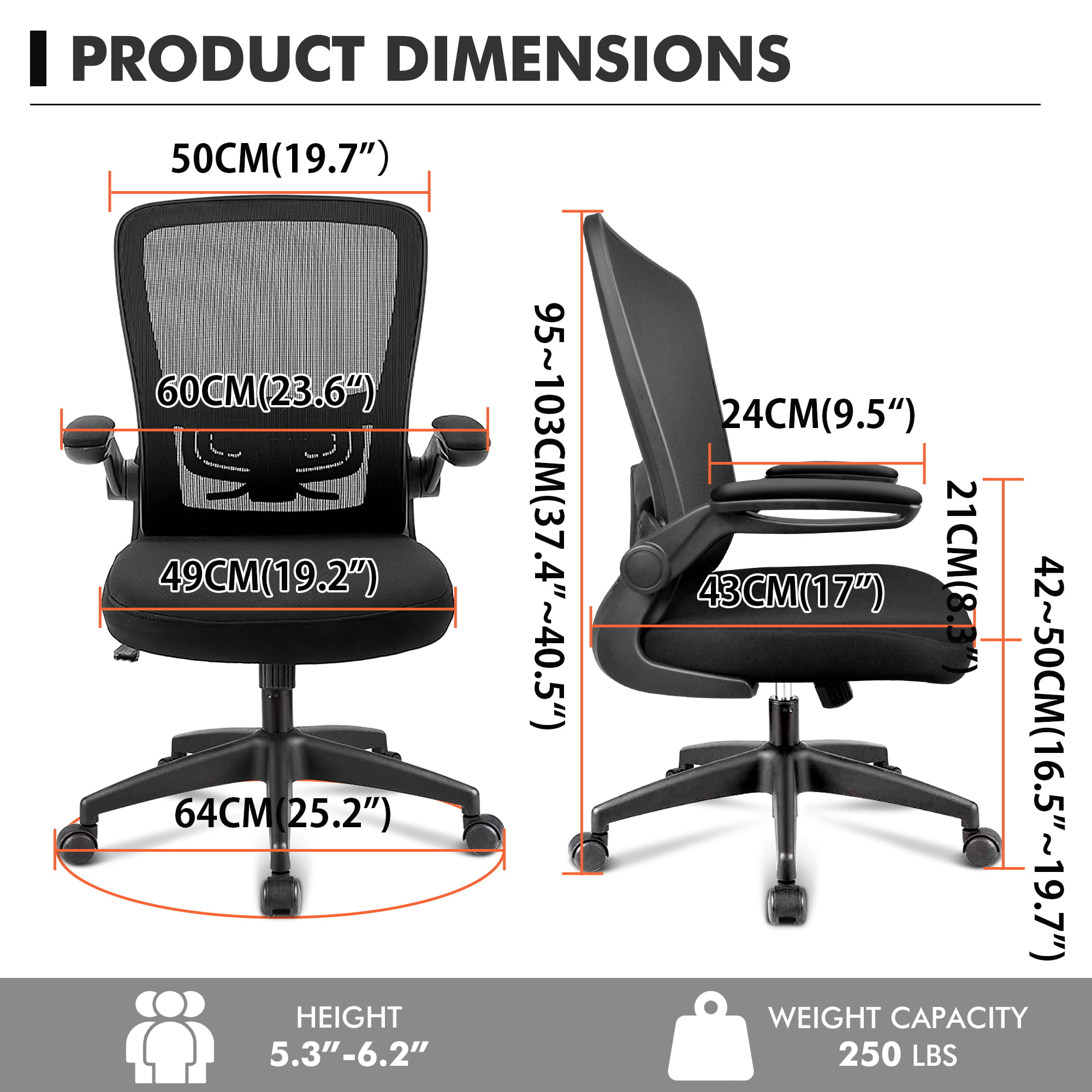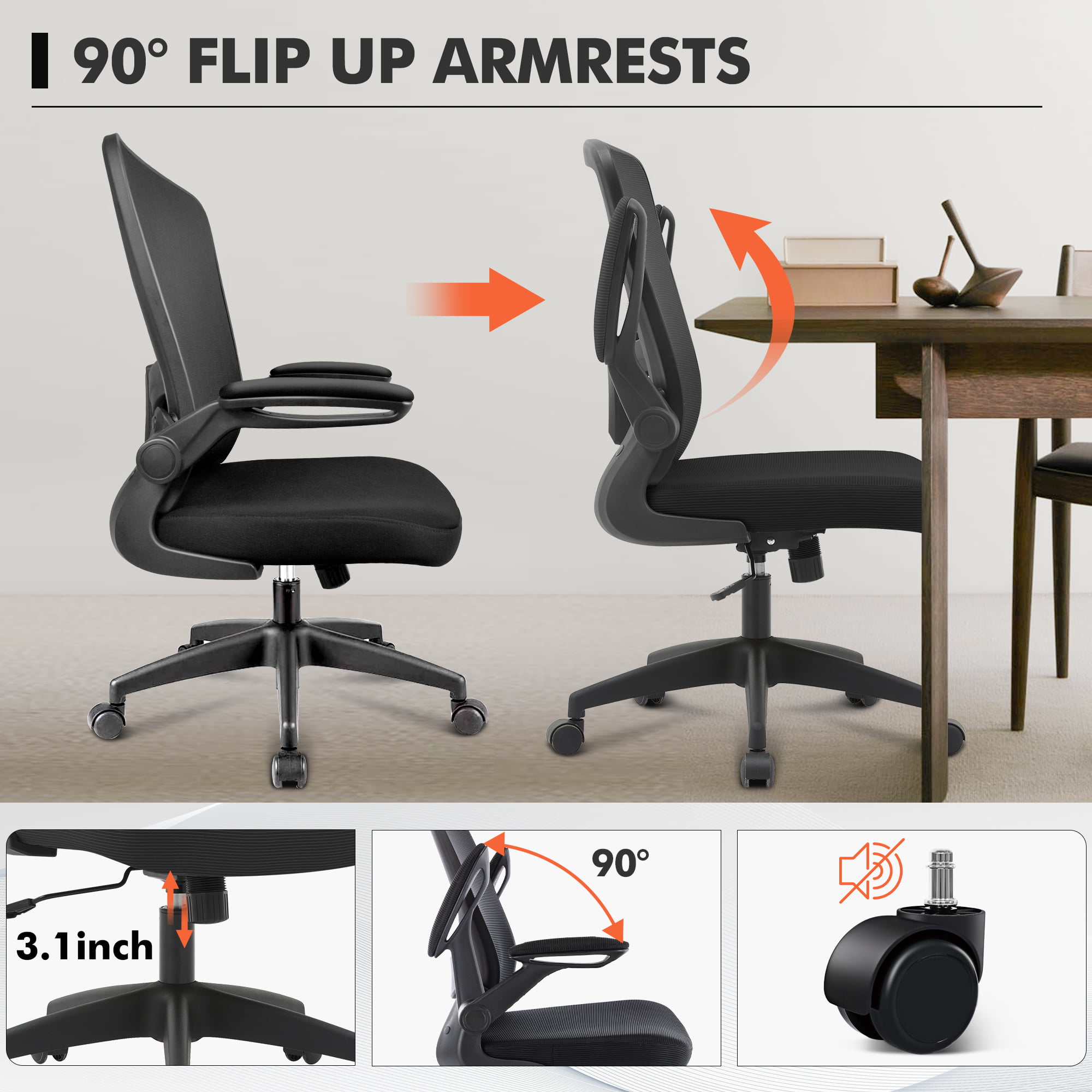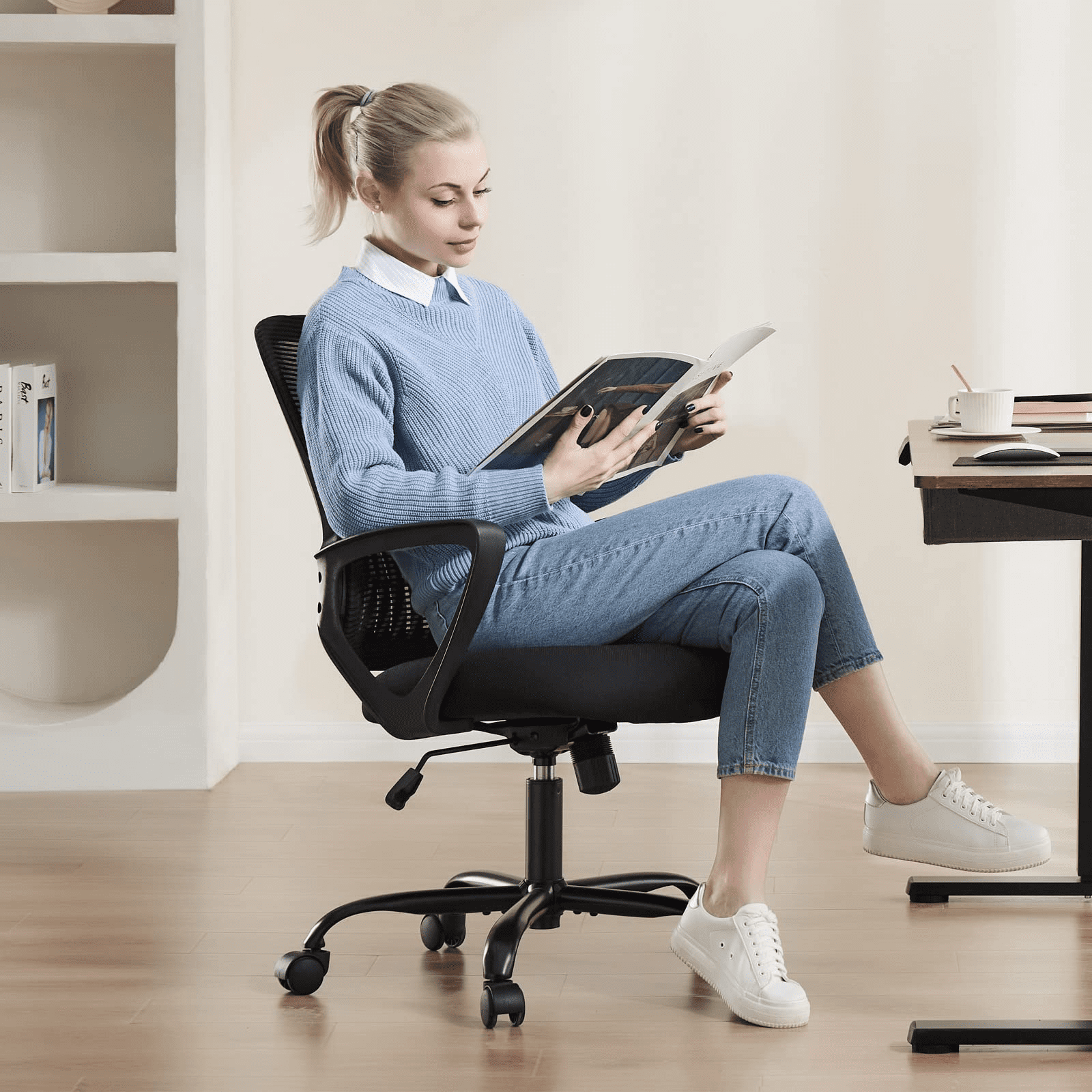 Yoyomax Office Chair. Ergonomic Home Office Desk Chairs. Computer Chair with Comfortable Armrests. Mesh Desk Chairs with Wheels. Mid-Back Task Chair with Lumbar Support. Classic. Black