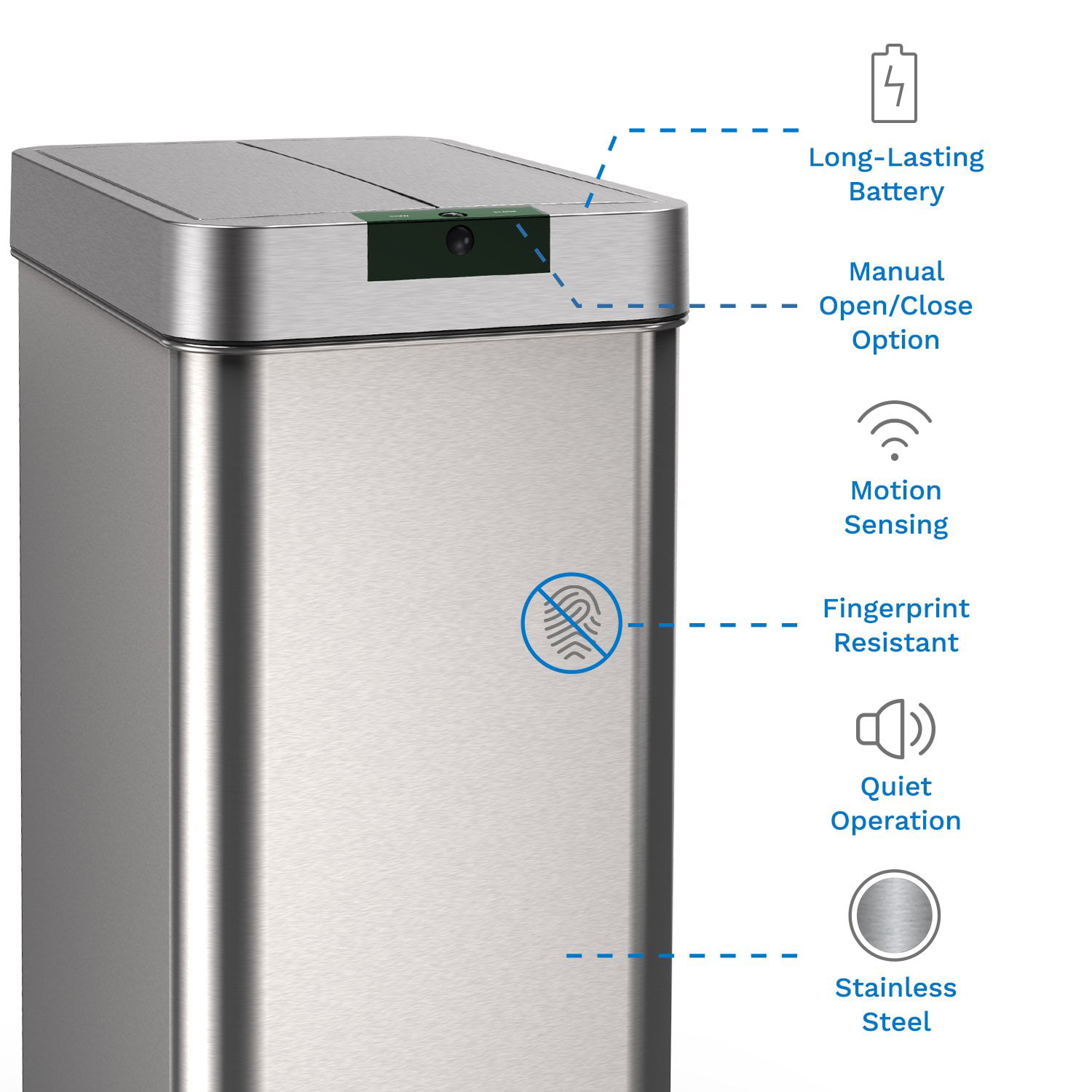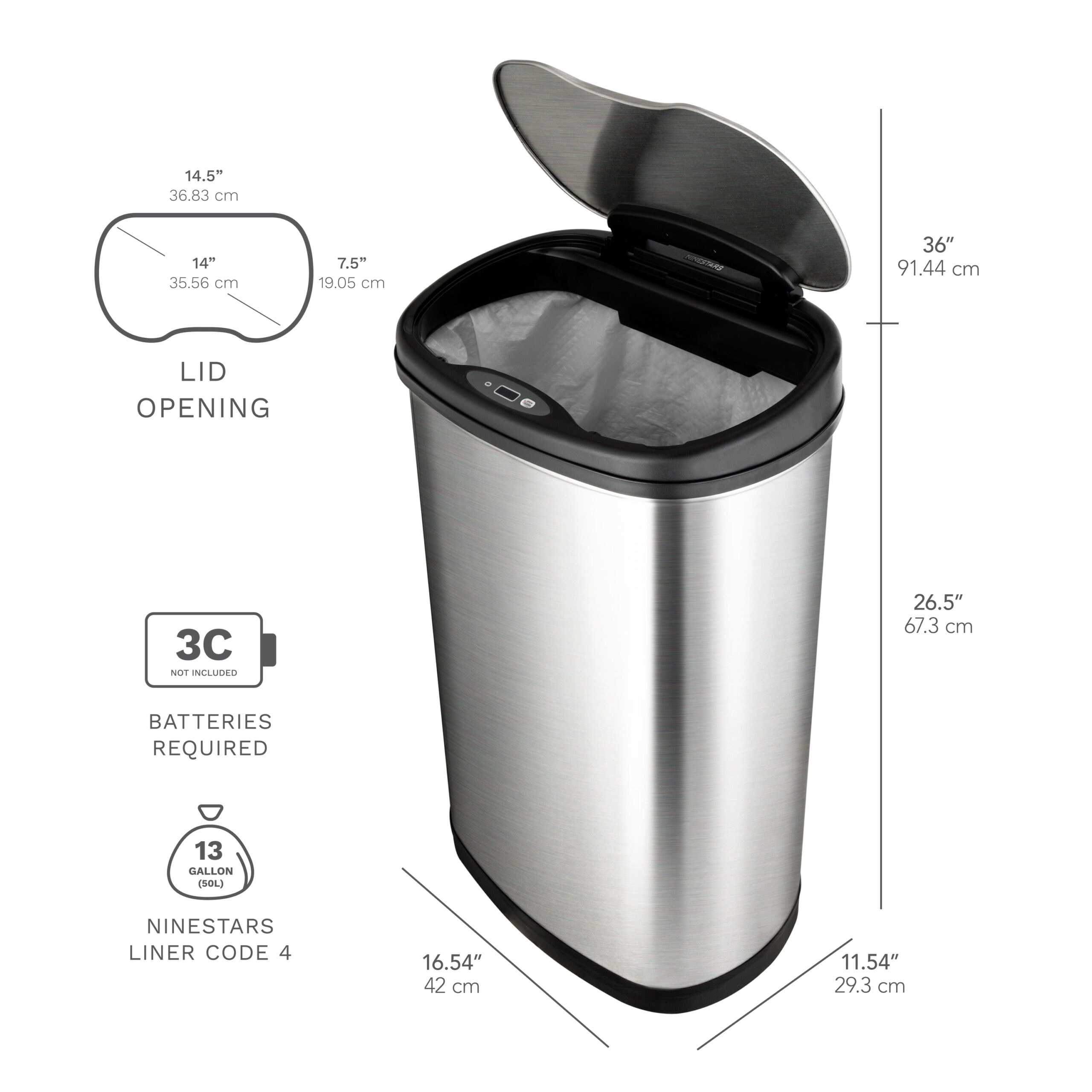 Nine Stars 13.2 Gallon Trash Can. Motion Sensor Kitchen Trash Can. Stainless Steel