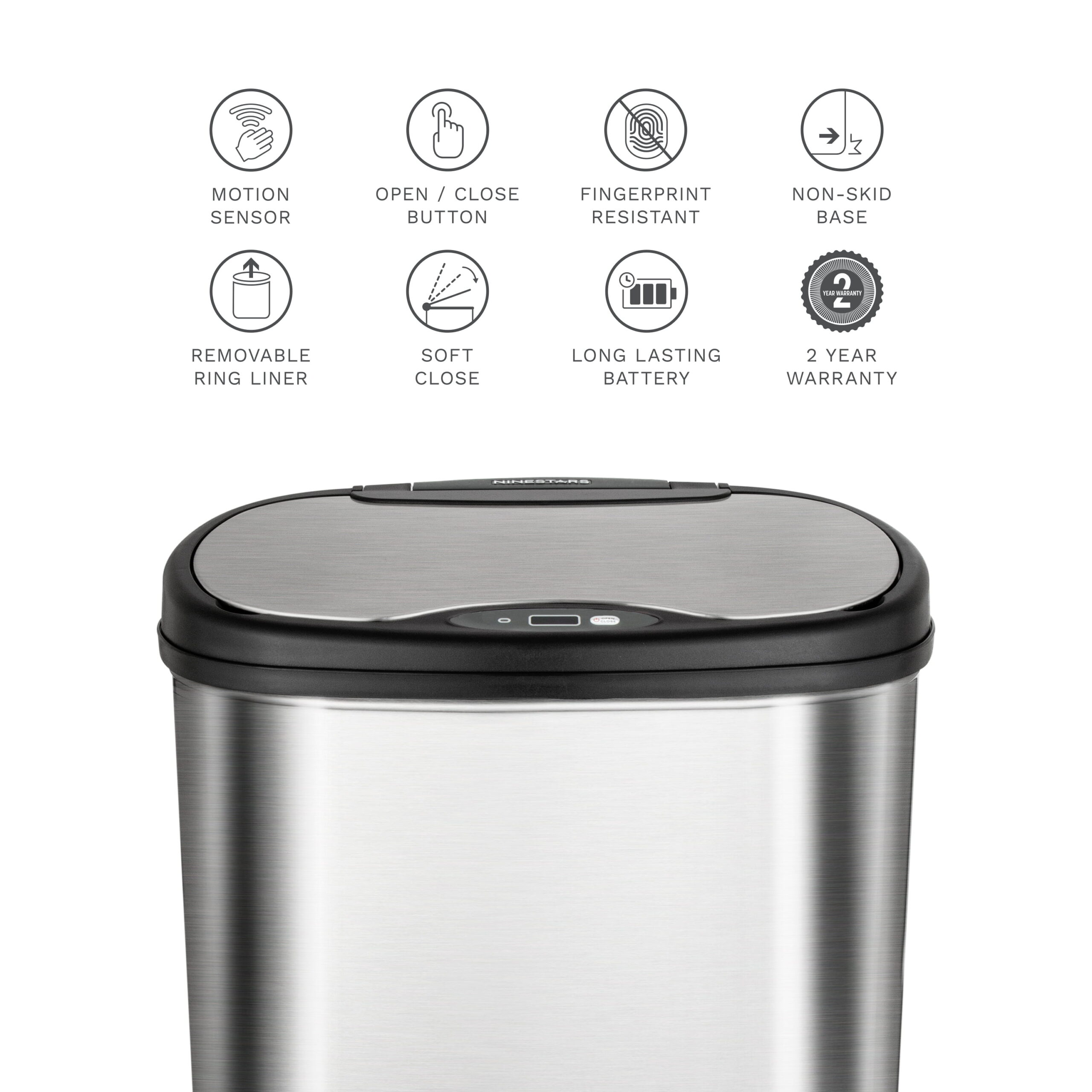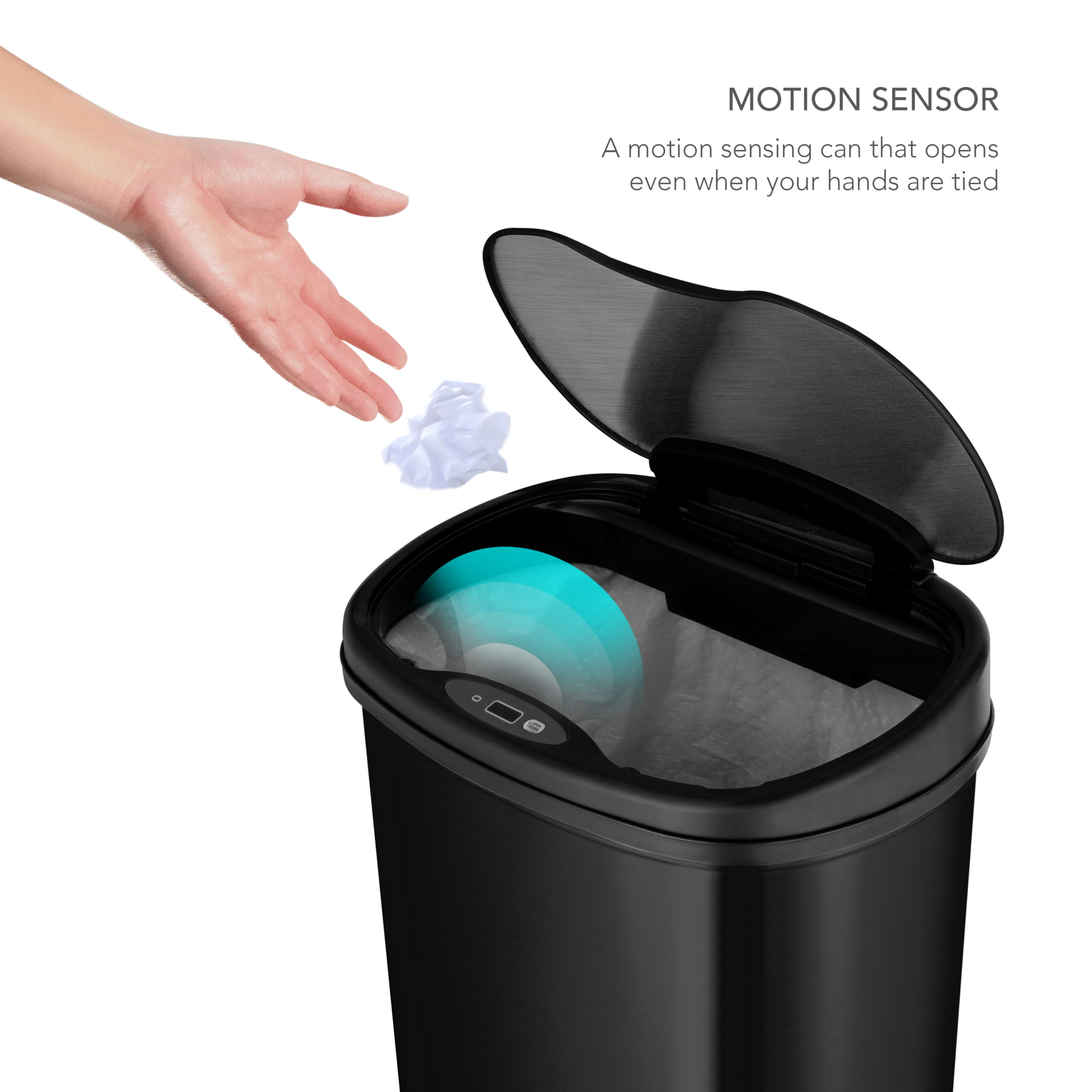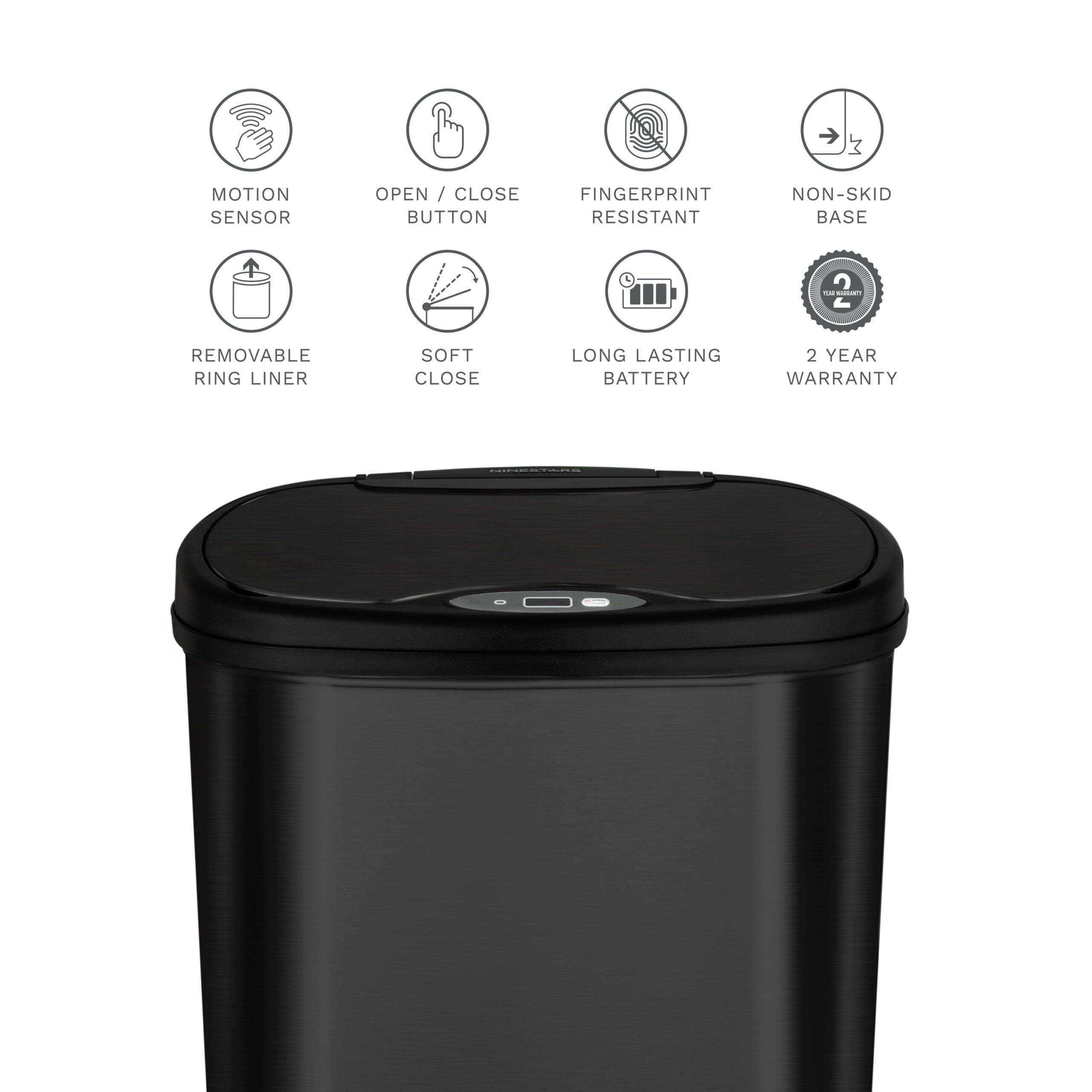 Nine Stars 13.2 Gallon Trash Can. Motion Sensor Kitchen Trash Can. Black Stainless Steel