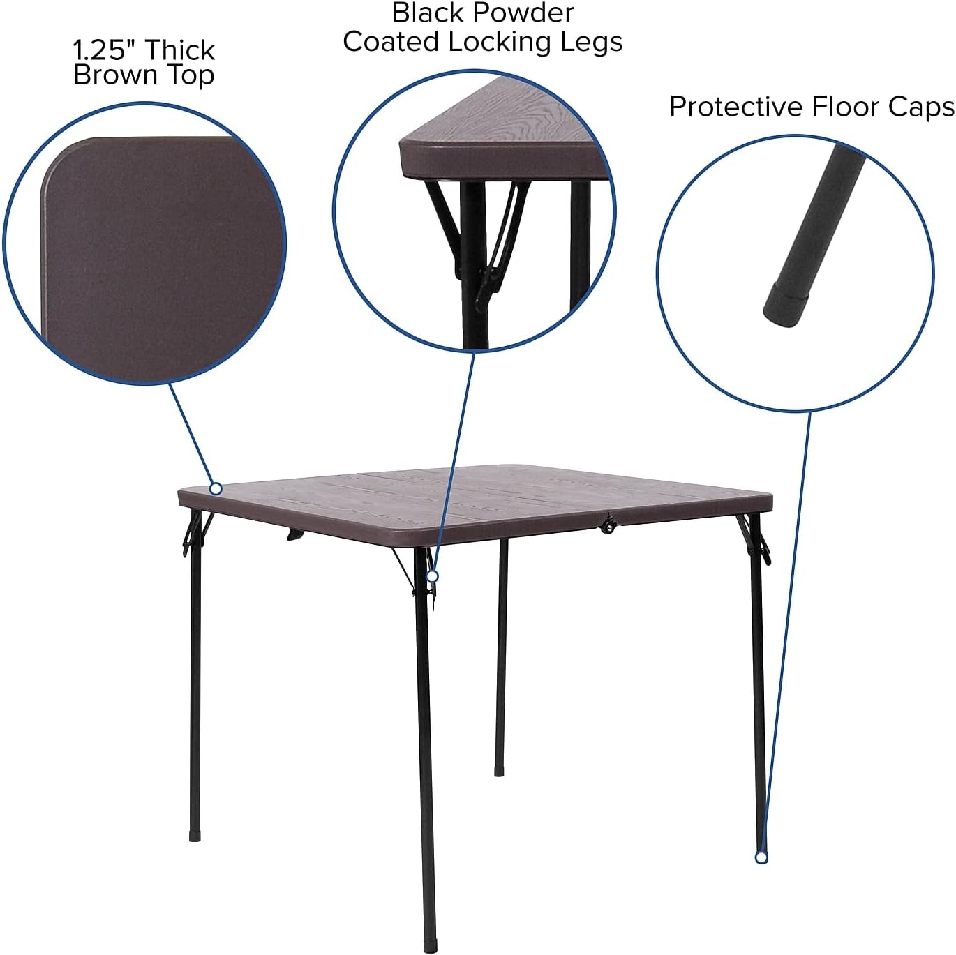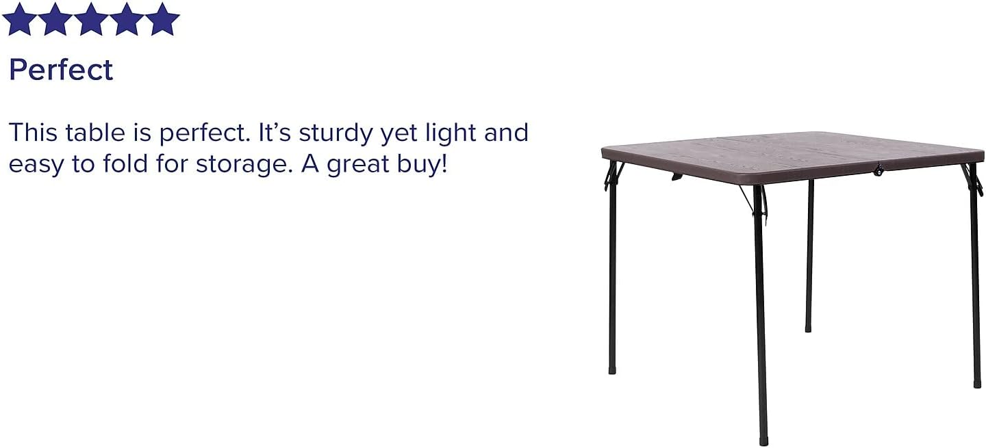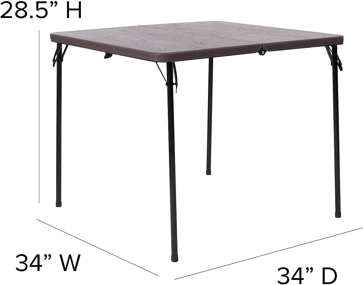 Flash Furniture Dunham 2.83-Foot Square Bi-Fold Brown Wood Grain Plastic Folding Table with Carrying Handle