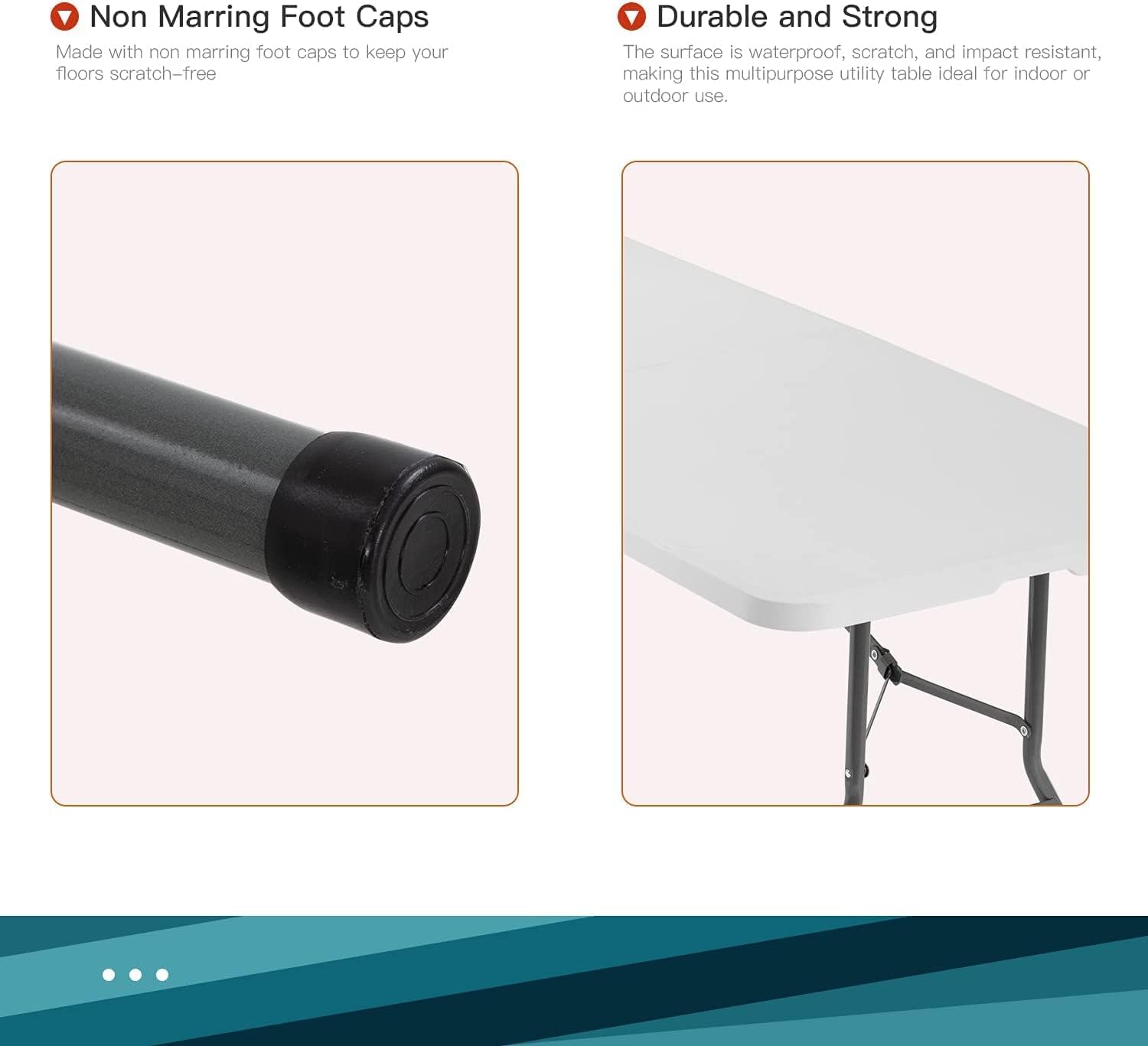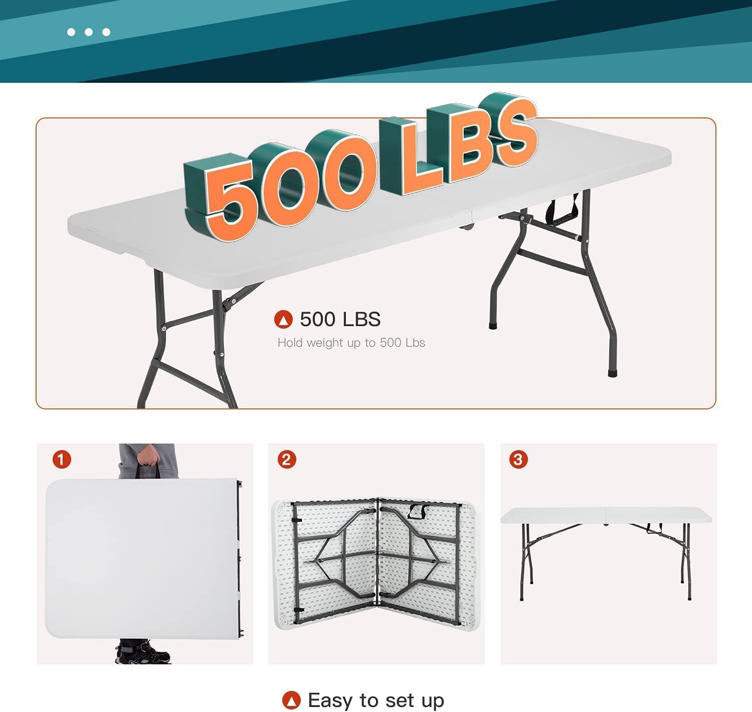 FDW Folding Tables. Plastic 6ft Folding Table.Half Portable Foldable Table for Parties. Backyard Events.White