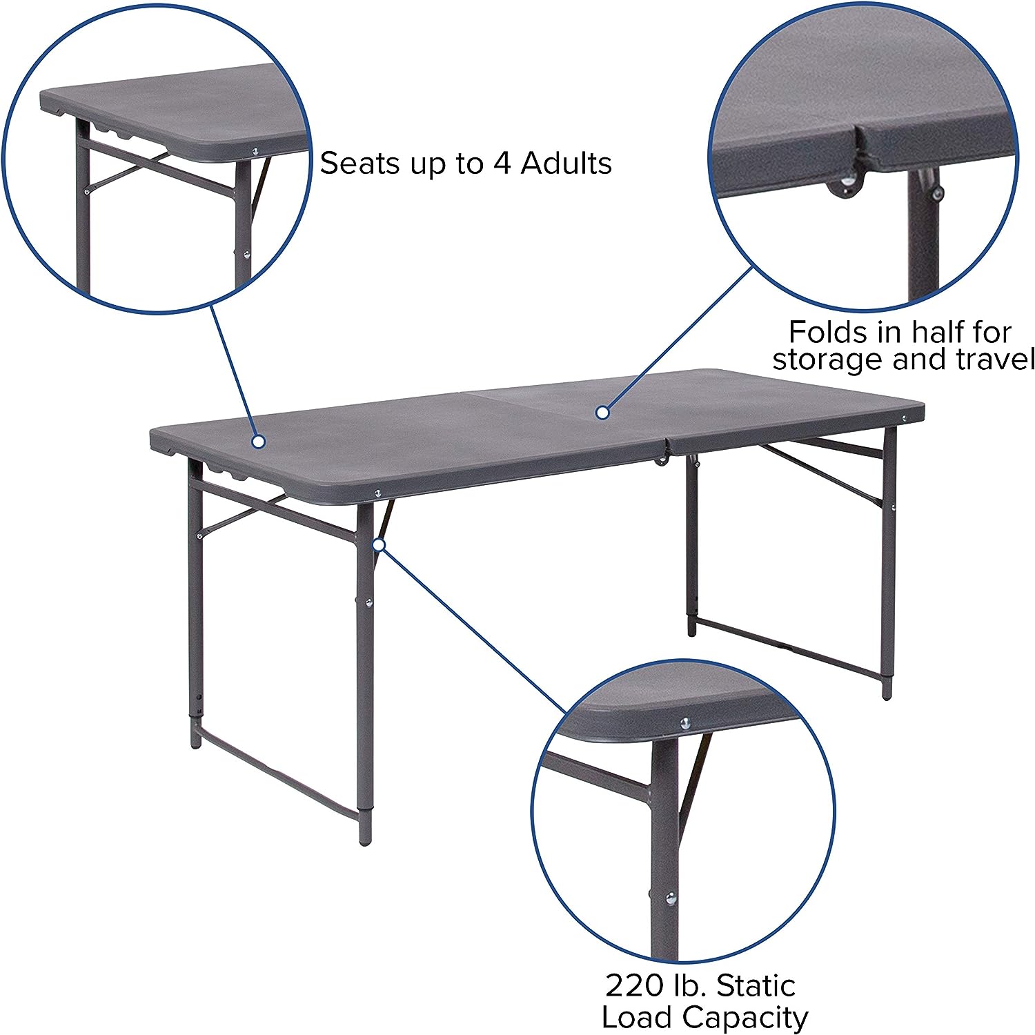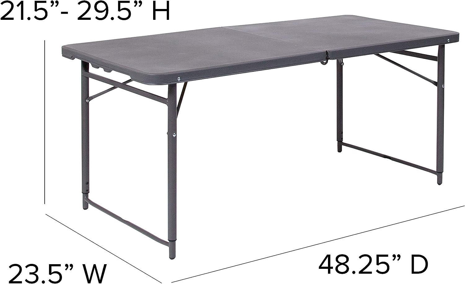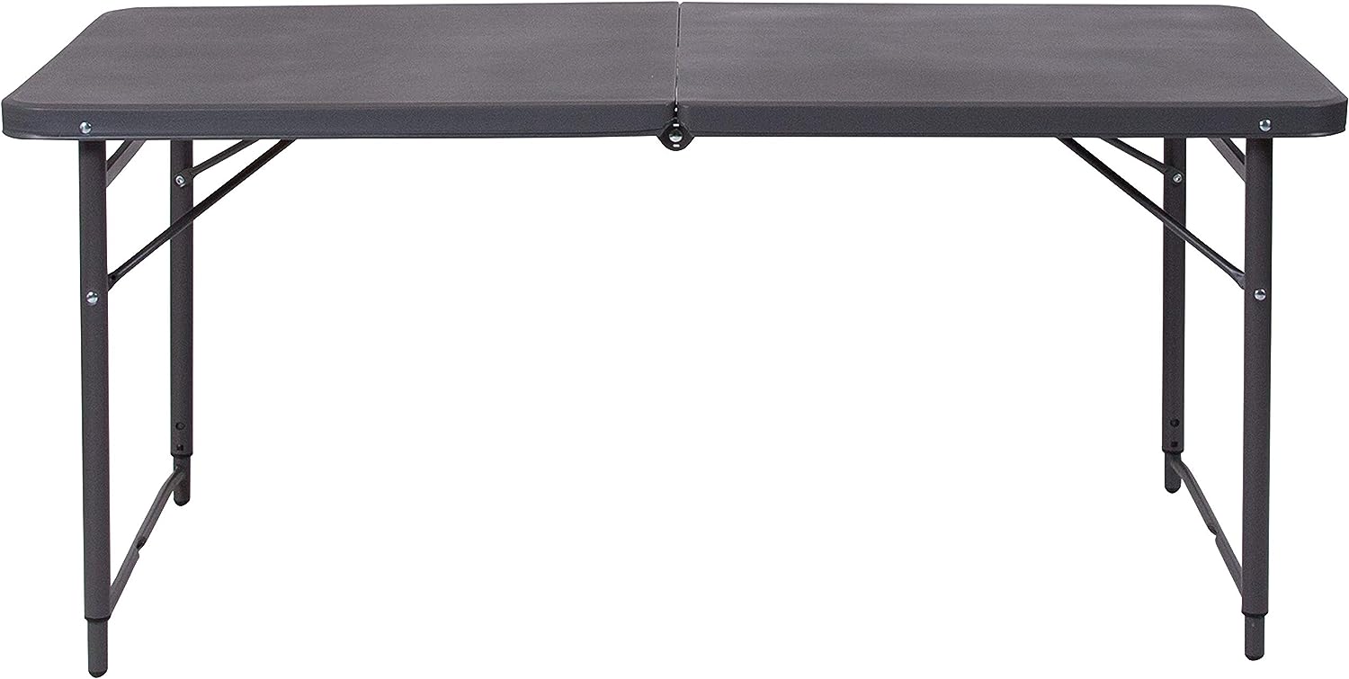 Flash Furniture Mills 4-Foot Height Adjustable Bi-Fold Dark Gray Plastic Folding Table with Carrying Handle
