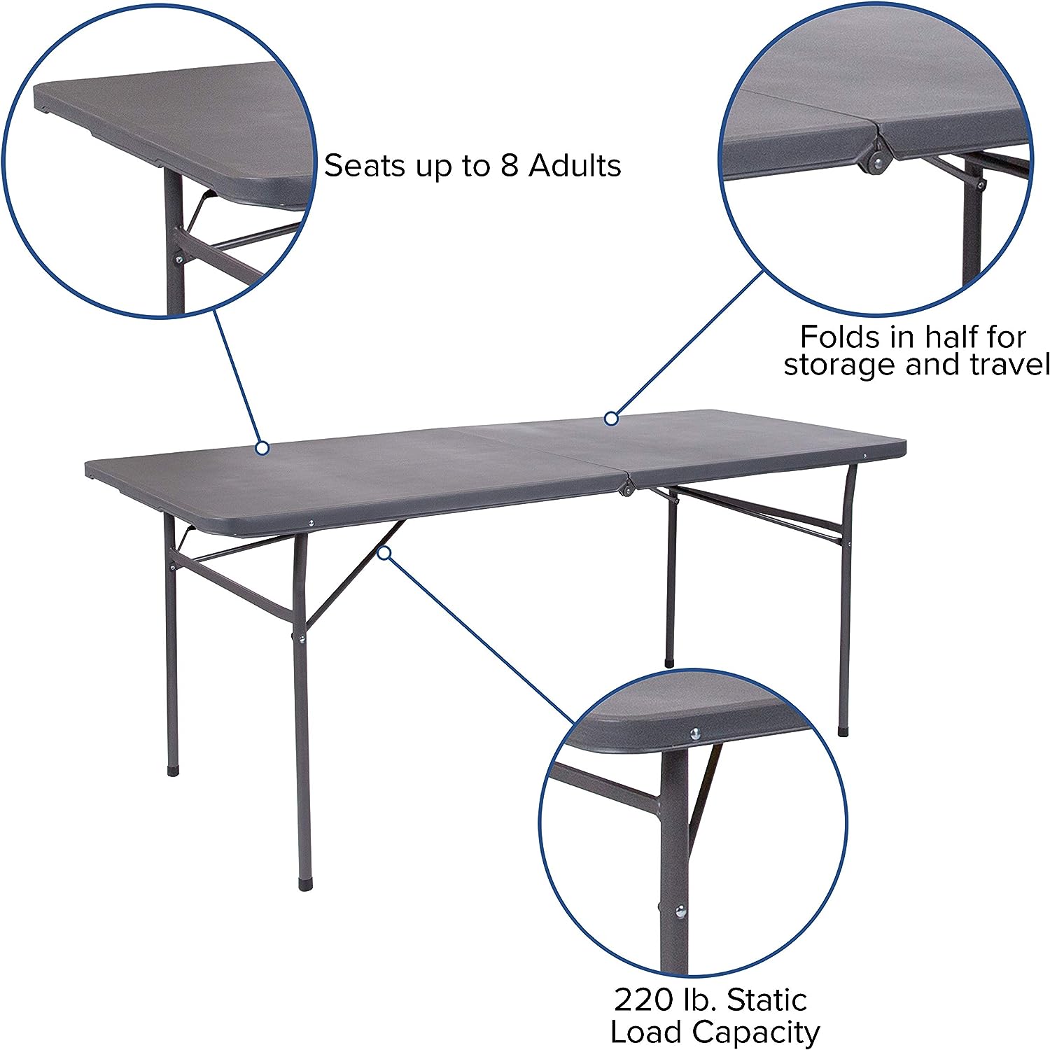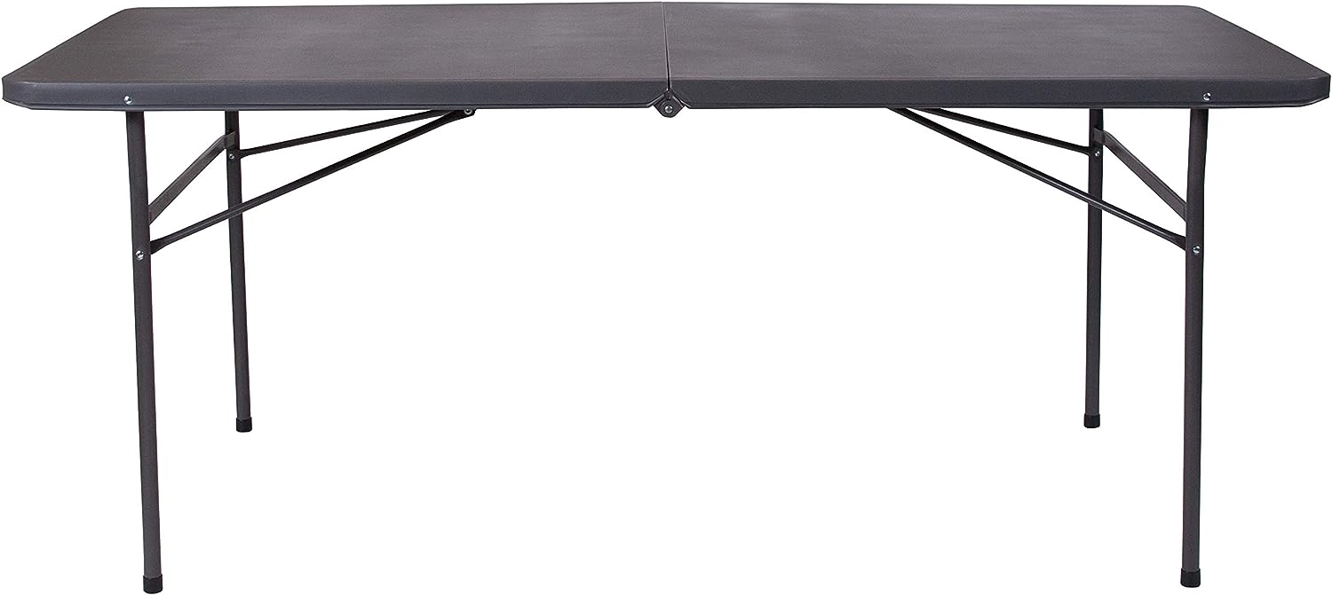 Flash Furniture Elijah 6-Foot Bi-Fold Dark Gray Plastic Folding Table with Carrying Handle
