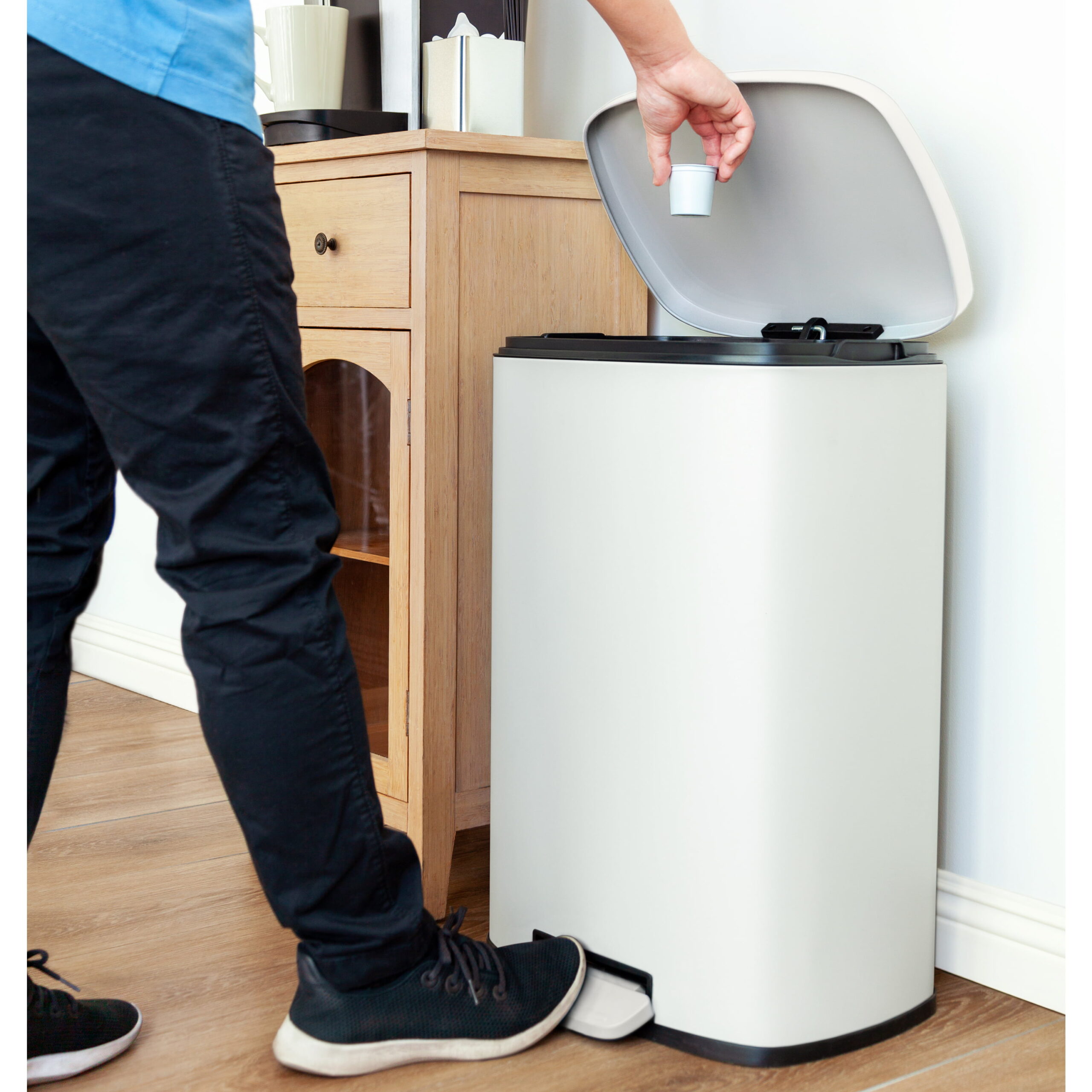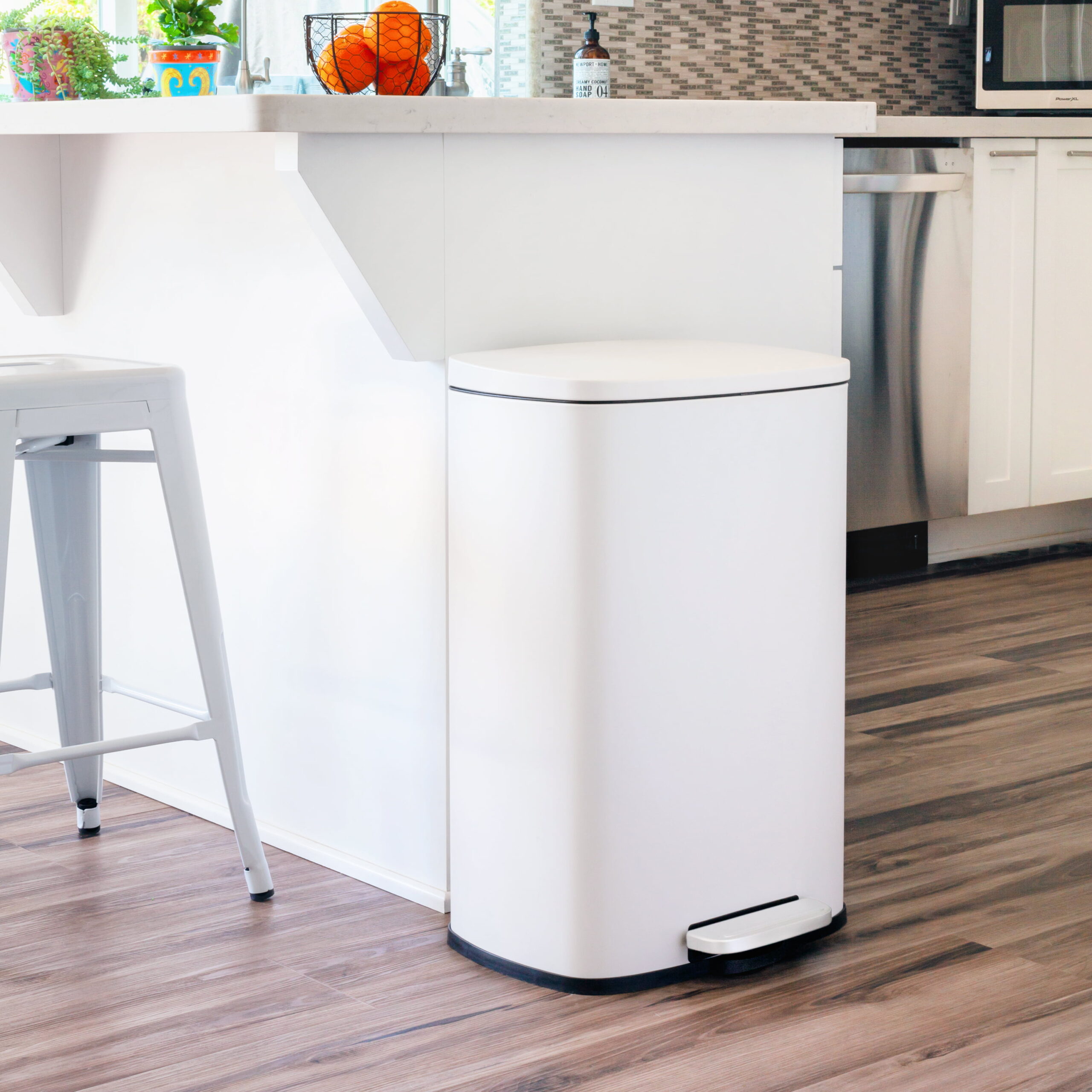 Qualiazero 13.2 Gallon and 3.2 Gallon Trash Can Combo. Rectangular Shape Step Can Combo - Matte White