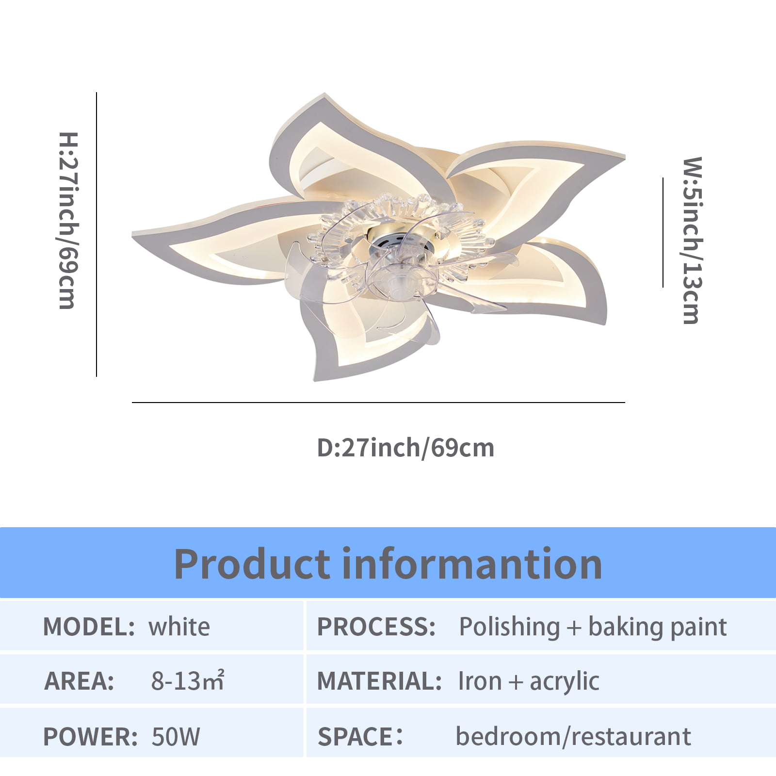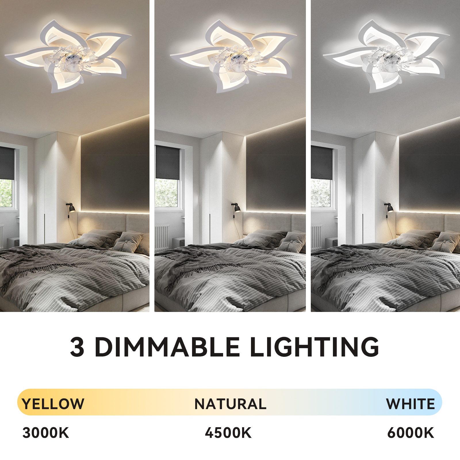 DoungRos 27.2″ Smart Ceiling Fan with Lights Remote APP Control. Modern Flush Mount Bladeless Ceiling Fan. 3 Color 6 Speeds Low Profile Ceiling Fan with Light for Bedroom Living Room Kitchen - White
