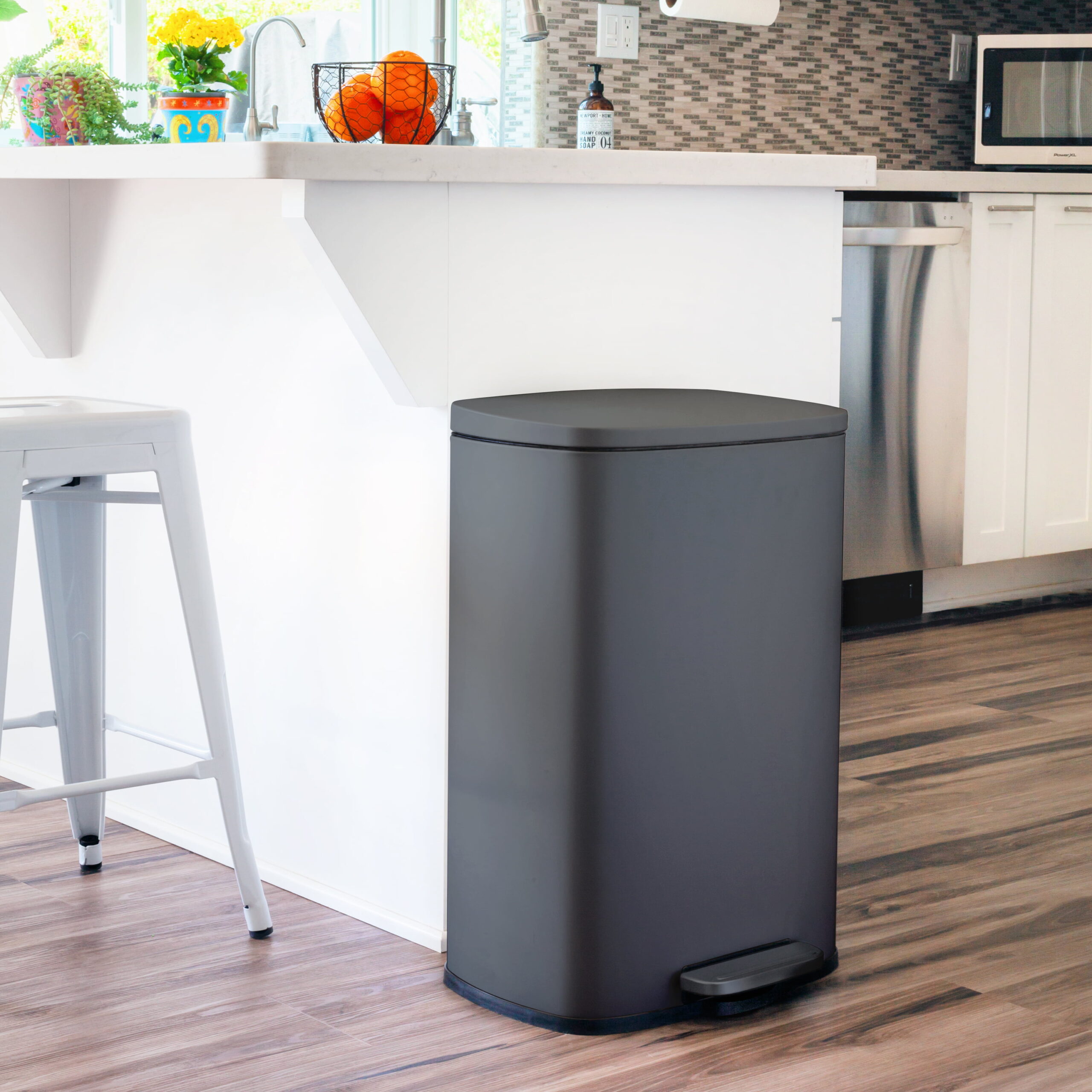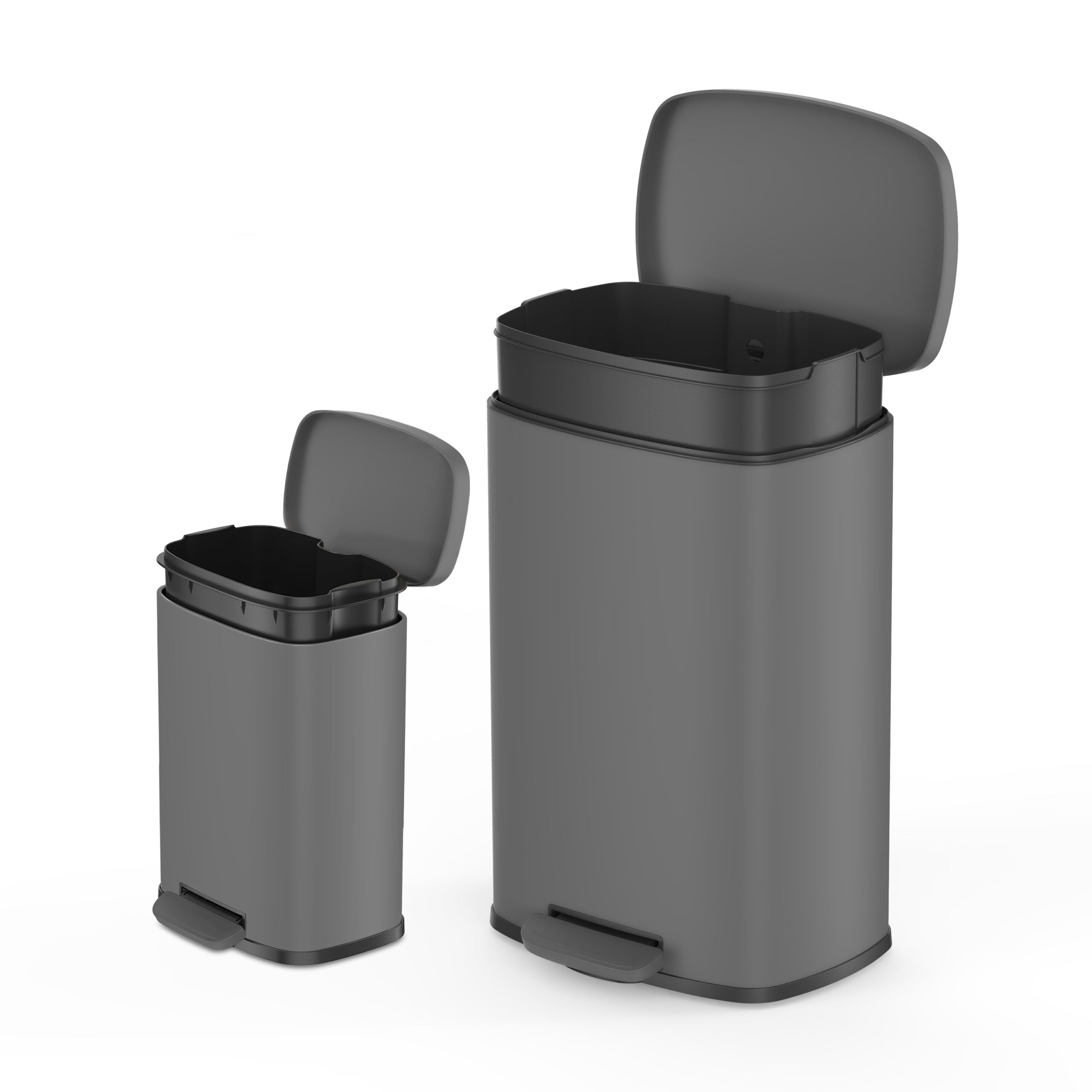 Qualiazero 13.2 Gallon and 3.2 Gallon Trash Can Combo. Rectangular Shape Step Can Combo - Matte Gray