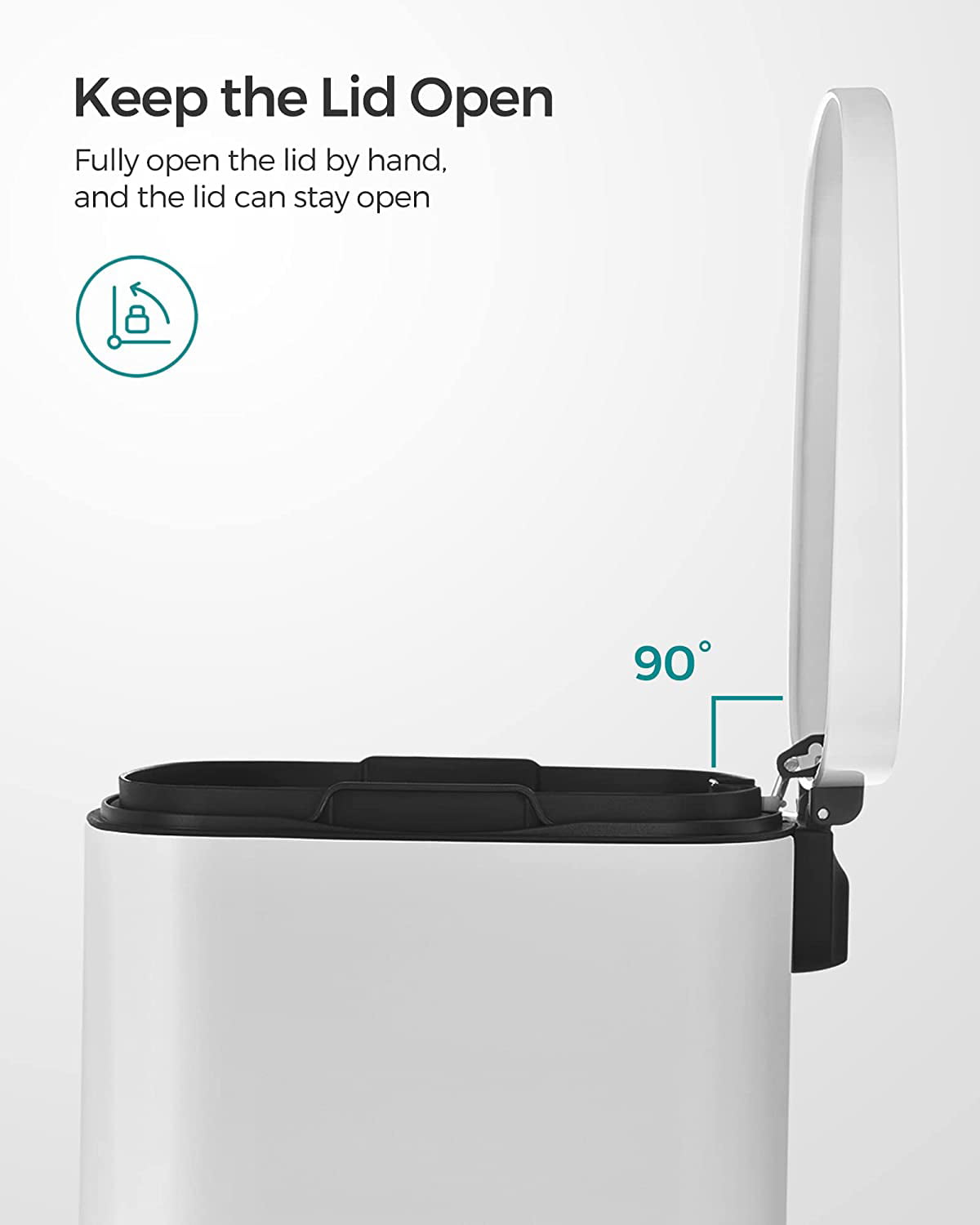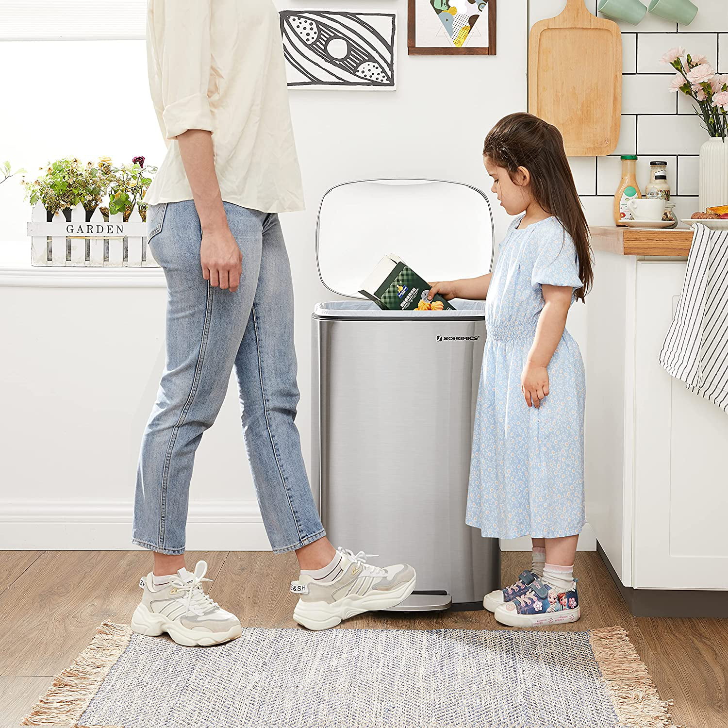 SONGMICS Kitchen Trash 13.2 Gallons (50L) Garbage Can Pedal Rubbish Bin with Plastic Inner Bucket Silver